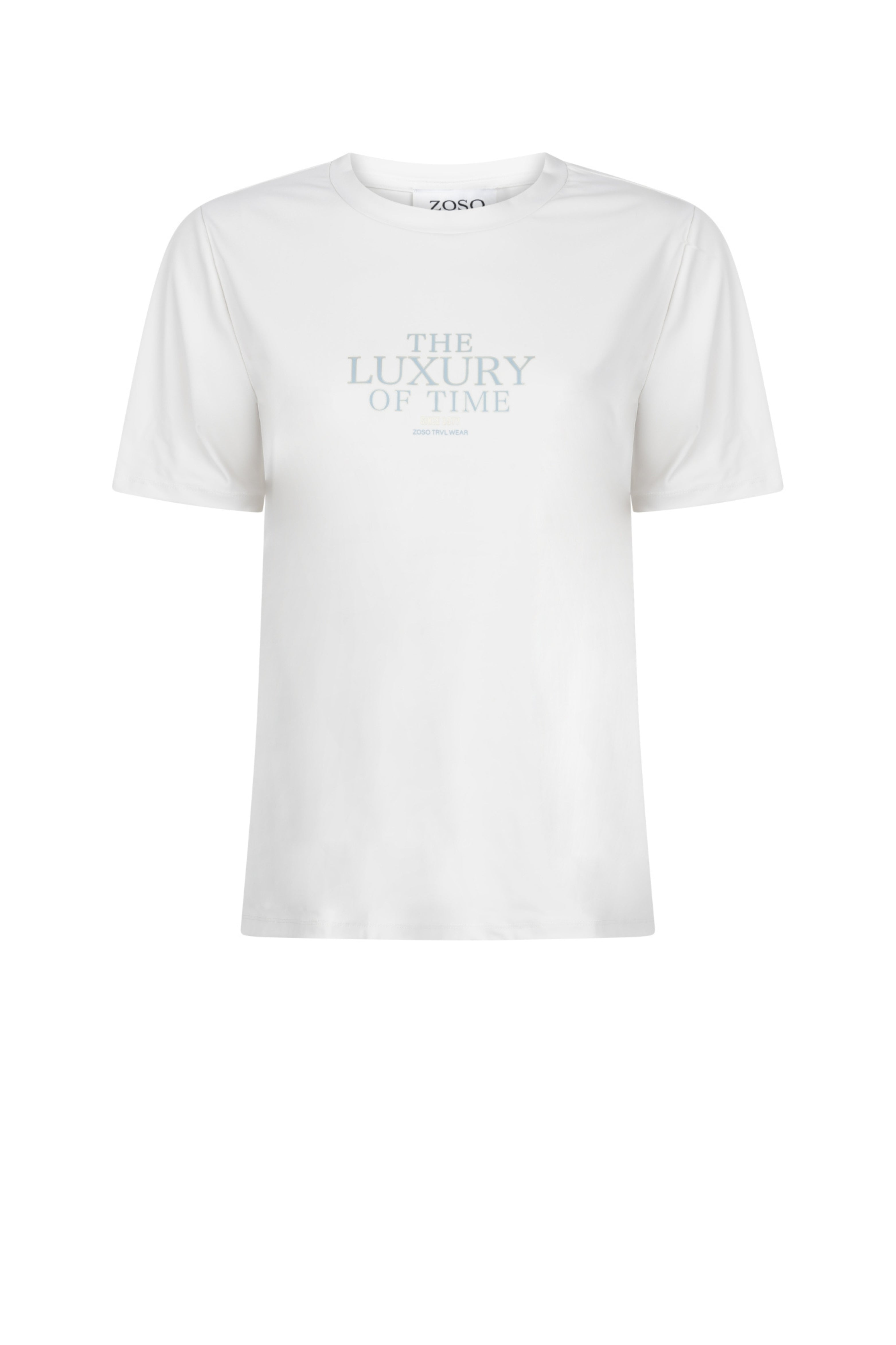 De Travel T-Shirt Isabel Kit Seagreen van Zoso is een soepele travelstof top met ronde hals en korte mouwen. Zachte stretch en subtiele tekstprint in Seagreen. Ideaal voor casual dagen.