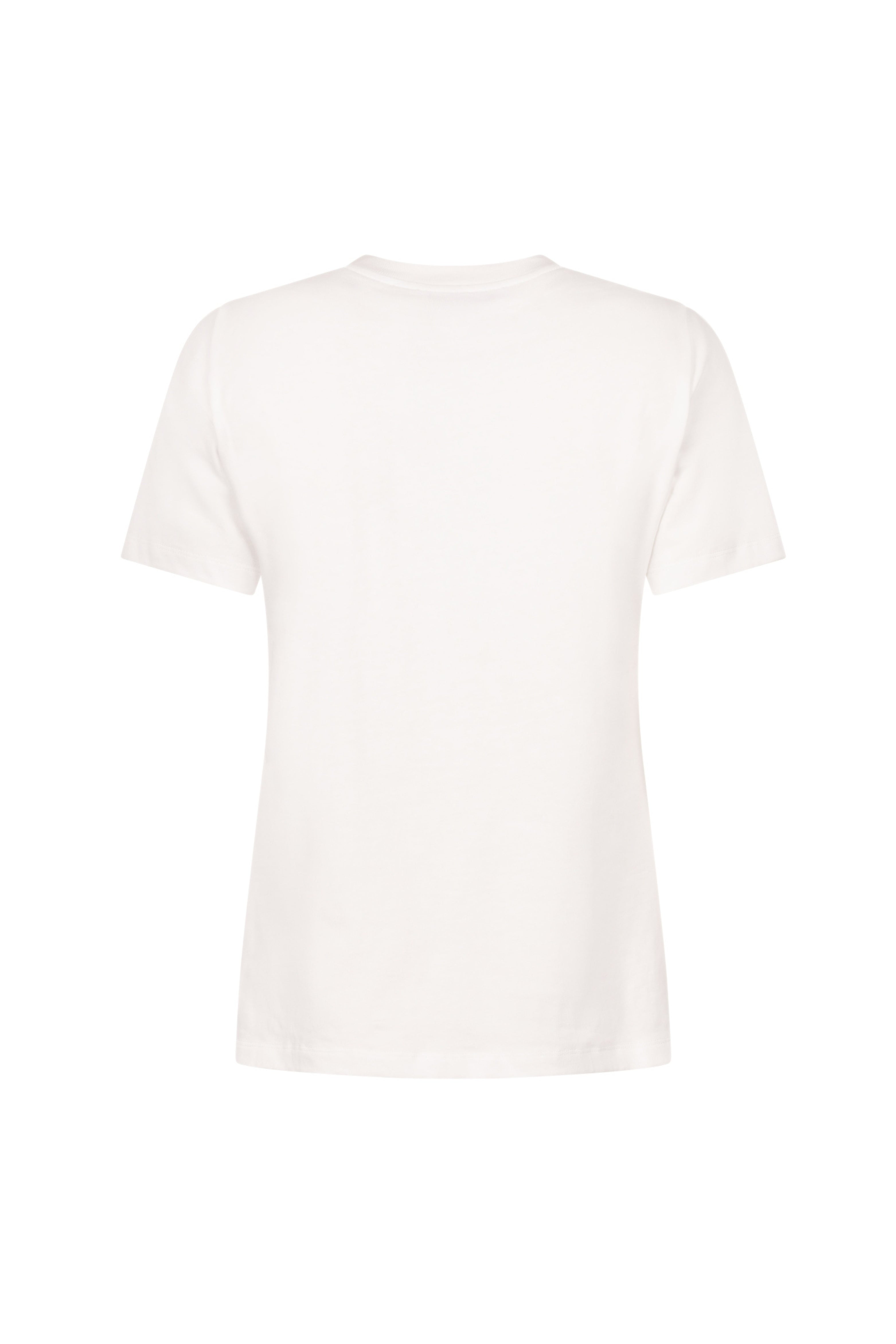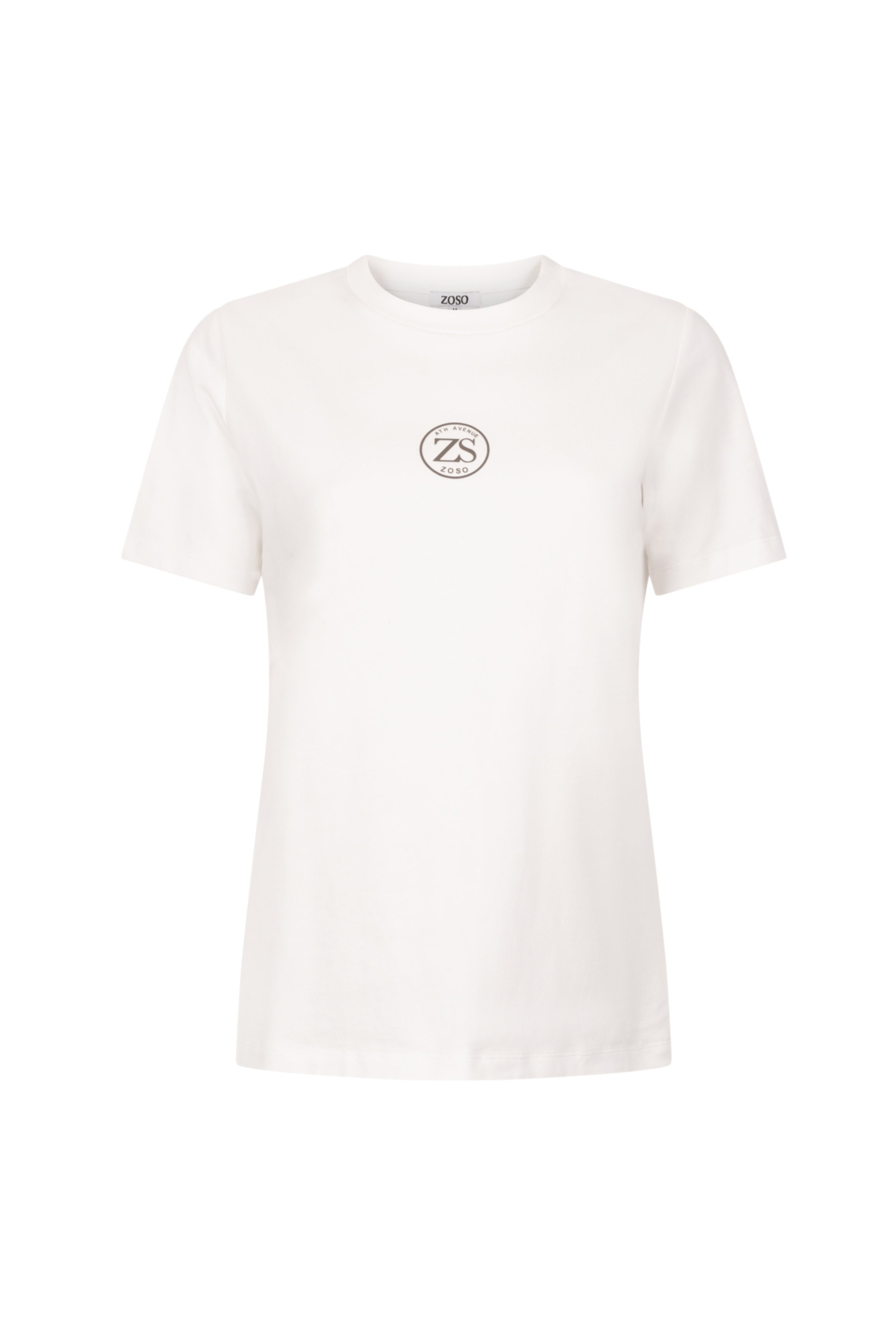 Stijlvol en tijdloos, het T-shirt Solange Offwhite van ZOSO is een veelzijdige basic met een subtiel logo-opdruk op de borst. Gemaakt van comfortabele travelstof, combineert dit shirt moeiteloos met zowel casual als geklede outfits.