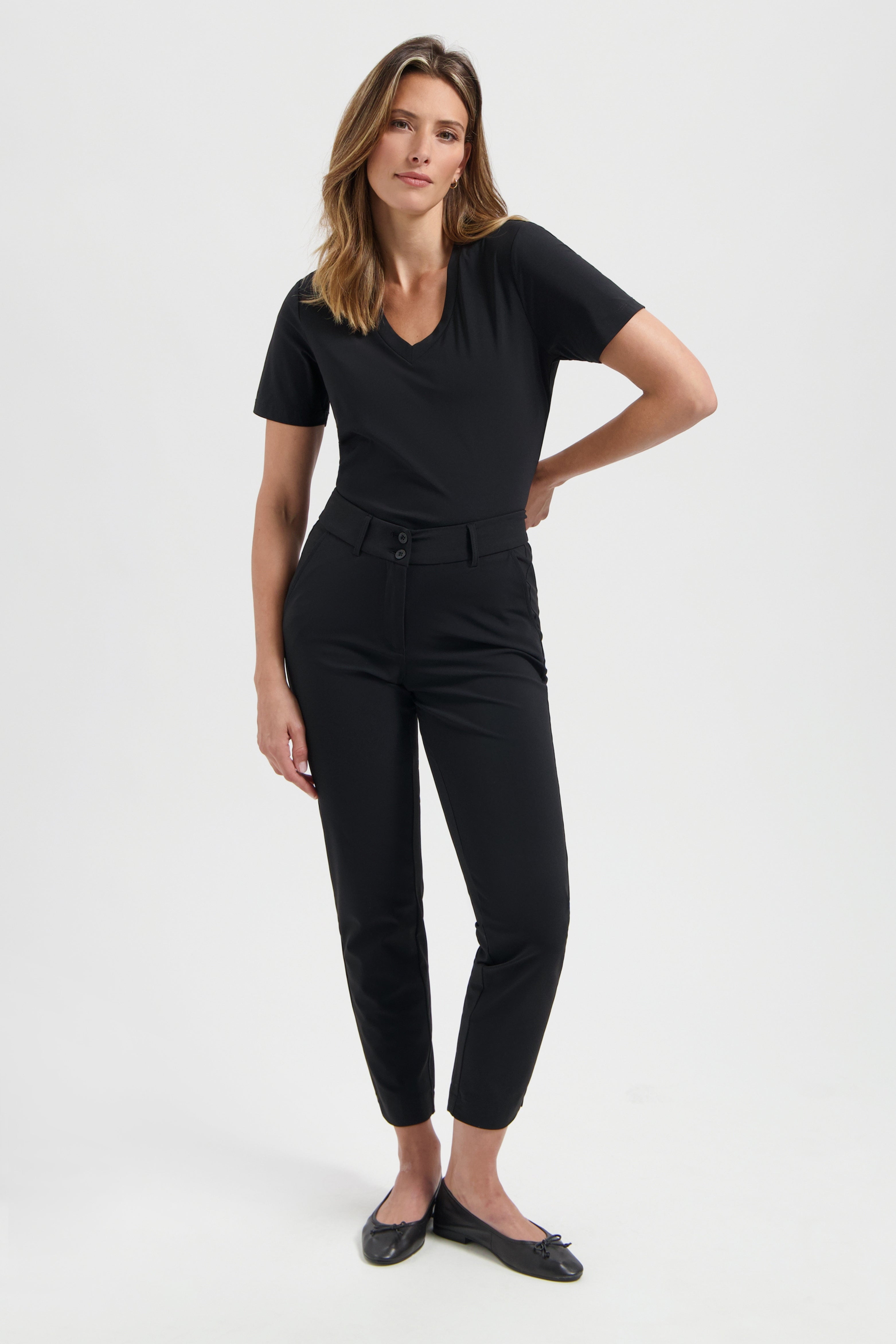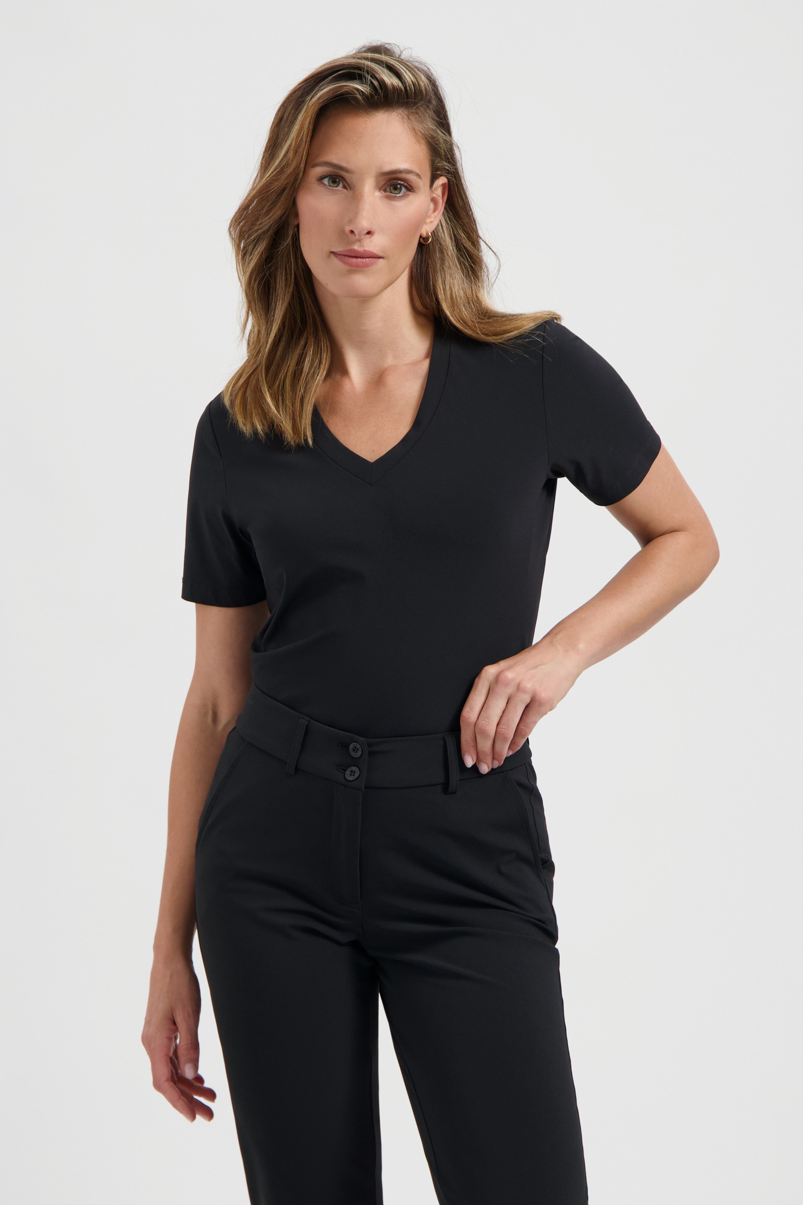 Het Travel T-shirt Tyler Black van Lady Day is een stijlvol T-shirt met V-hals. De soepele, stretchy travelstof draagt luchtig en blijft mooi in model. Perfect voor werk, citytrips of onderweg.