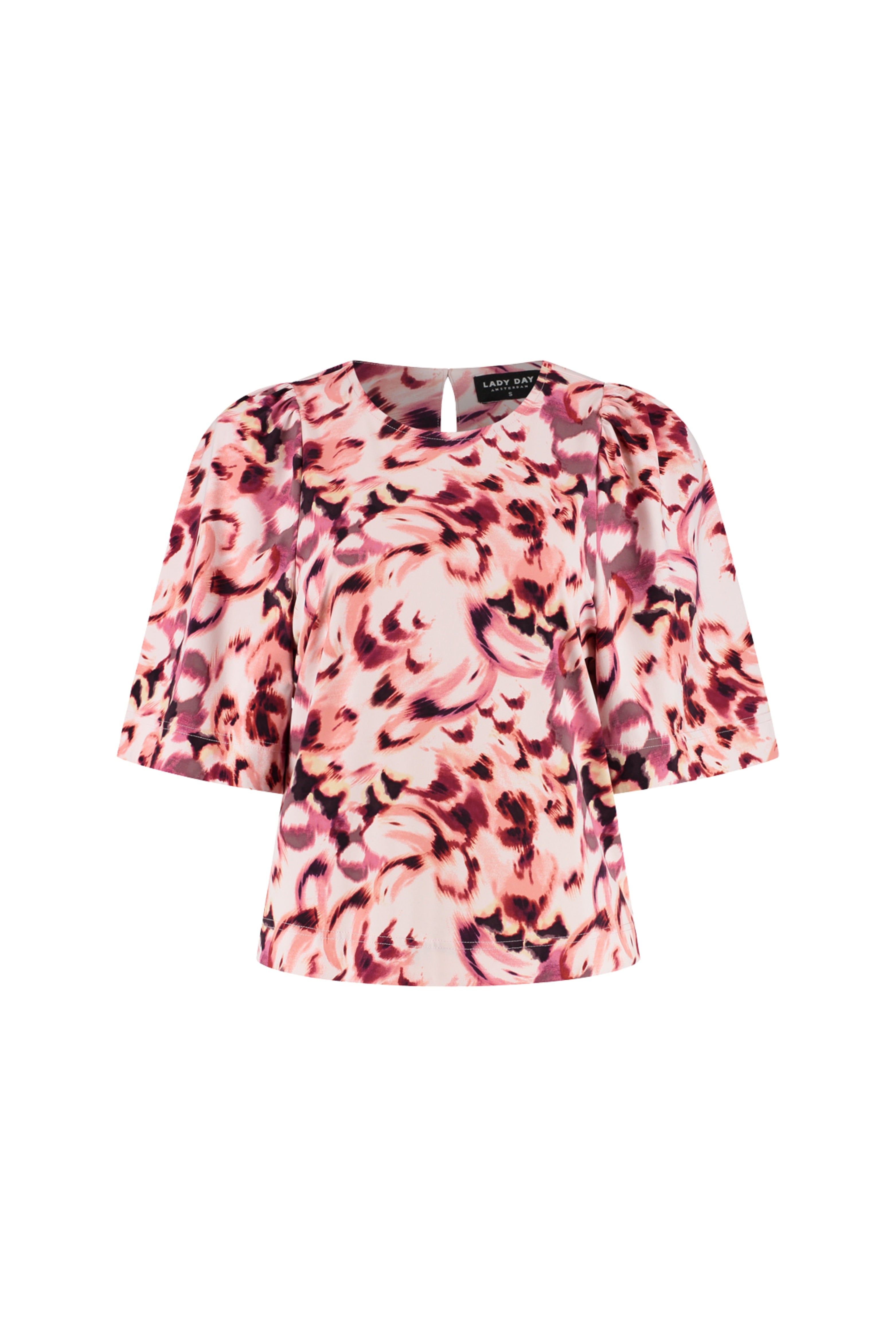 Travel Top Aston Morgan Print van Lady Day is een elegante top met ronde hals. Luchtige, soepelvallende stof en pofmouwen met fijne valling. Perfect voor een etentje of feestelijke gelegenheid.