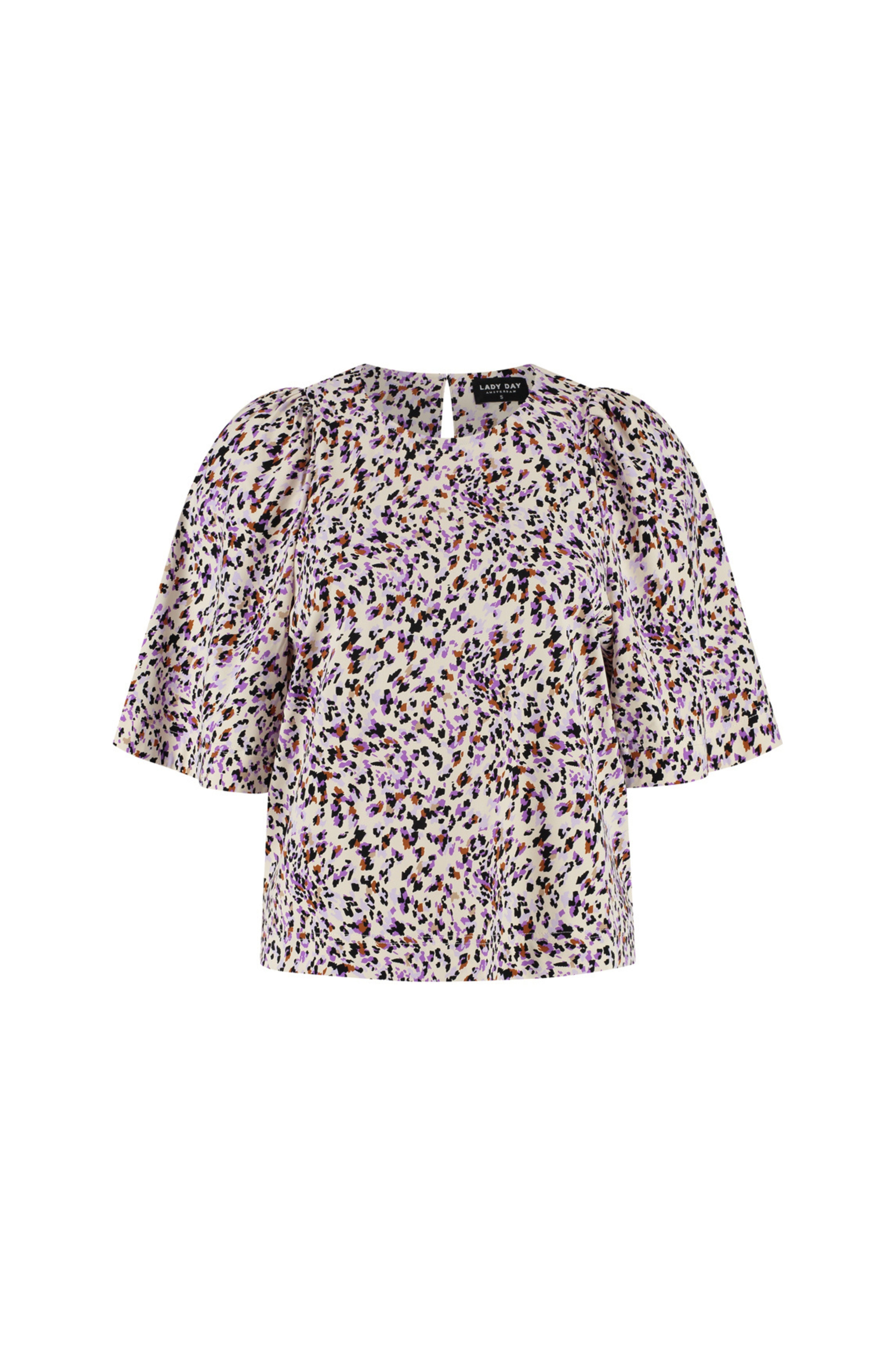 De Travel Top Aston van Lady Day is een trendy top met ronde hals. De spirit print geeft een opvallende look en de wijde korte mouwen zorgen voor luchtig comfort. Perfect voor werk of weekend.