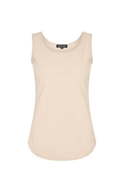 De Mi Piace Travel Top Beige is een veelzijdige basic met een vrouwelijke pasvorm en ronde hals. Gemaakt van gladde travelkwaliteit die ademend, comfortabel én kreukvrij is. Ideaal voor elke dag of als laagje onder een blazer.