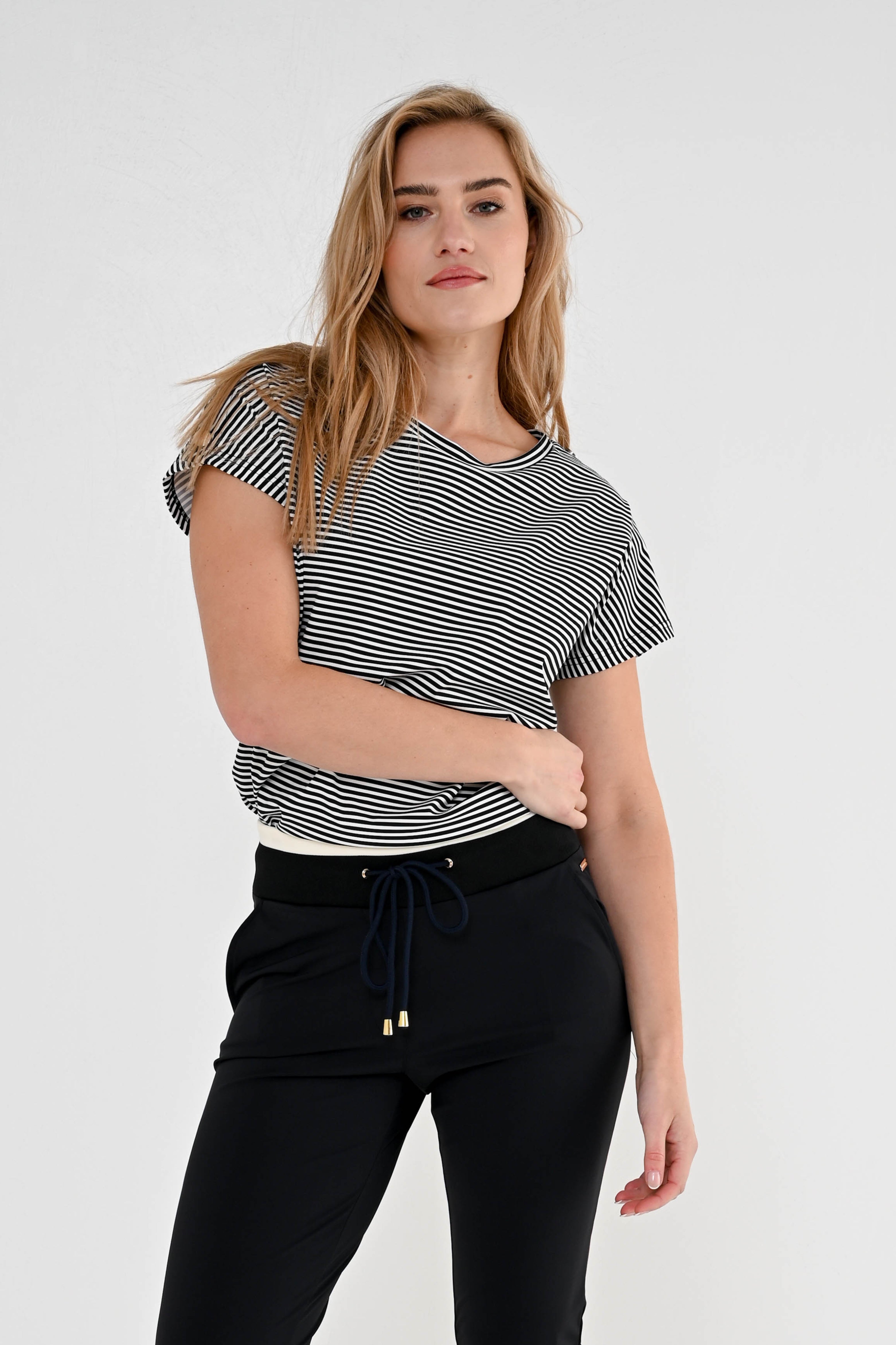 Travel Top Cerise Black Stripe van Maicazz is een comfortabele top met een tijdloos streeppatroon. De soepele travelstof is stretchy en kreukvrij, ideaal voor elke dag. De korte mouwen en ronde hals zorgen voor een casual, vrouwelijke look.