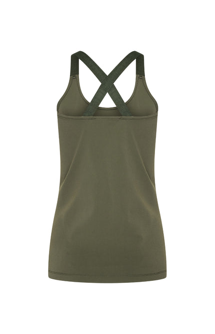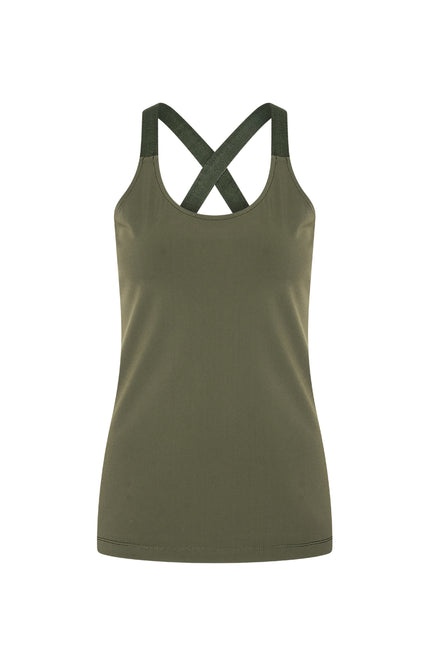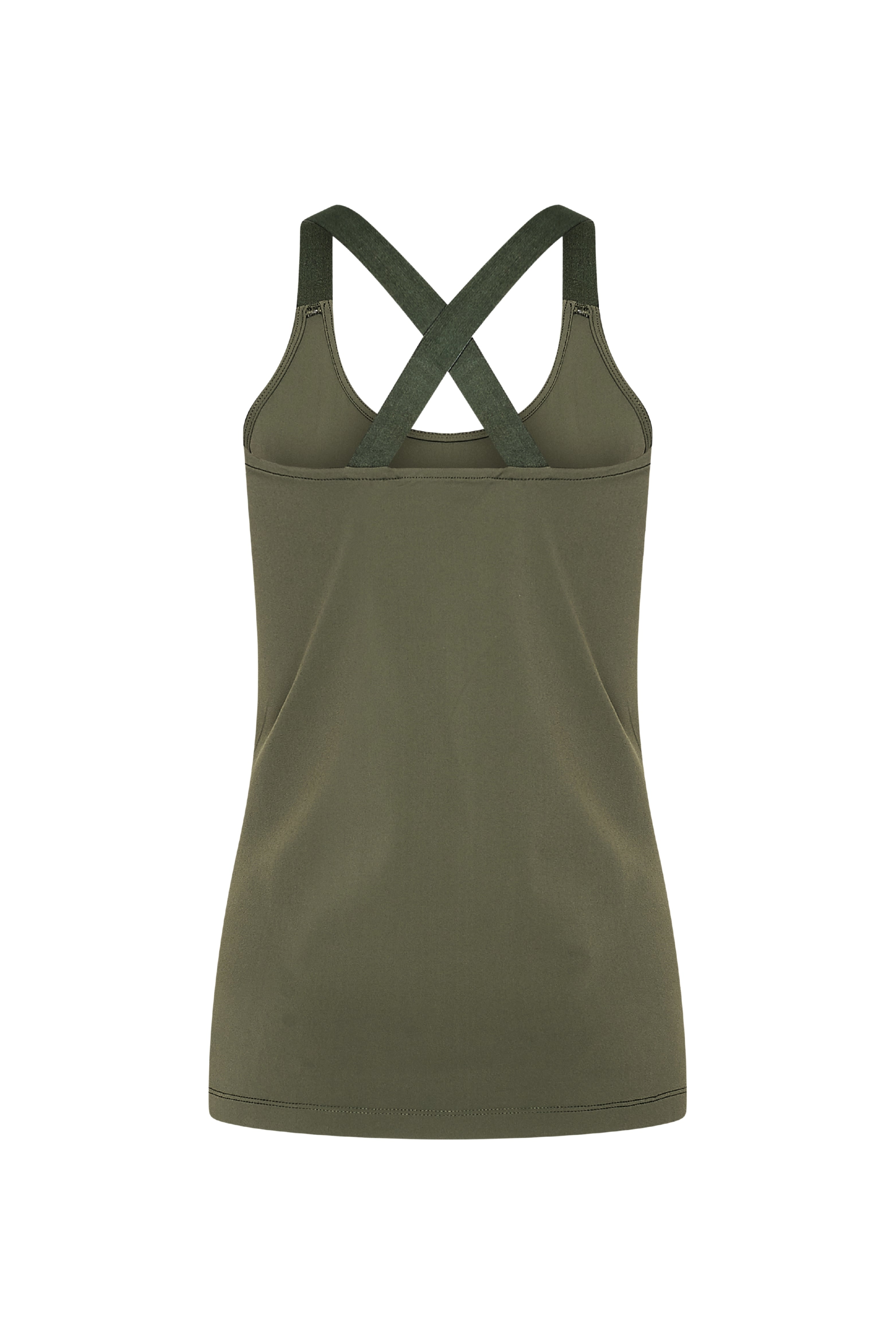 De Travel Top Cross Band Deep Depth van Mi Piace heeft gekruiste bandjes op de rug en een aangesloten pasvorm. Gemaakt van comfortabele travelstof voor een sportieve en vrouwelijke look.