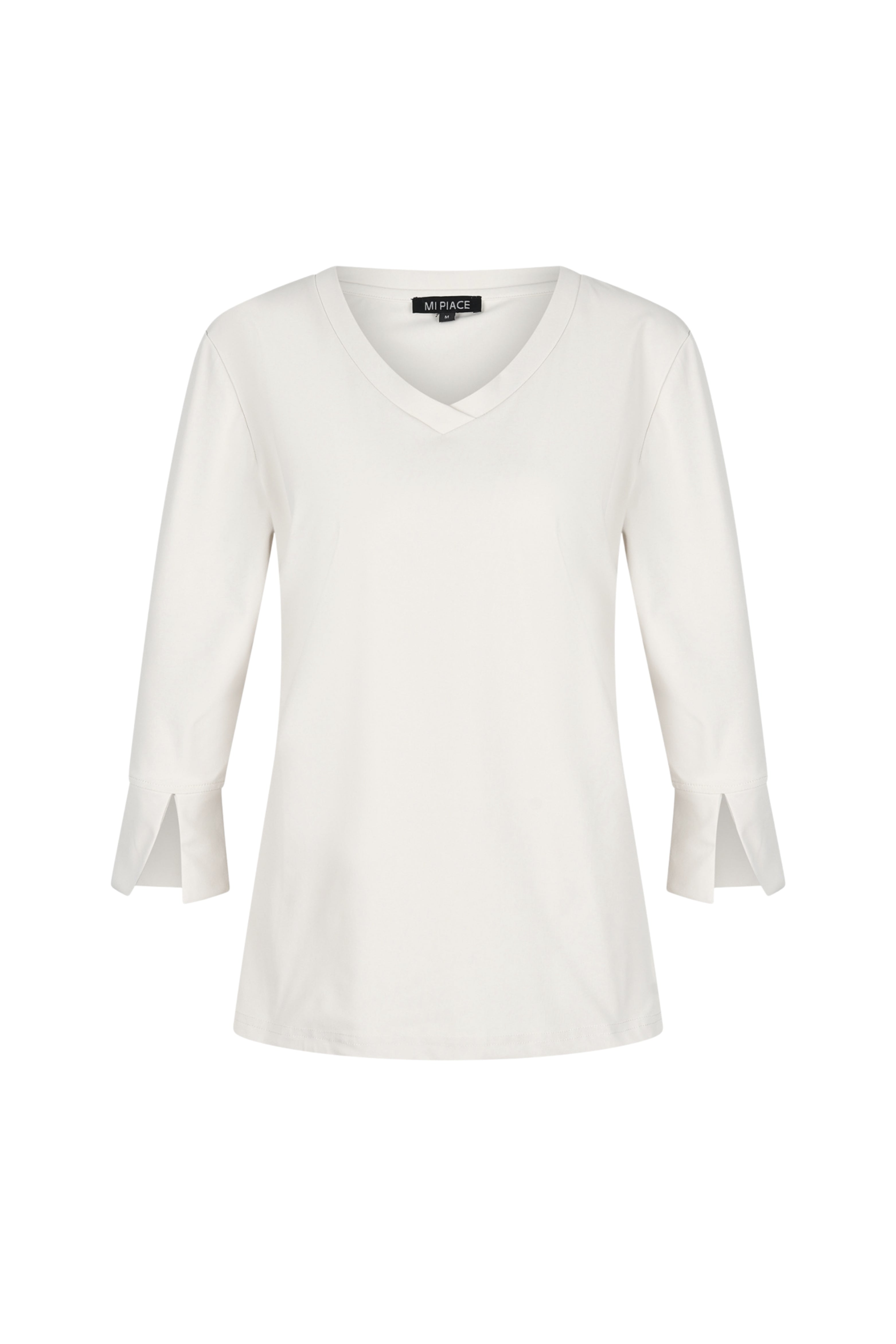 De Travel Top Kit van Mi Piace heeft een zachte, neutrale tint en een elegante uitstraling. De comfortabele travelstof beweegt soepel met je mee, terwijl de 3/4 mouw met split een vrouwelijke touch toevoegt.