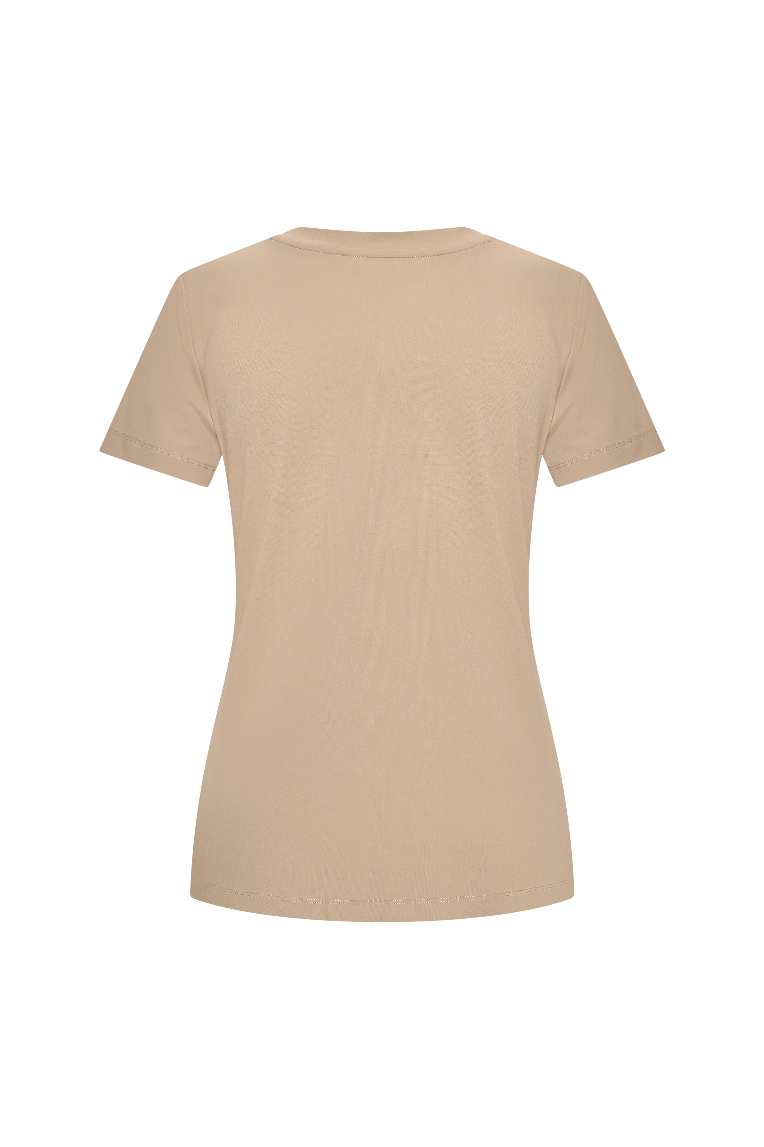 De Mi Piace Travel Top in de kleur Latte is gemaakt van soepele travelstof en afgewerkt met een V-hals. Dankzij het stretchmateriaal zit de top heerlijk comfortabel, terwijl de neutrale tint zorgt voor een tijdloze, stijlvolle uitstraling.