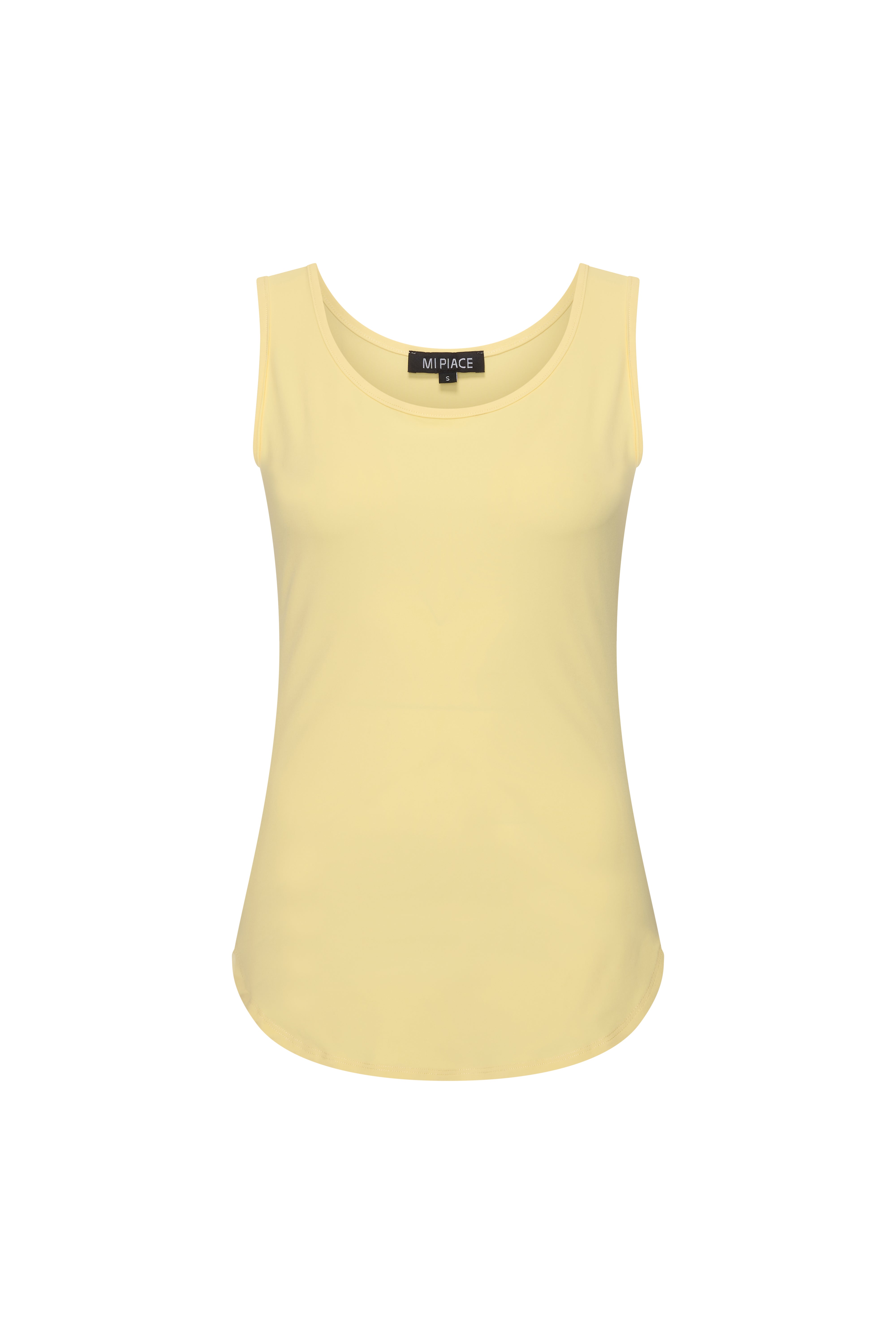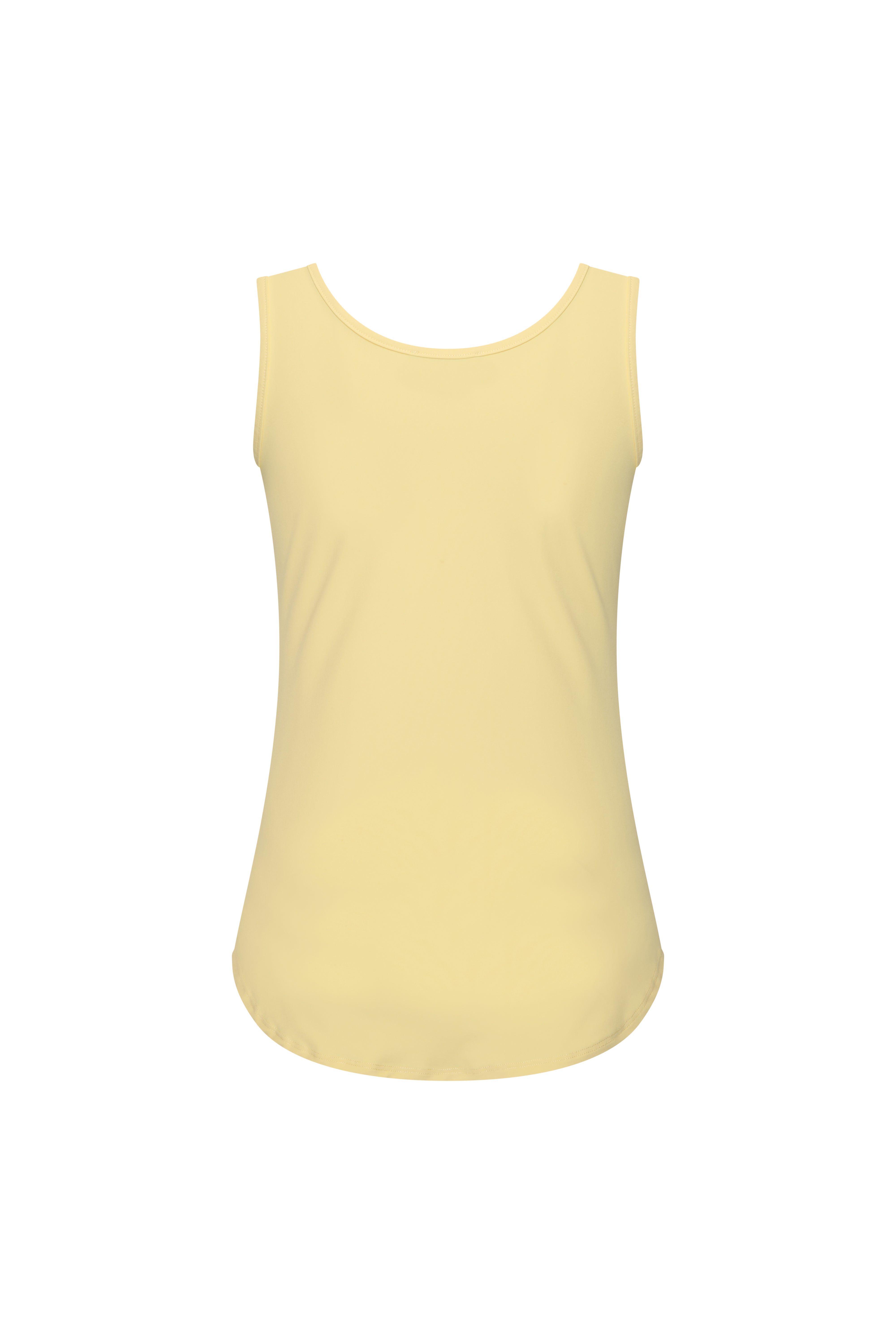 De Travel Top Lemon Yellow van Mi Piace is een frisse, comfortabele basic met een vrouwelijke uitstraling. Het mouwloze design en de soepele travelstof maken deze top perfect om los te dragen of als stijlvolle basis onder een blazer.