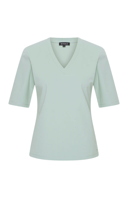 De Travel Top Lilypad van Mi Piace is jouw go-to basic met een stijlvolle V-hals en elegante halve mouwen. Gemaakt van comfortabele travelstof, ideaal voor dagelijks gebruik of om eindeloos te combineren met jouw favoriete outfits.