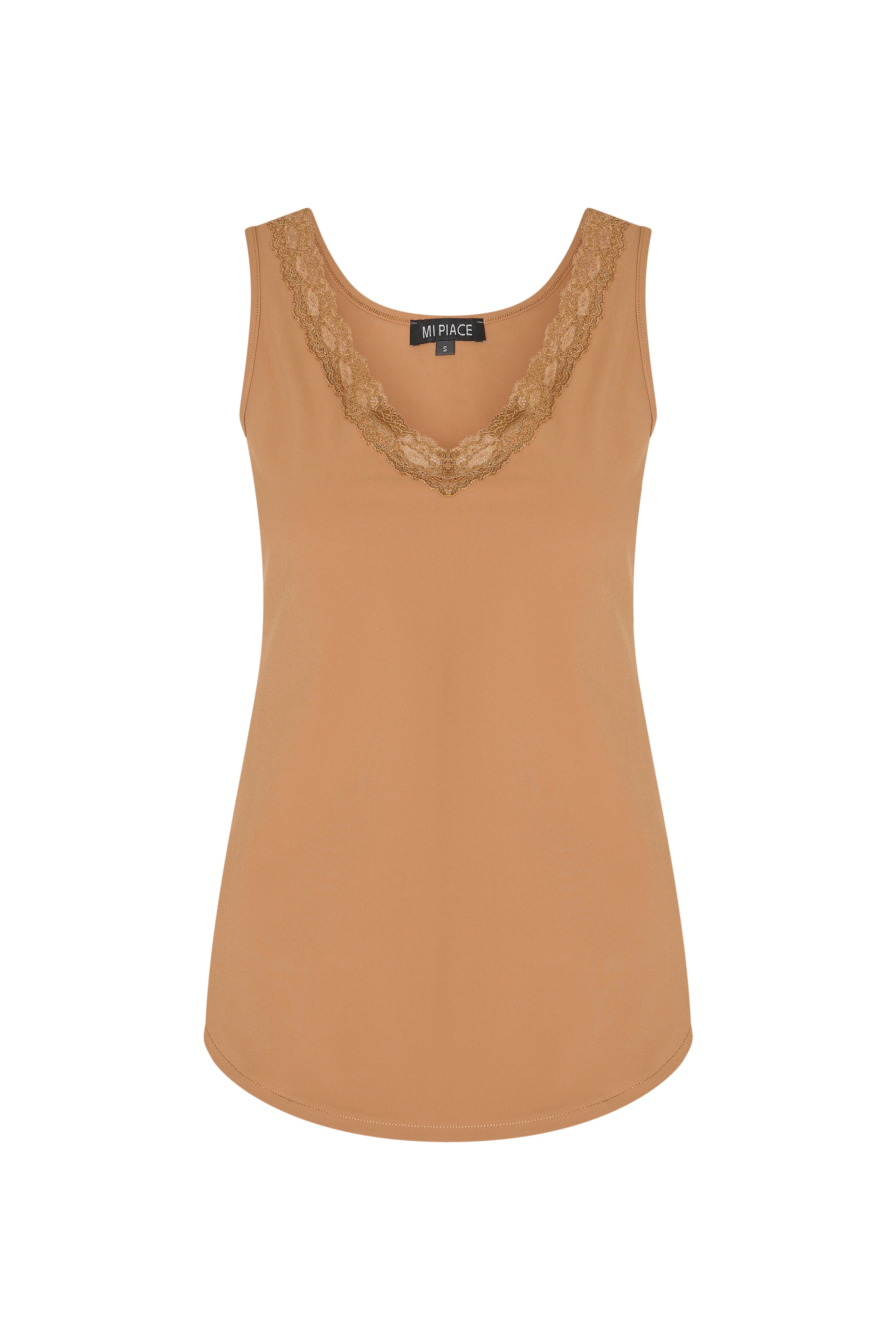 De Travel Top Mocca 202129 van Mi Piace combineert tijdloze elegantie met optimaal draagcomfort. Deze stijlvolle top is voorzien van een delicate kanten V-hals, die een verfijnde en vrouwelijke uitstraling toevoegt aan elke outfit.