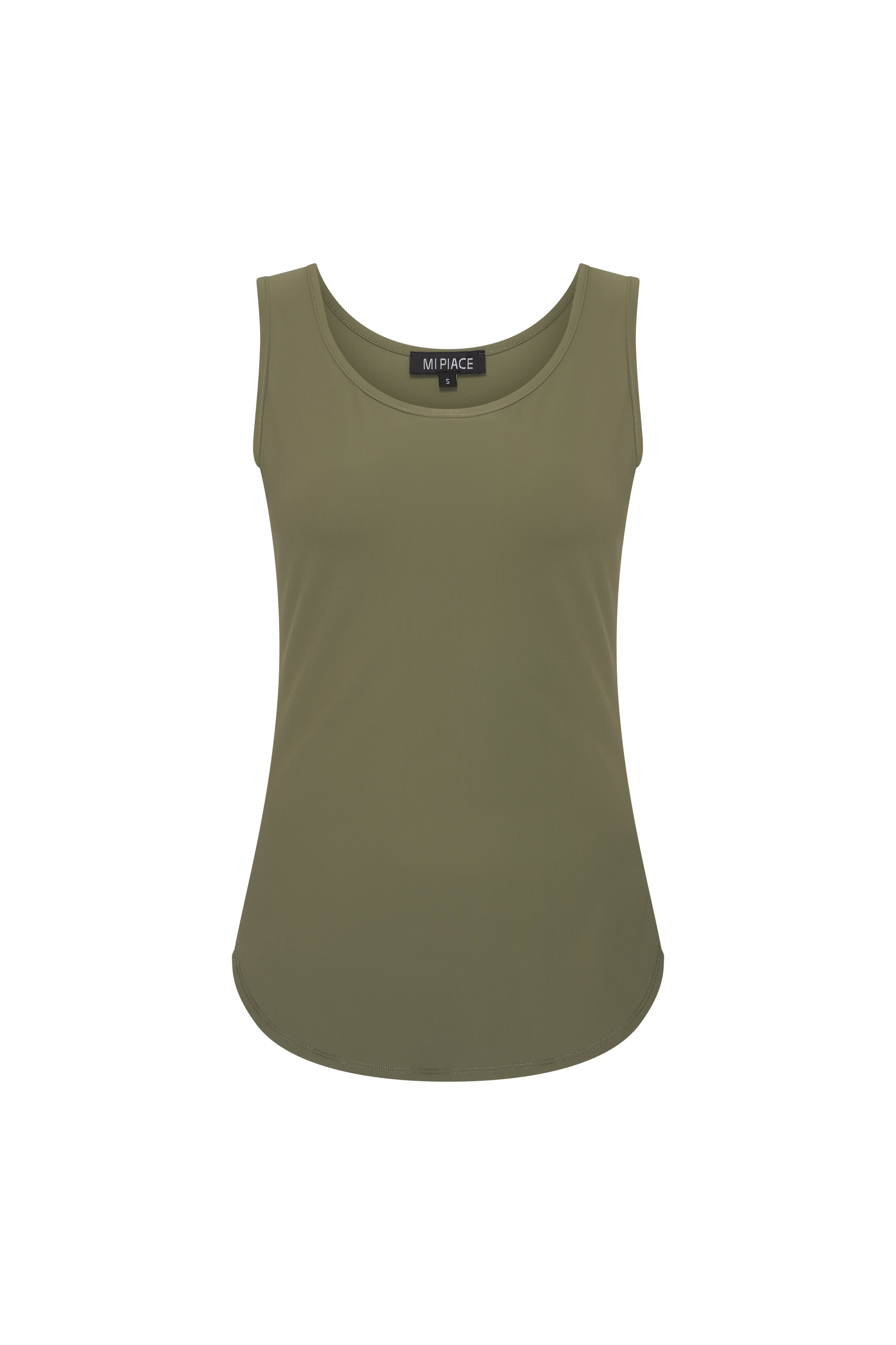 De Travel Top Olive van Mi Piace is een frisse, comfortabele basic met een vrouwelijke uitstraling. Het mouwloze design en de soepele travelstof maken deze top perfect om los te dragen of als stijlvolle basis onder een blazer.