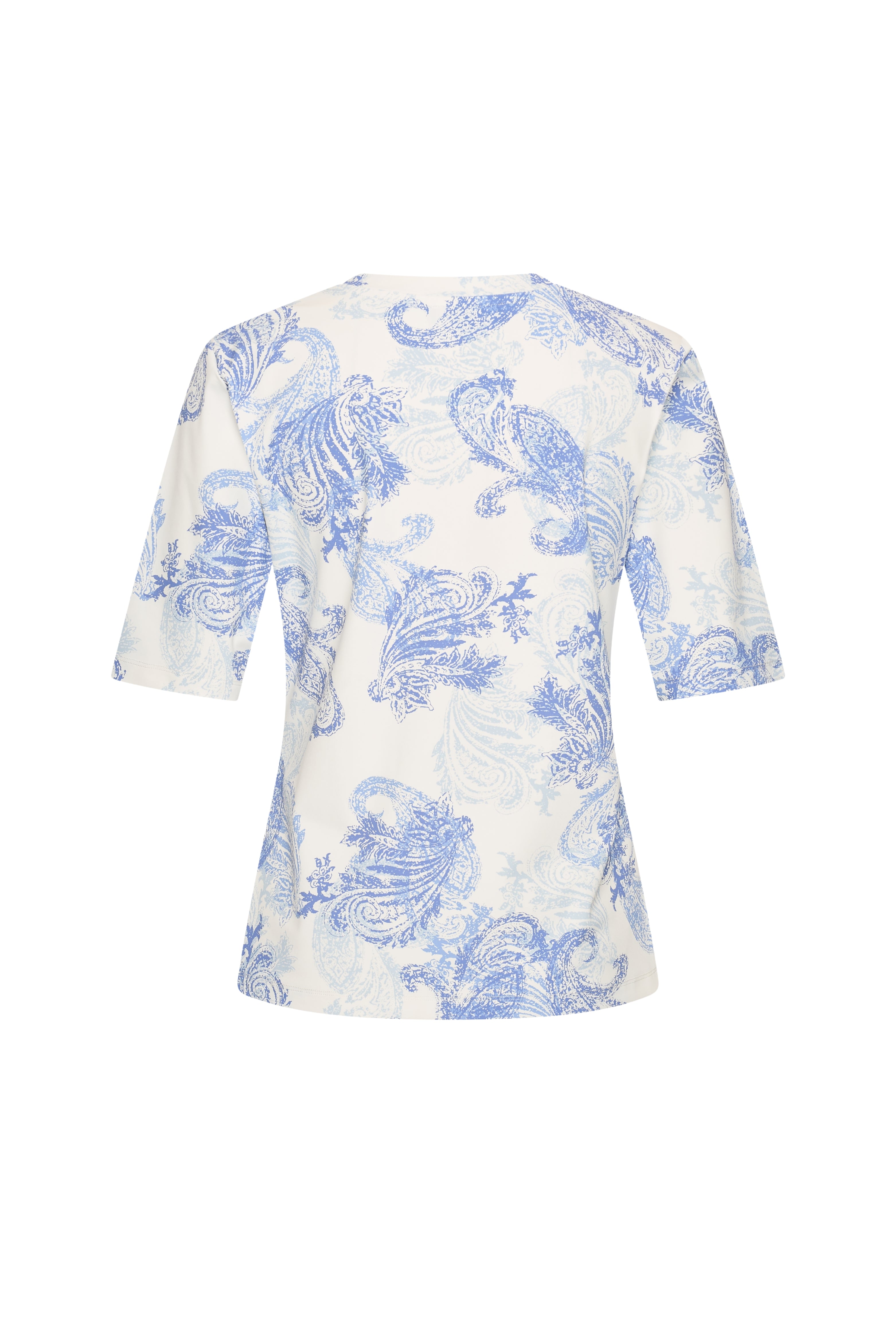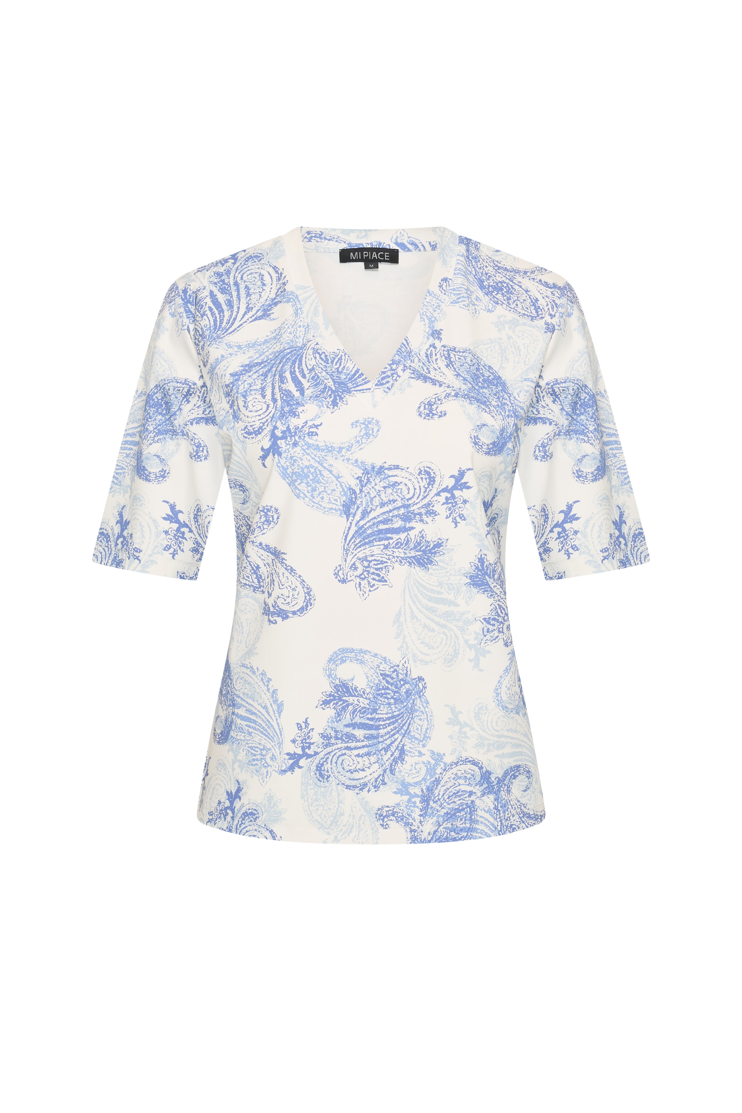 De Travel Top Paisley Print Lavender Blue van Mi Piace combineert comfort met een verfijnde uitstraling. De zachte paisley print in frisse blauwtinten geeft deze top een elegante look. De V-hals en korte mouwen zorgen voor een luchtige pasvorm. Een veelzijdige top die je moeiteloos styled voor zowel een casual als geklede look.
