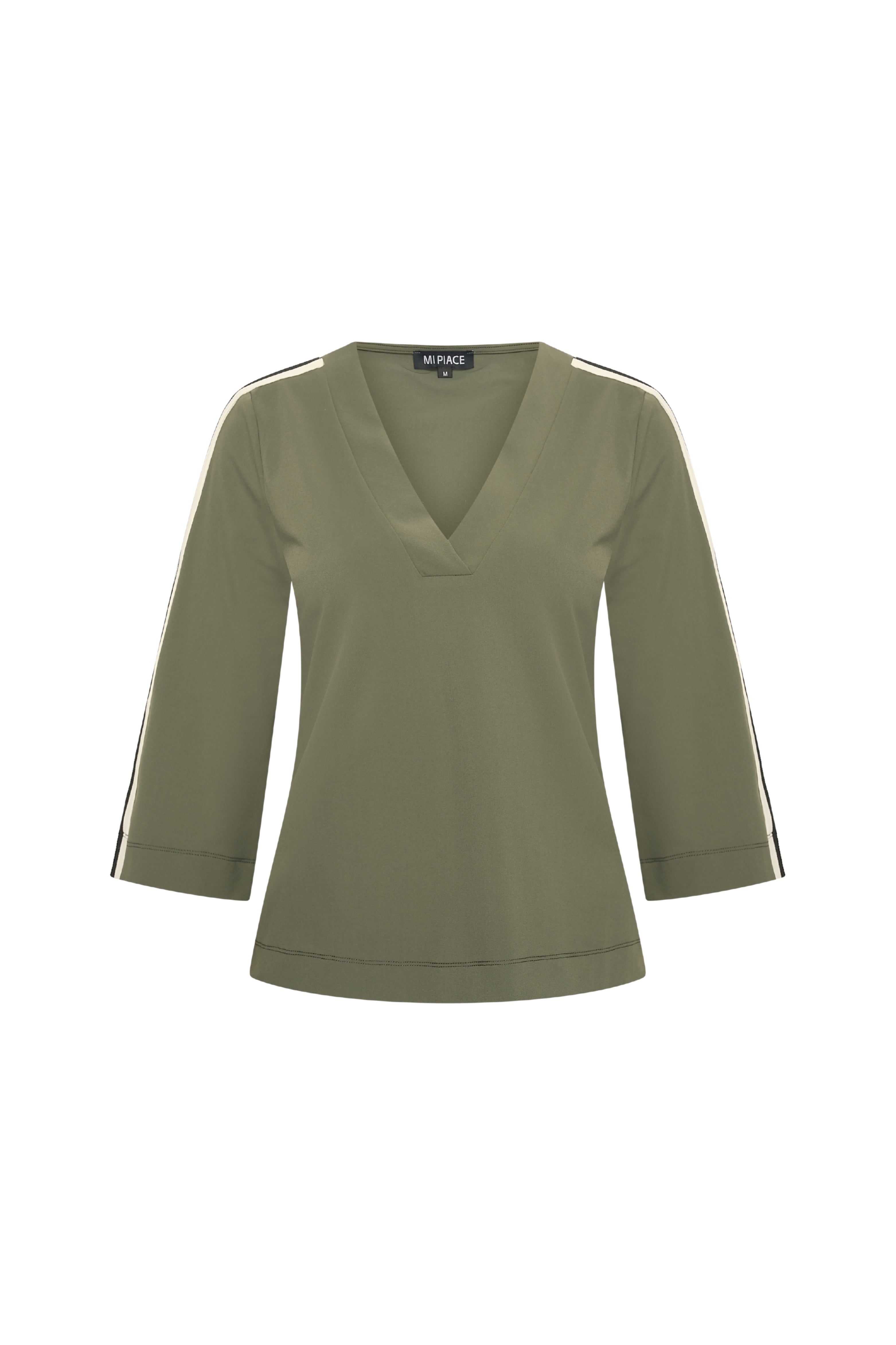 De travel top Tape in de kleur Deep Depth van Mi Piace biedt een perfecte mix van comfort en stijl. De soepele stretch-travelstof voelt licht en prettig aan, terwijl de verfijnde details zorgen voor een moderne en verzorgde uitstraling.