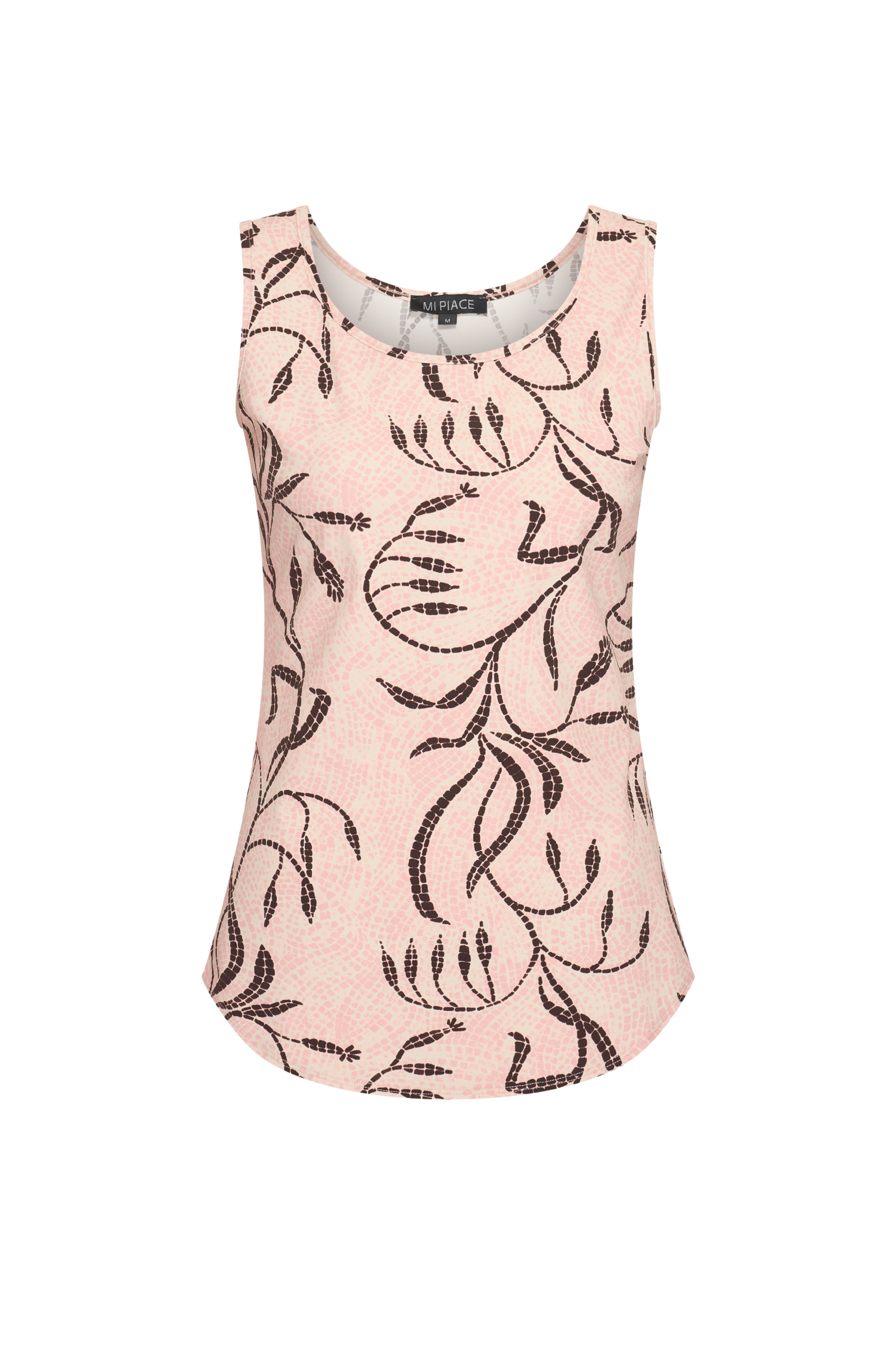Travel Top Twilight Twigs Print Mellow Rose van Mi Piace is een vrouwelijke eyecatcher met een speelse grafische print. De mouwloze snit en comfortabele travelstof zorgen voor een luchtige en stijlvolle top die je moeiteloos combineert.
