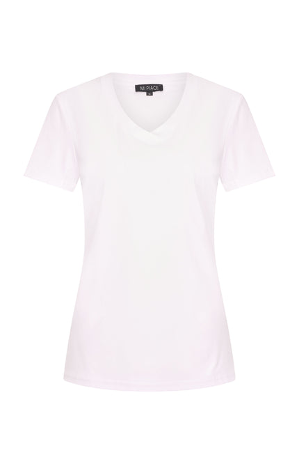 De Travel Top White van Mi Piace is een stijlvolle basic van hoge kwaliteit. De gladde travelstof voelt zacht aan en is kreukvrij, waardoor je er altijd verzorgd uitziet. Perfect voor elke gelegenheid.