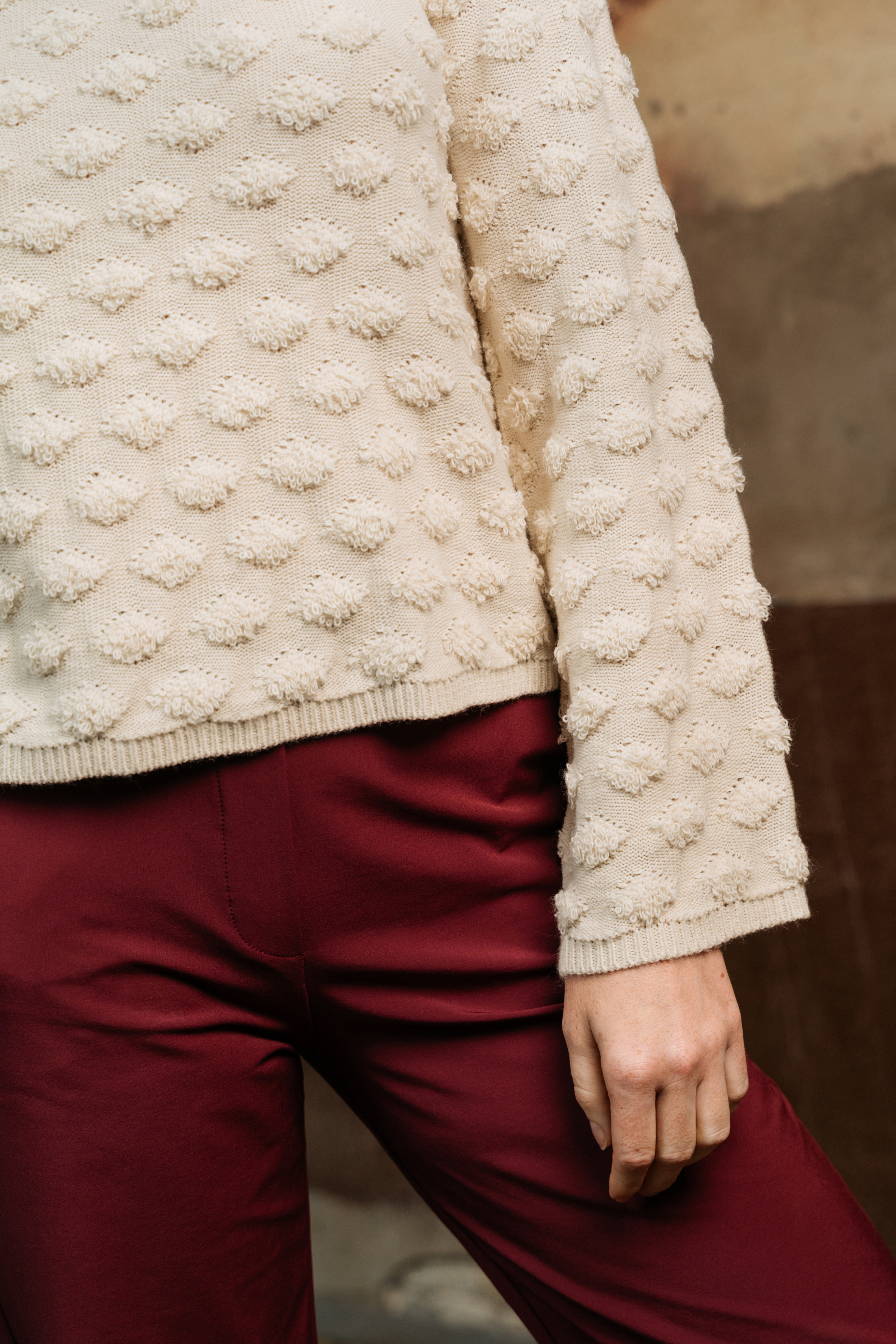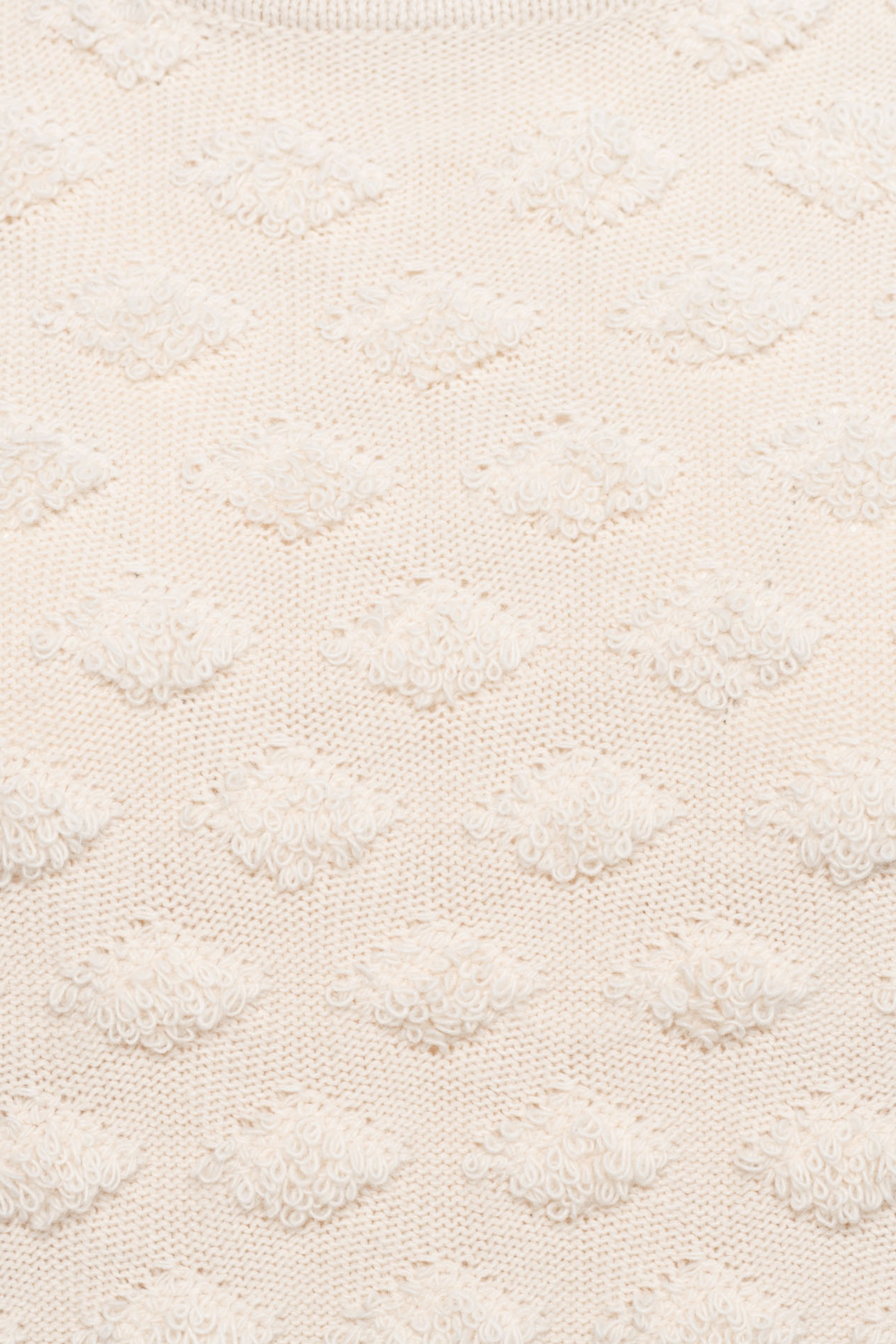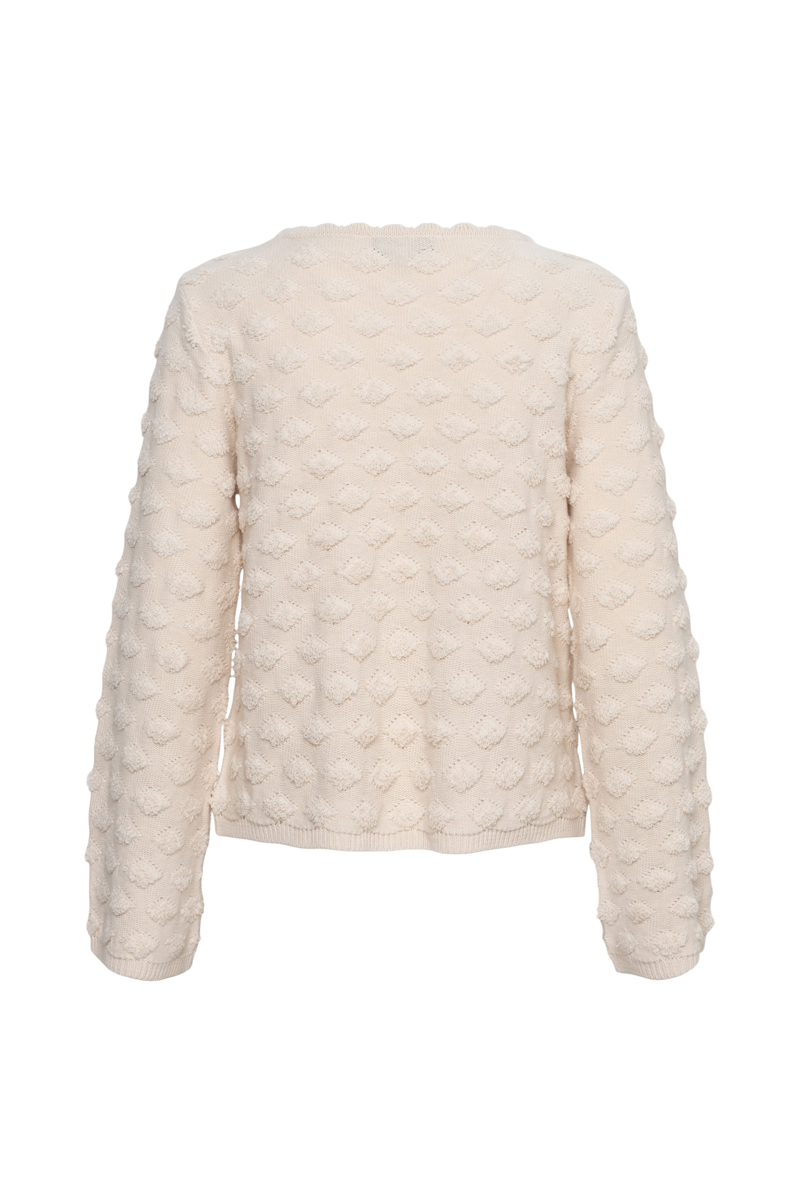 Trui Beliney Beige van &Co Woman is een zachte knit met speelse jacquard dots en een ronde hals. De lichte beige tint geeft een frisse en elegante uitstraling. Dankzij de comfortabele pasvorm draag je hem moeiteloos casual met jeans of combineer je hem chic met een rok.