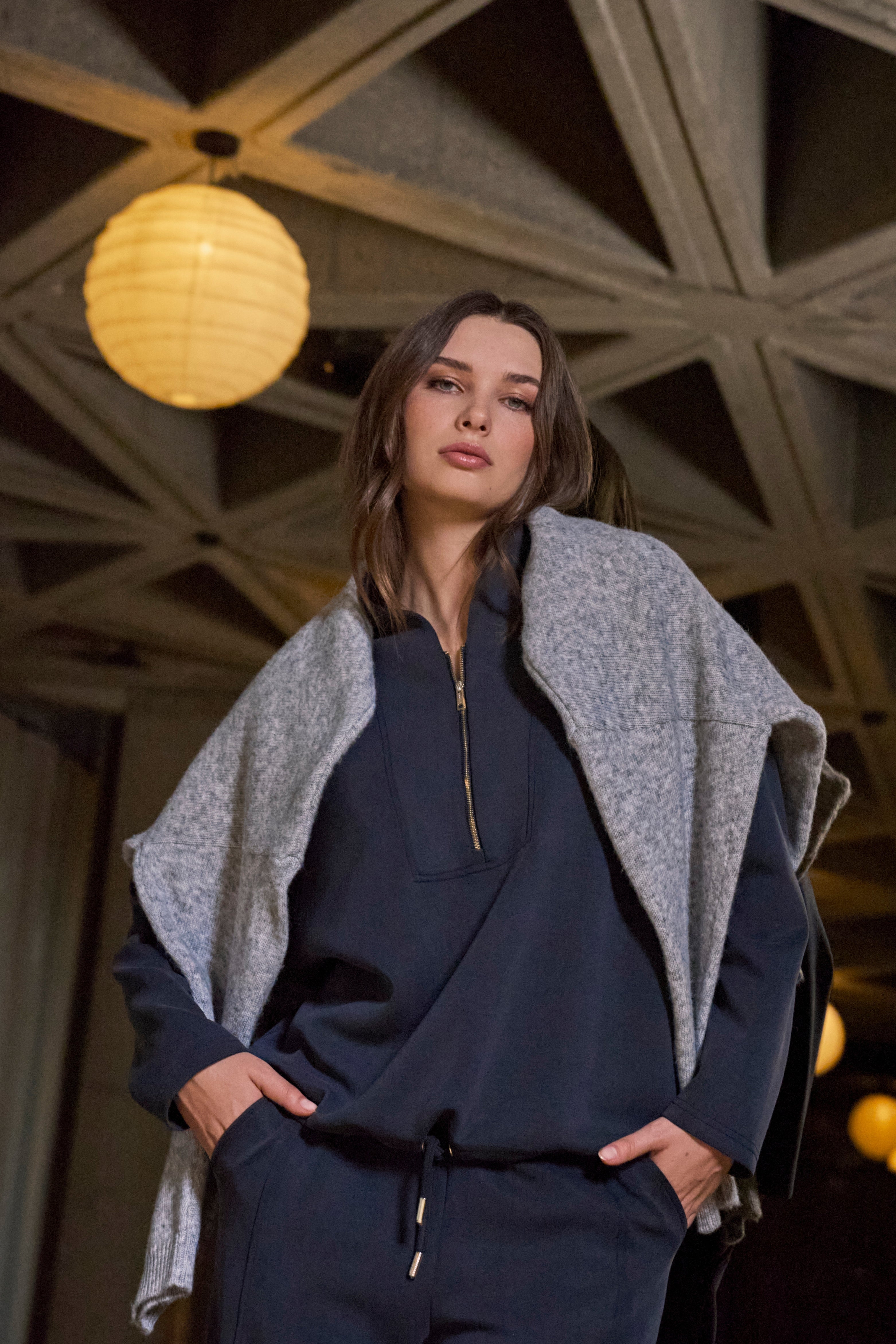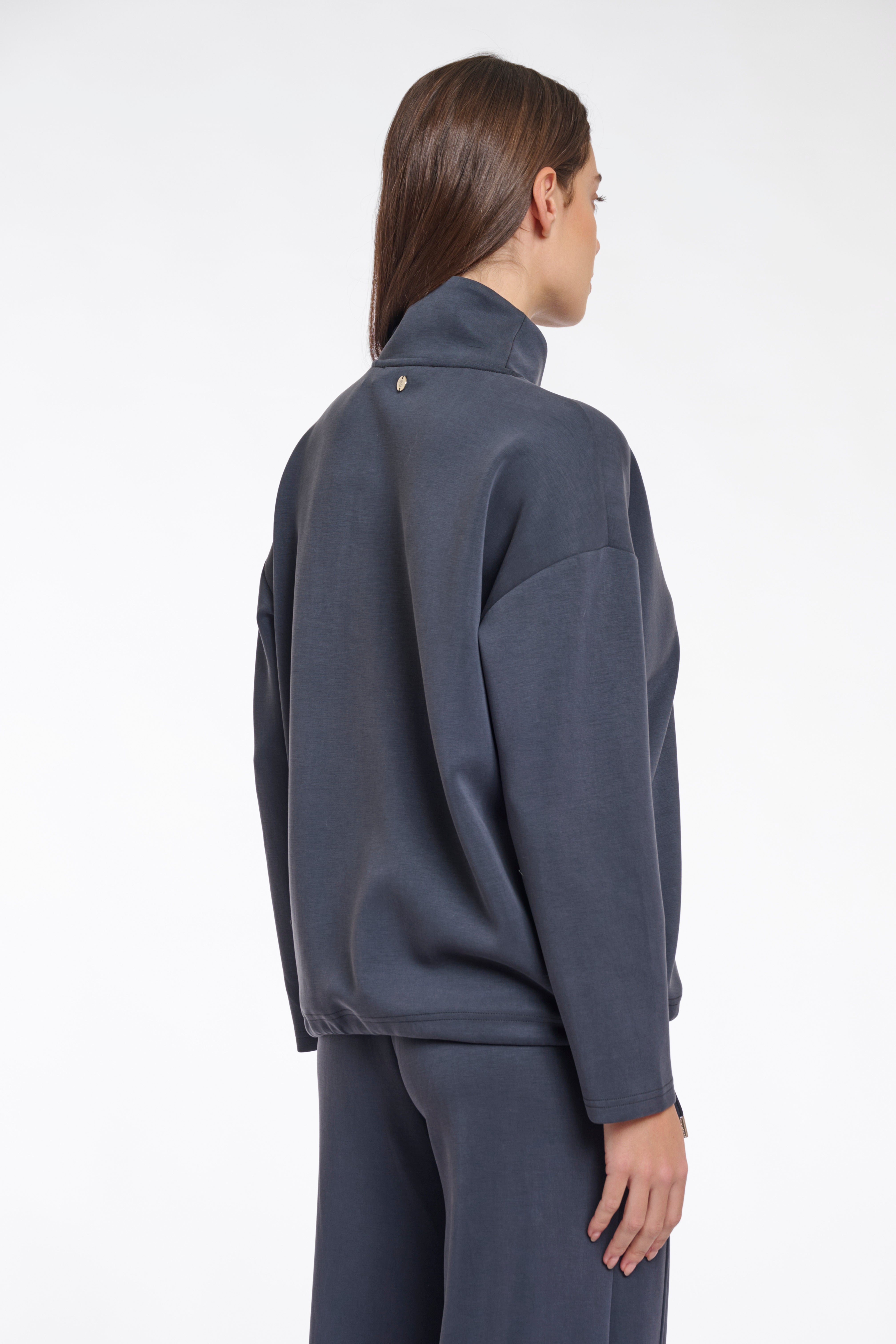 De Trui Dounia Night Grey van Rino & Pelle is een comfortabele en stijlvolle sweater met een moderne twist. De halve rits en verstelbare zoom maken dit item perfect voor een relaxte, maar verzorgde look.
