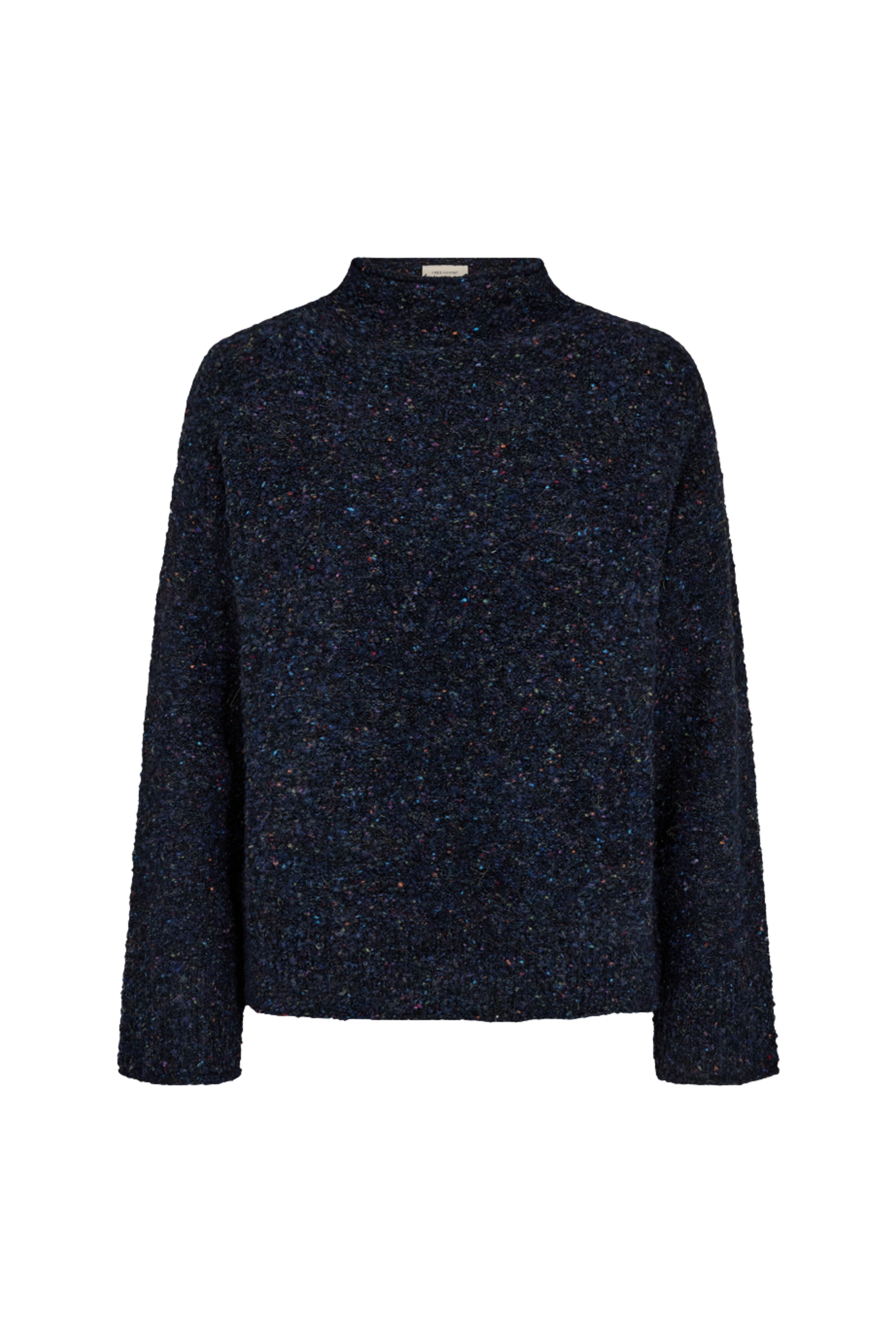 De Fqgrsnemes trui van Freequent in Salute Melange is een zachte wolmix trui met gemêleerde structuur en subtiele kleurnuances. Voorzien van ribboorden en opstaande hals, ideaal voor een comfortabele en stijlvolle herfstlook.