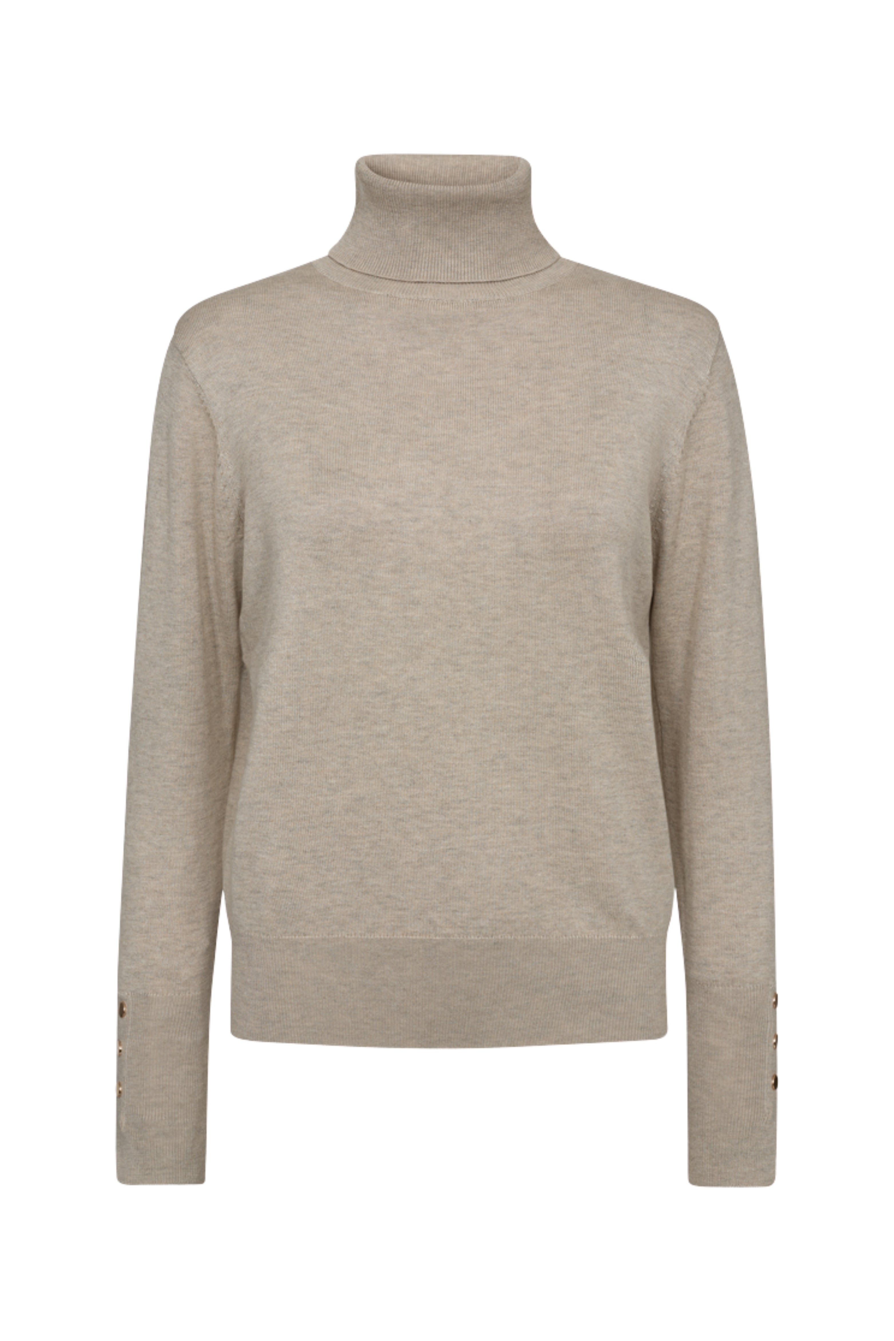 De Trui Fqkatie Moonbeam Melange van Freequent is een stijlvolle coltrui met een tijdloze uitstraling. De zachte stof en fijne pasvorm zorgen voor optimaal draagcomfort, terwijl de knoopdetails op de mouwen een subtiele, chique touch toevoegen.