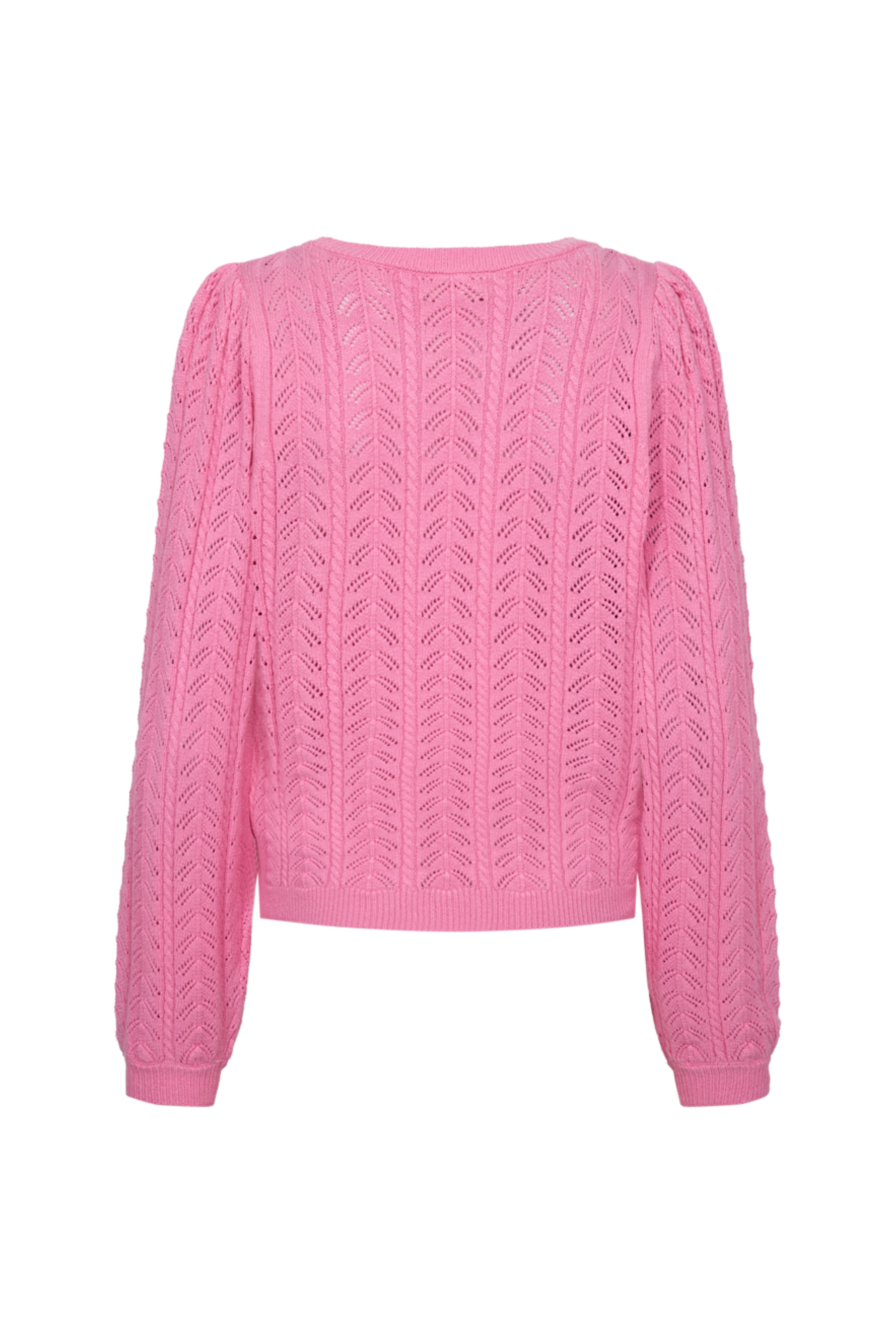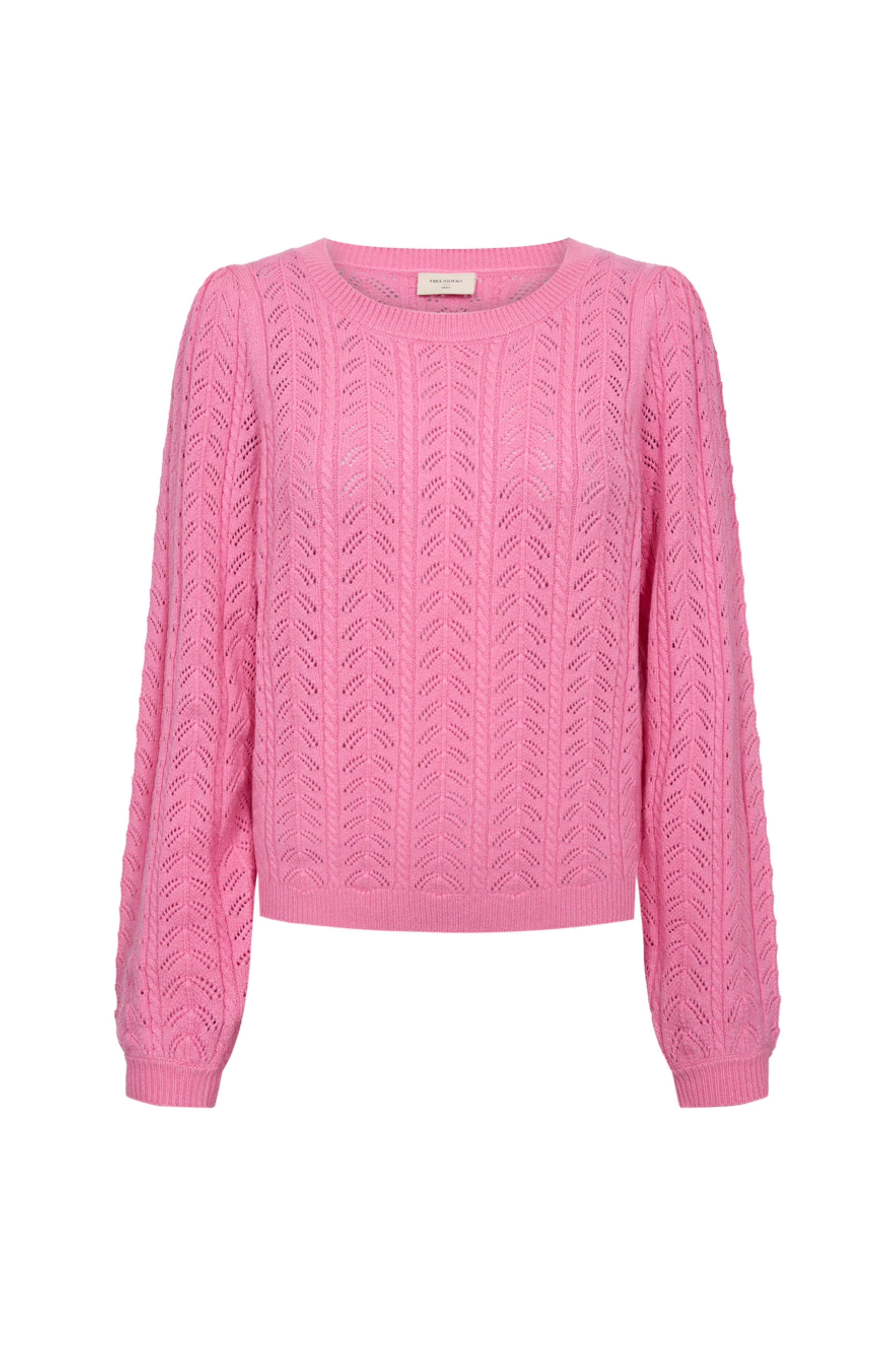 De Trui Fqlarry Wild Orchid van Freequent is een vrouwelijke trui met ronde hals. Ajourbreisel en poffende mouwen zorgen voor een romantische, luchtige uitstraling. Ideaal voor werk, etentje of dagje uit.