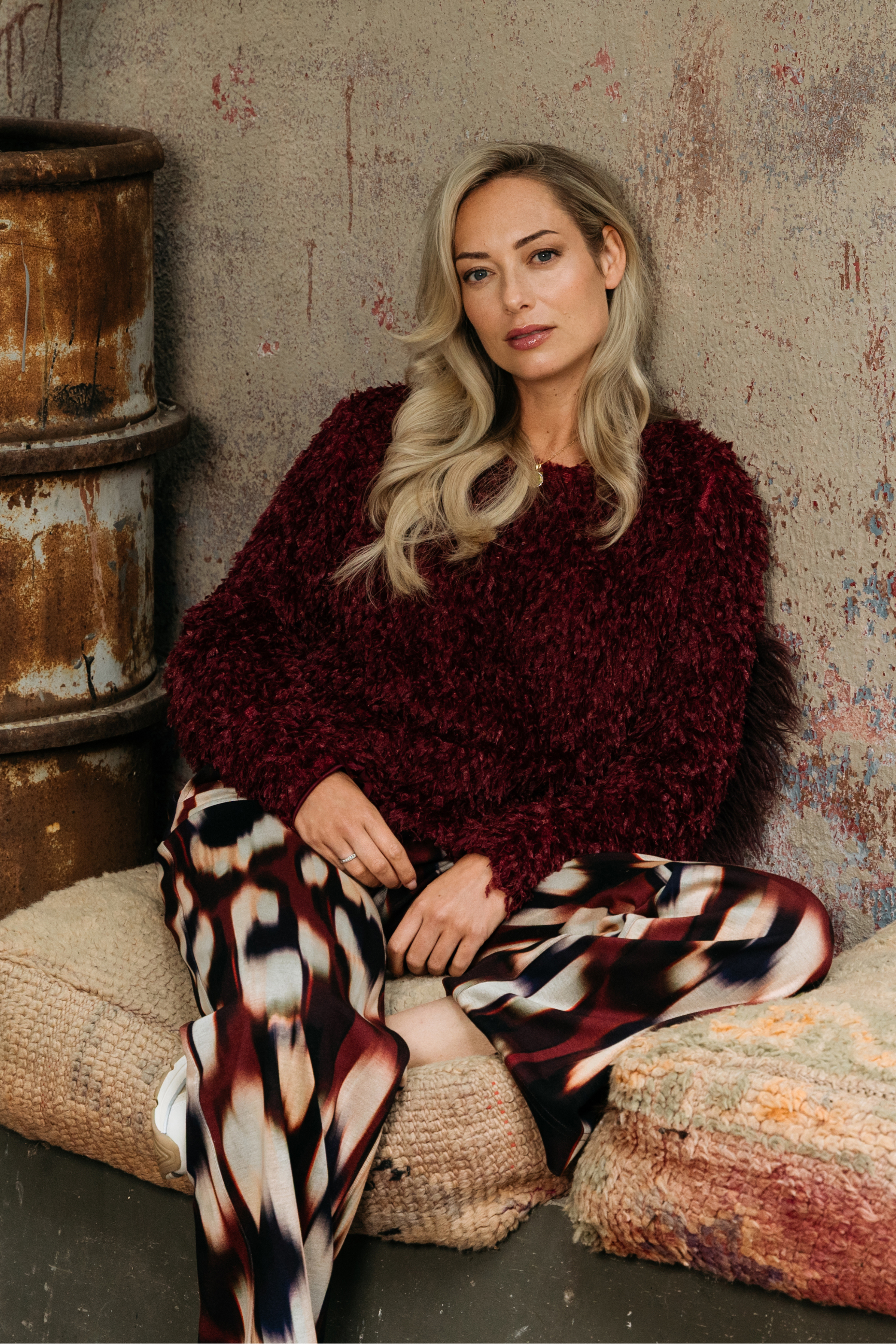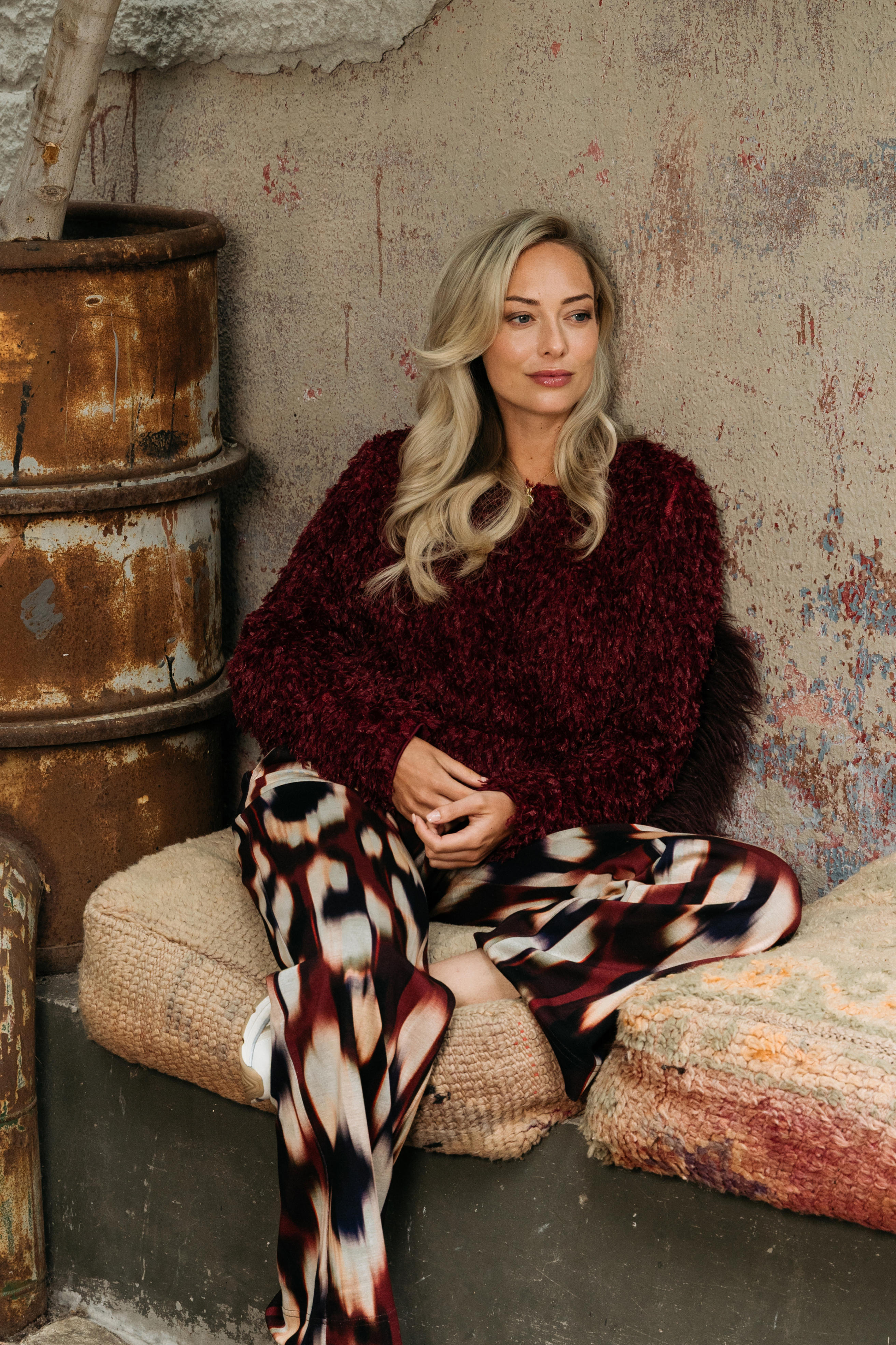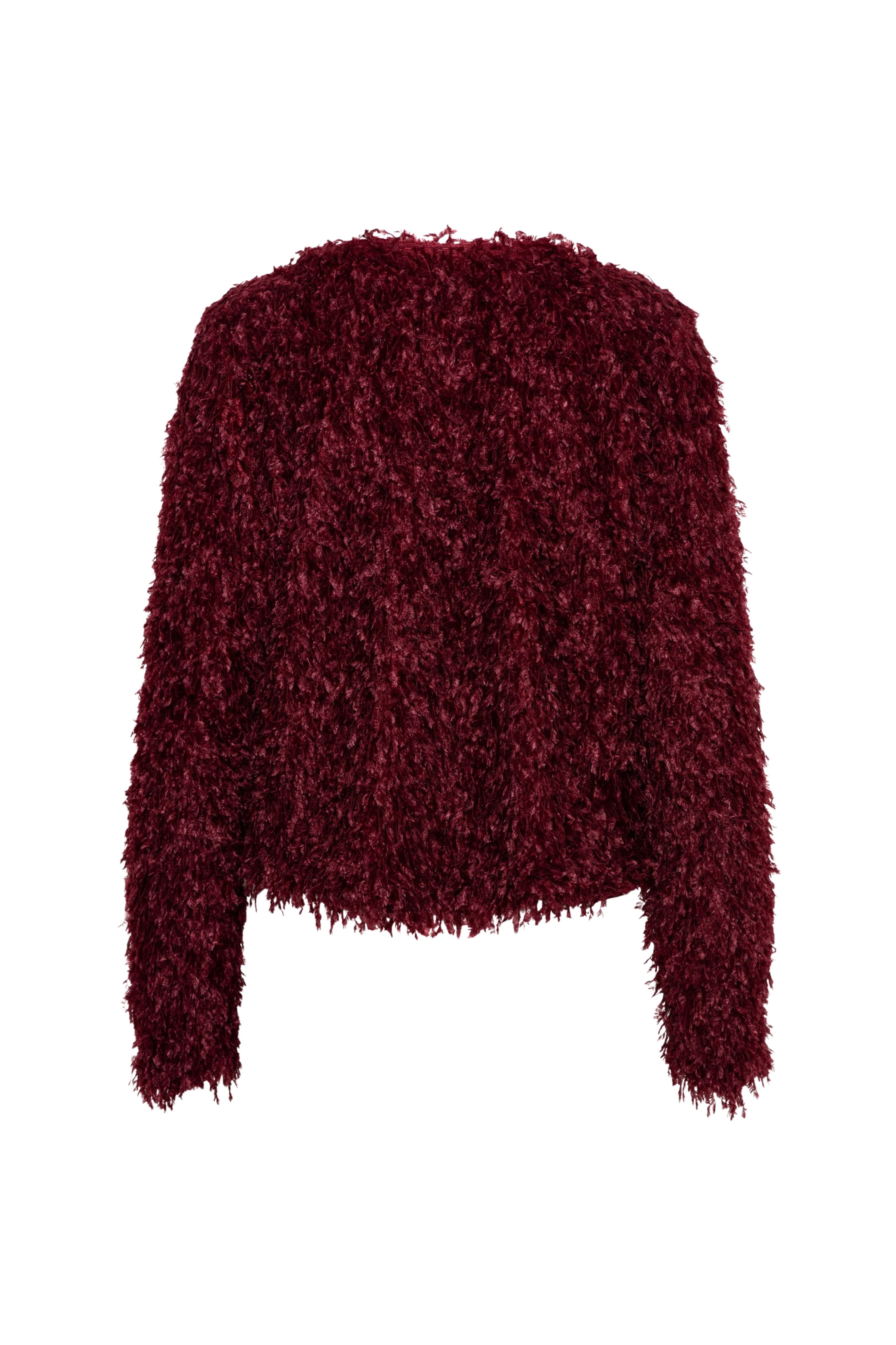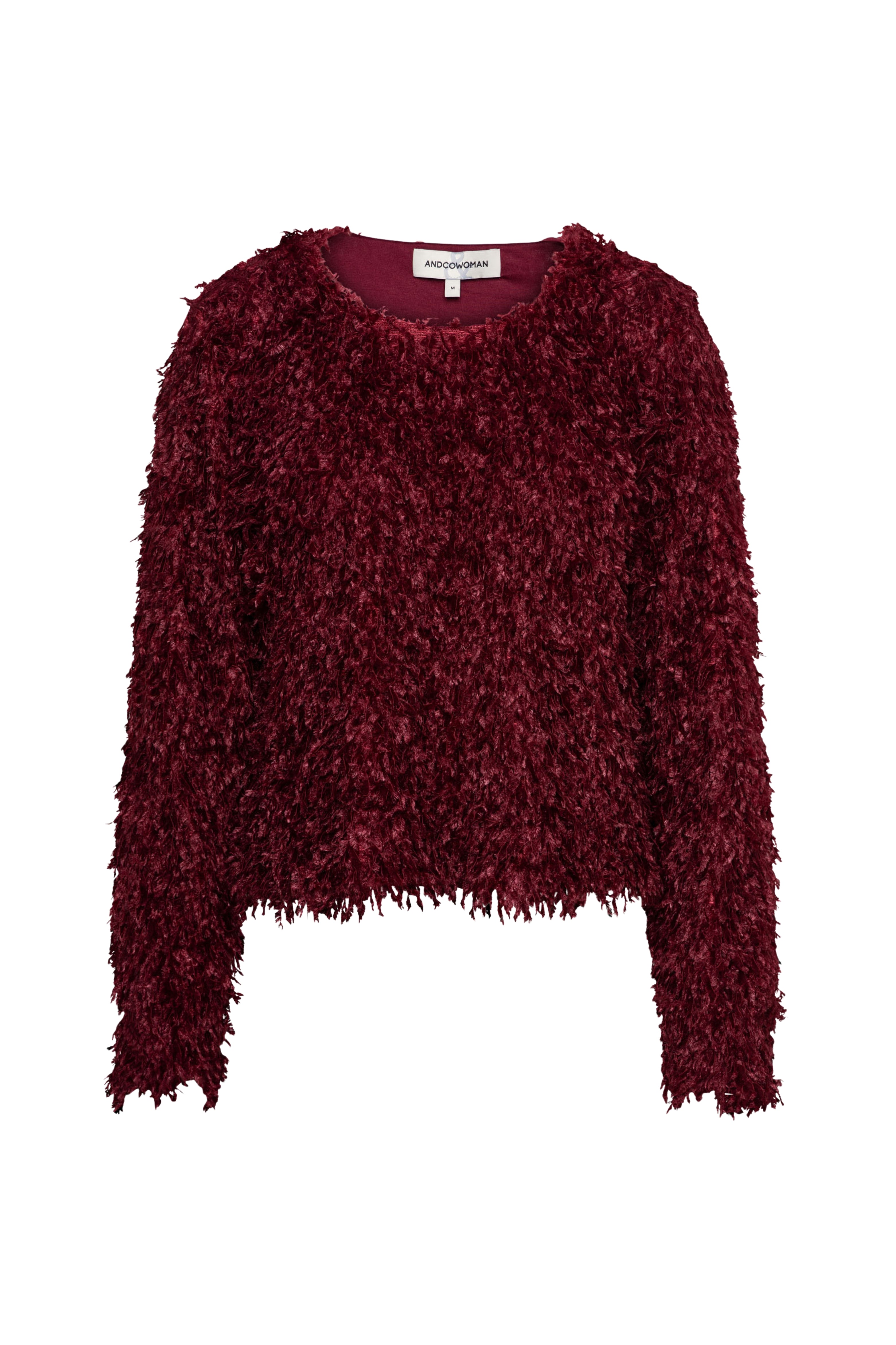 Trui Heather Wine Red van &Co Woman is een zachte fluffy knit met een speels pluizig effect. Door de diepe wijnrode kleur combineer je de trui moeiteloos casual met een jeans of stijlvol met een rok en laarzen.