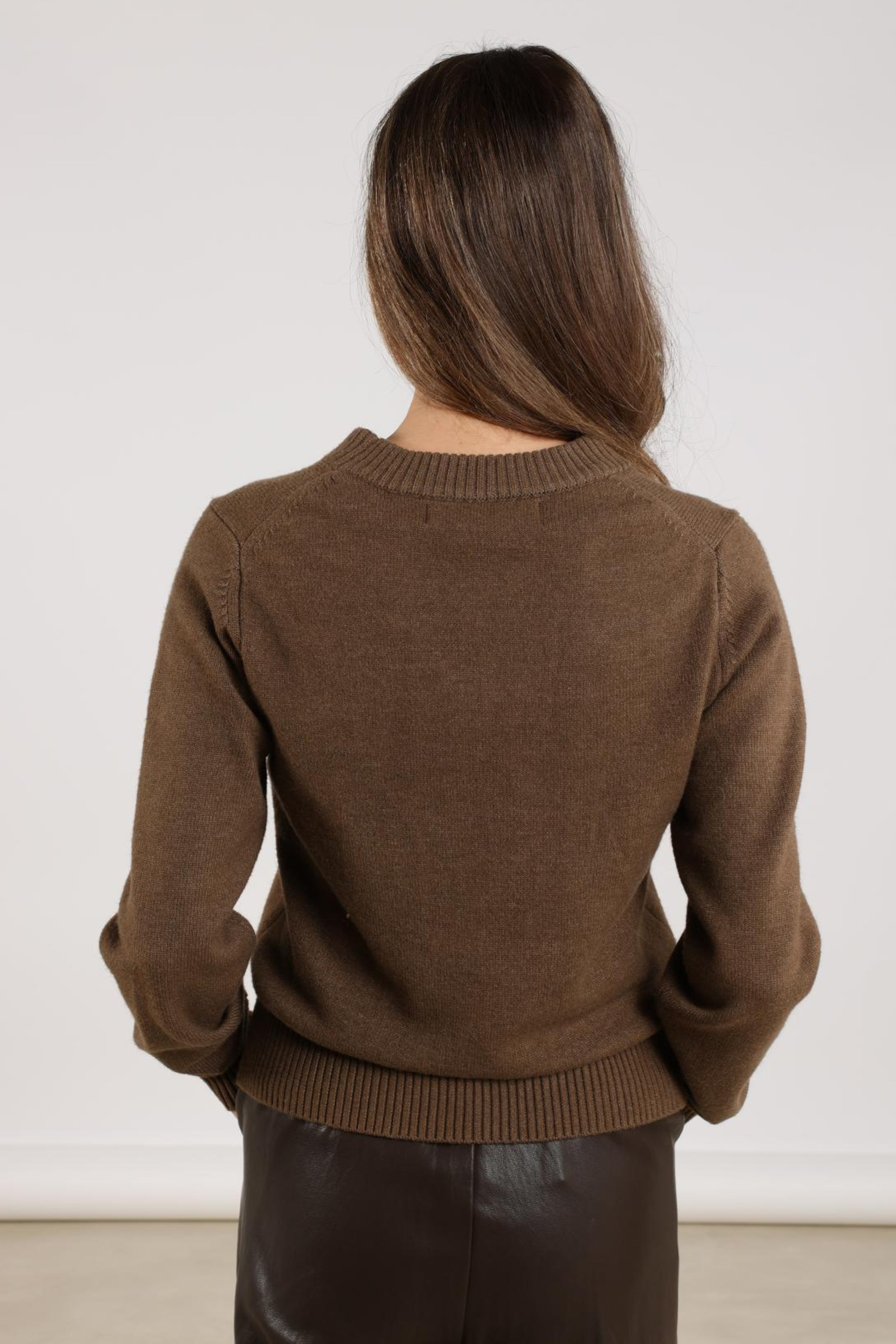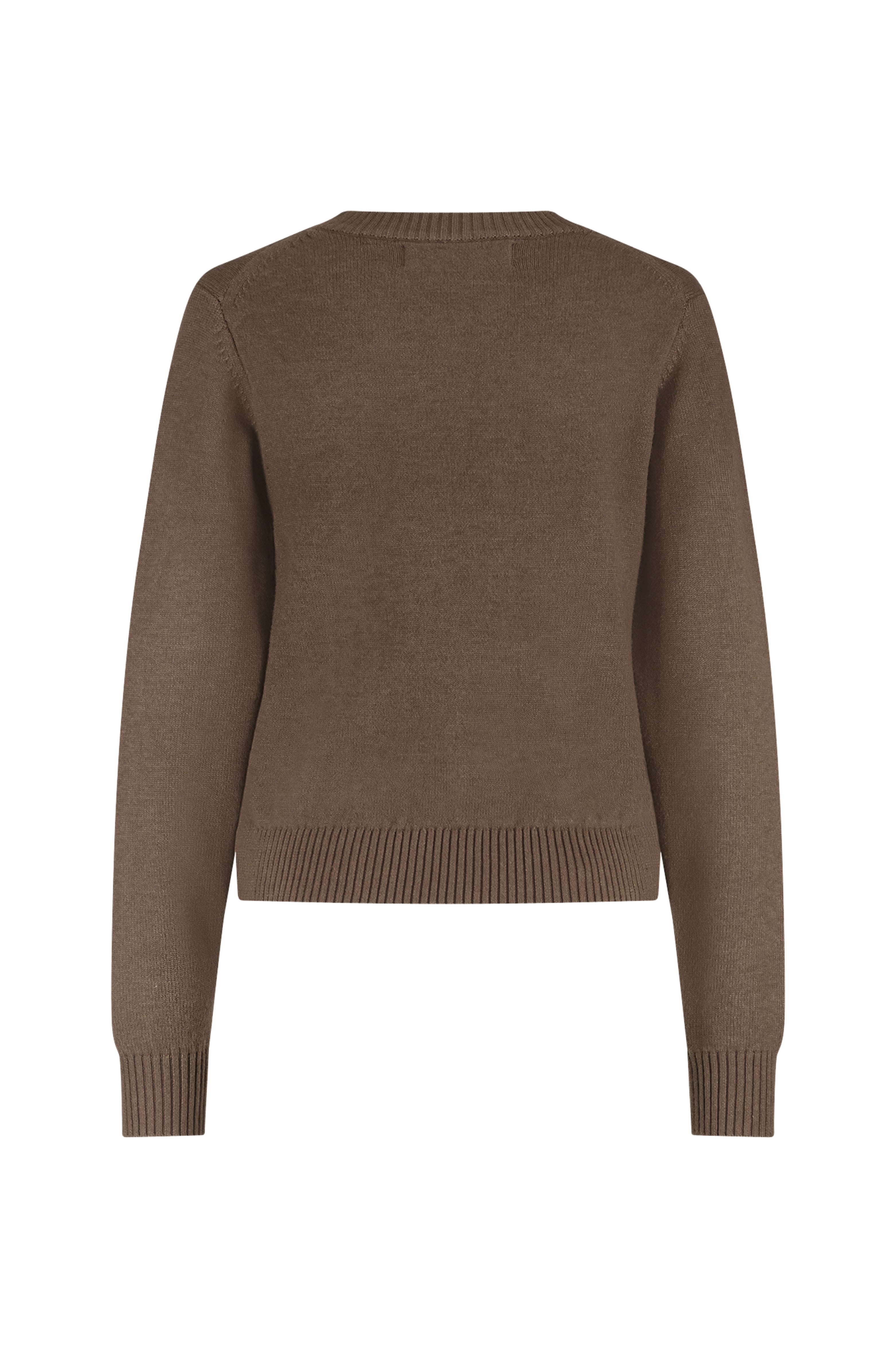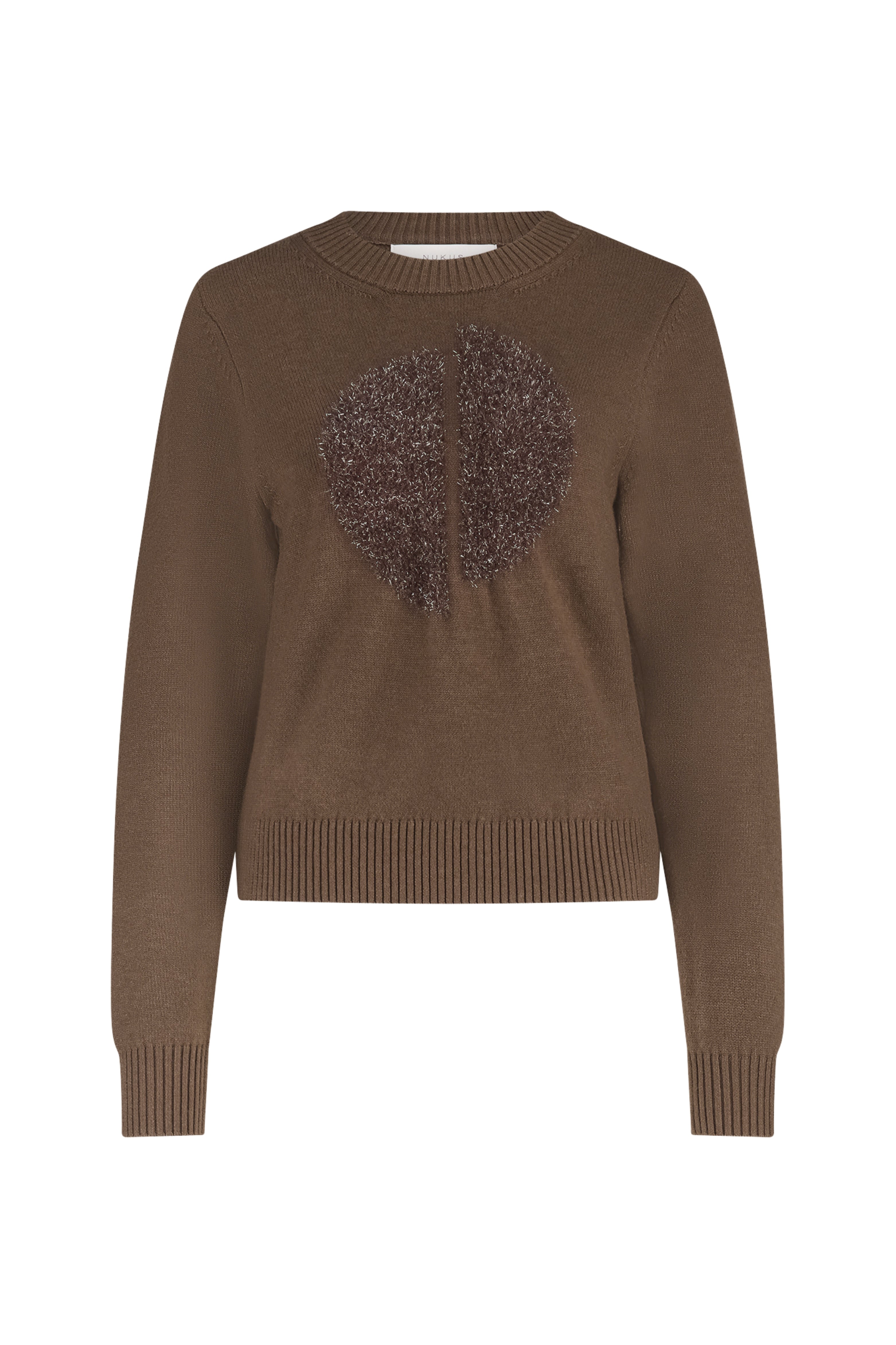 De Trui Intarsia Fango van Nukus is een stijlvolle knit in een warme bruine tint. Het opvallende intarsia-borduursel met lurex details geeft de trui een moderne en luxe uitstraling, terwijl de zachte kwaliteit zorgt voor een comfortabel draaggevoel.