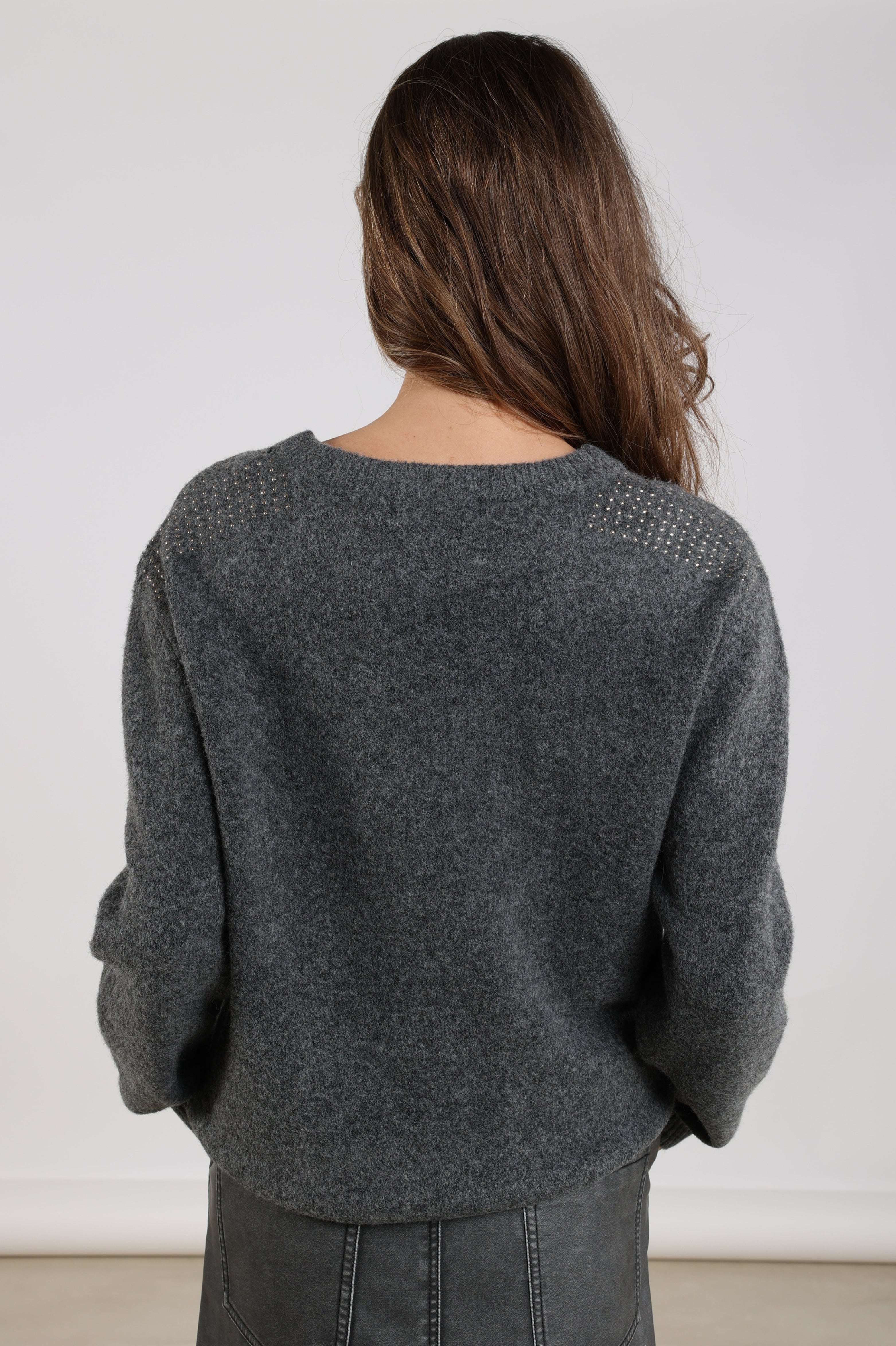 De Nukus Trui Kate Antracite is een zachte knit met V-hals en lange mouwen. De comfortabele regular fit en tijdloze antracietkleur maken deze trui een perfecte basic voor elke garderobe.