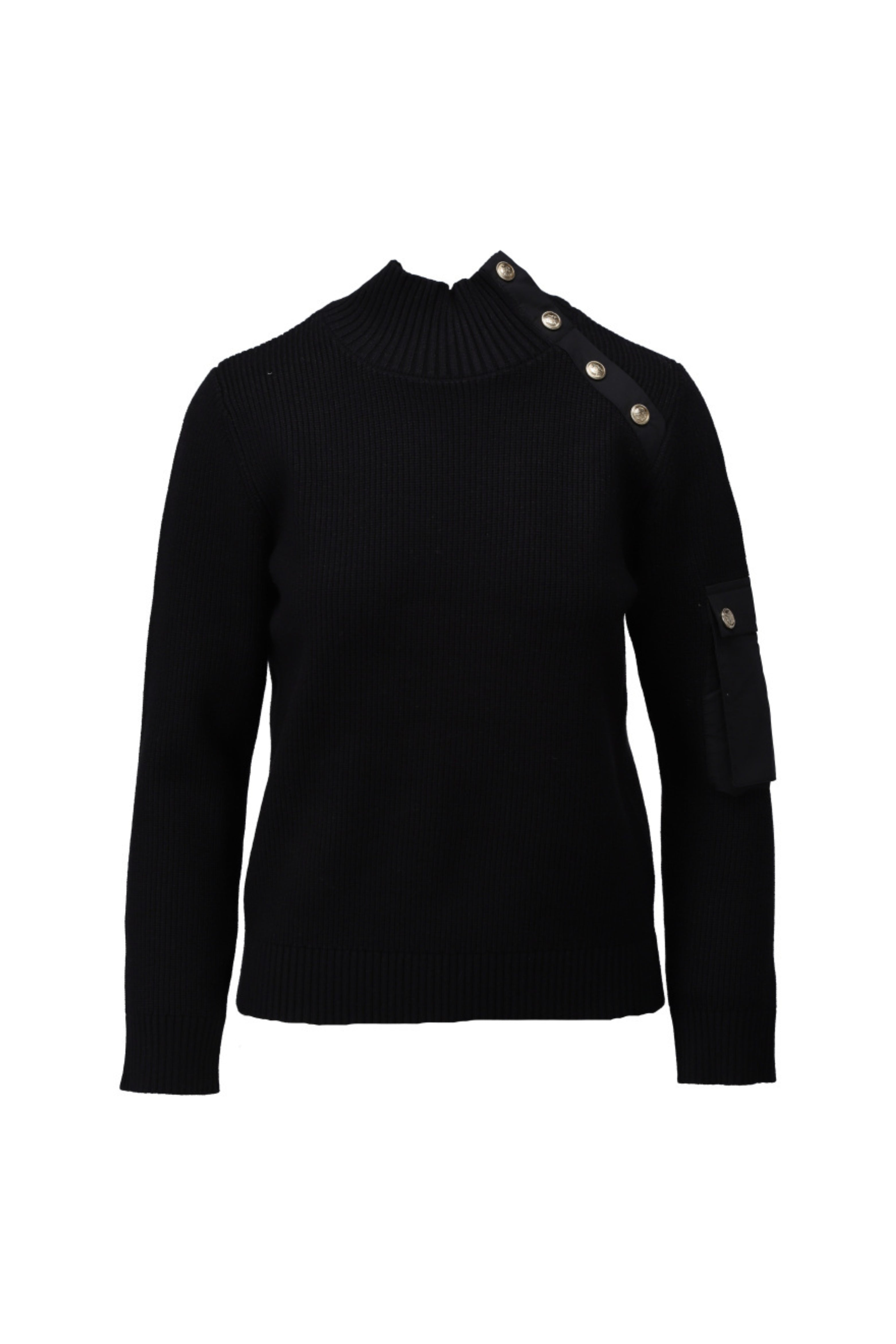 De Trui Kraag Met Knopen En Zakje Black van K-Design is een stijlvolle knit met een speelse knopenrij langs de kraag. Het zakje op de mouw geeft deze tijdloze basic een moderne twist.