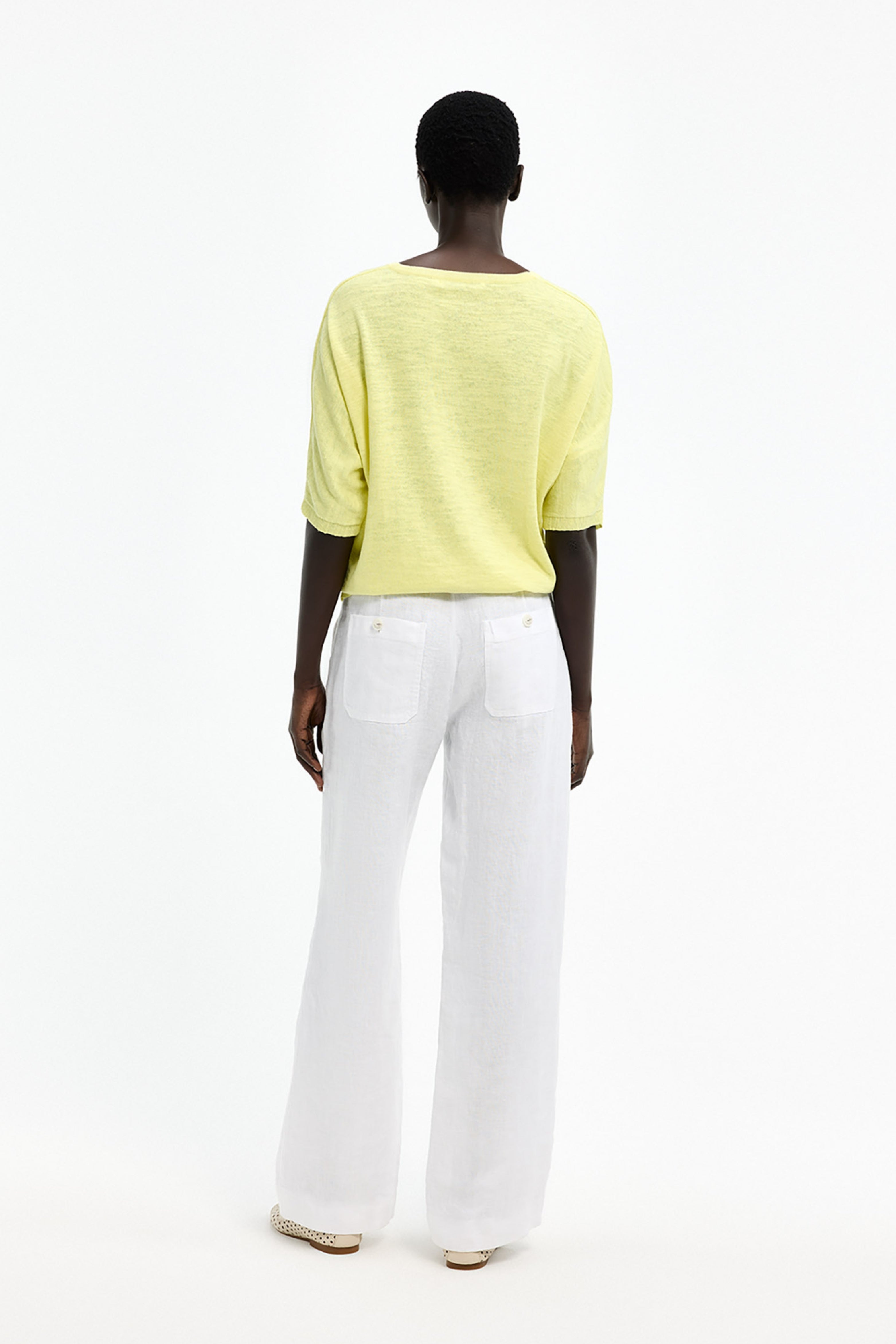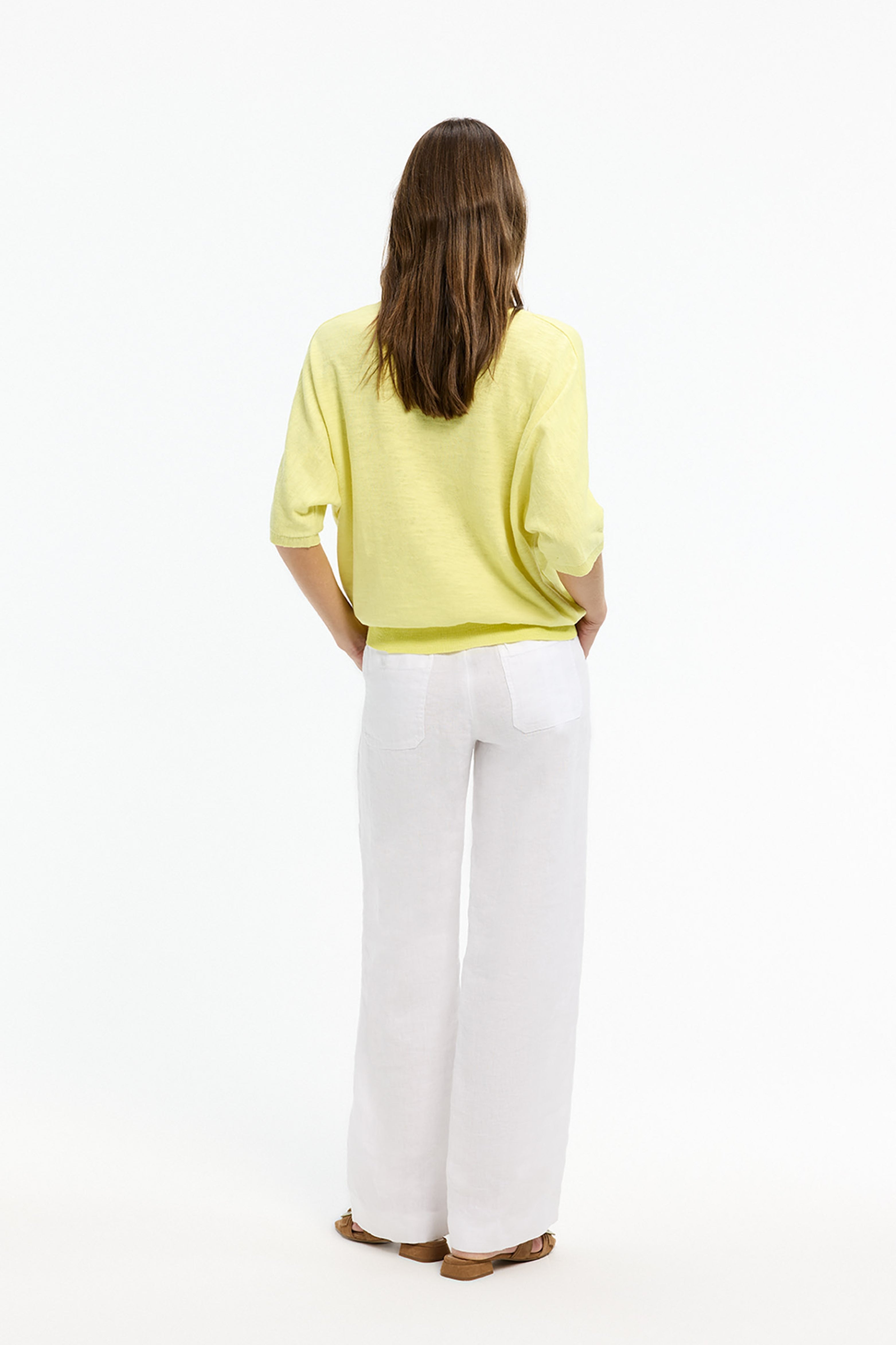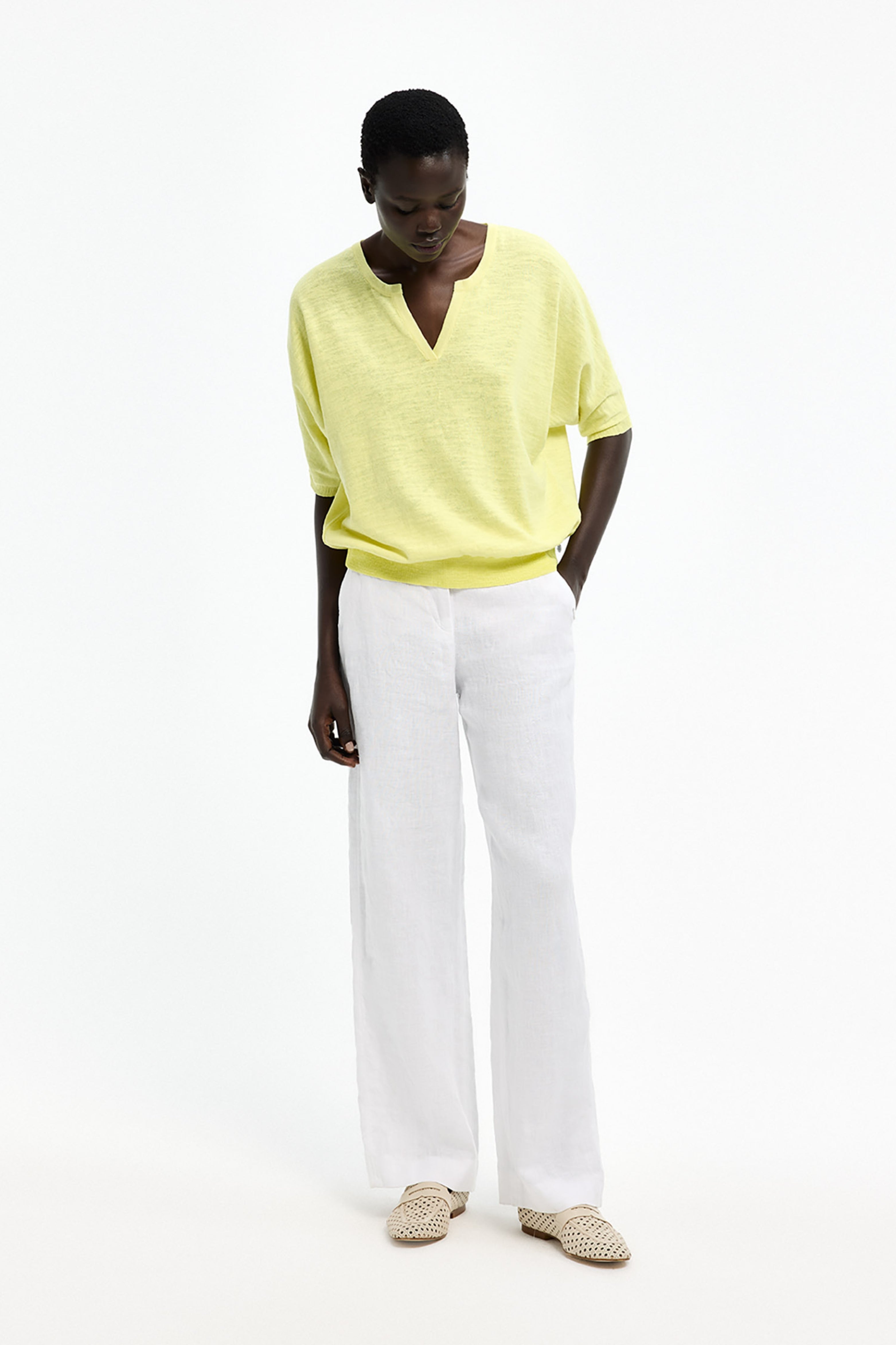 De Trui Romolla Fresh Citrus van Xandres is een frisse trui met V-hals. Het lichte breisel met korte mouwen en ribboord onderaan draagt luchtig en valt mooi blousend. Perfect voor alledaagse zomerse looks.