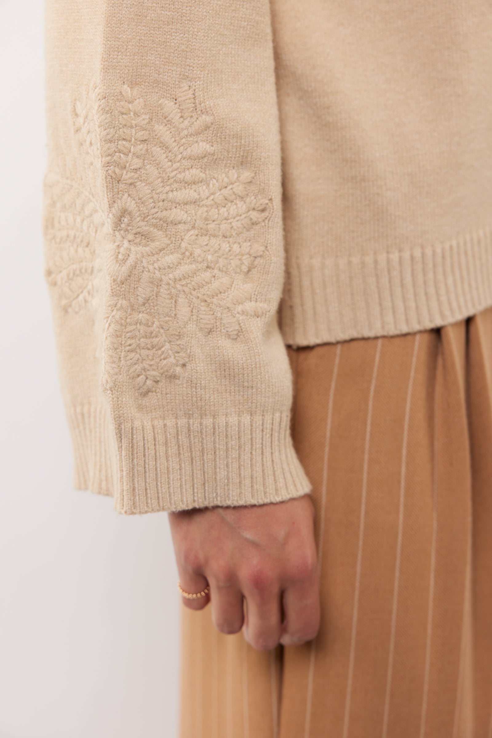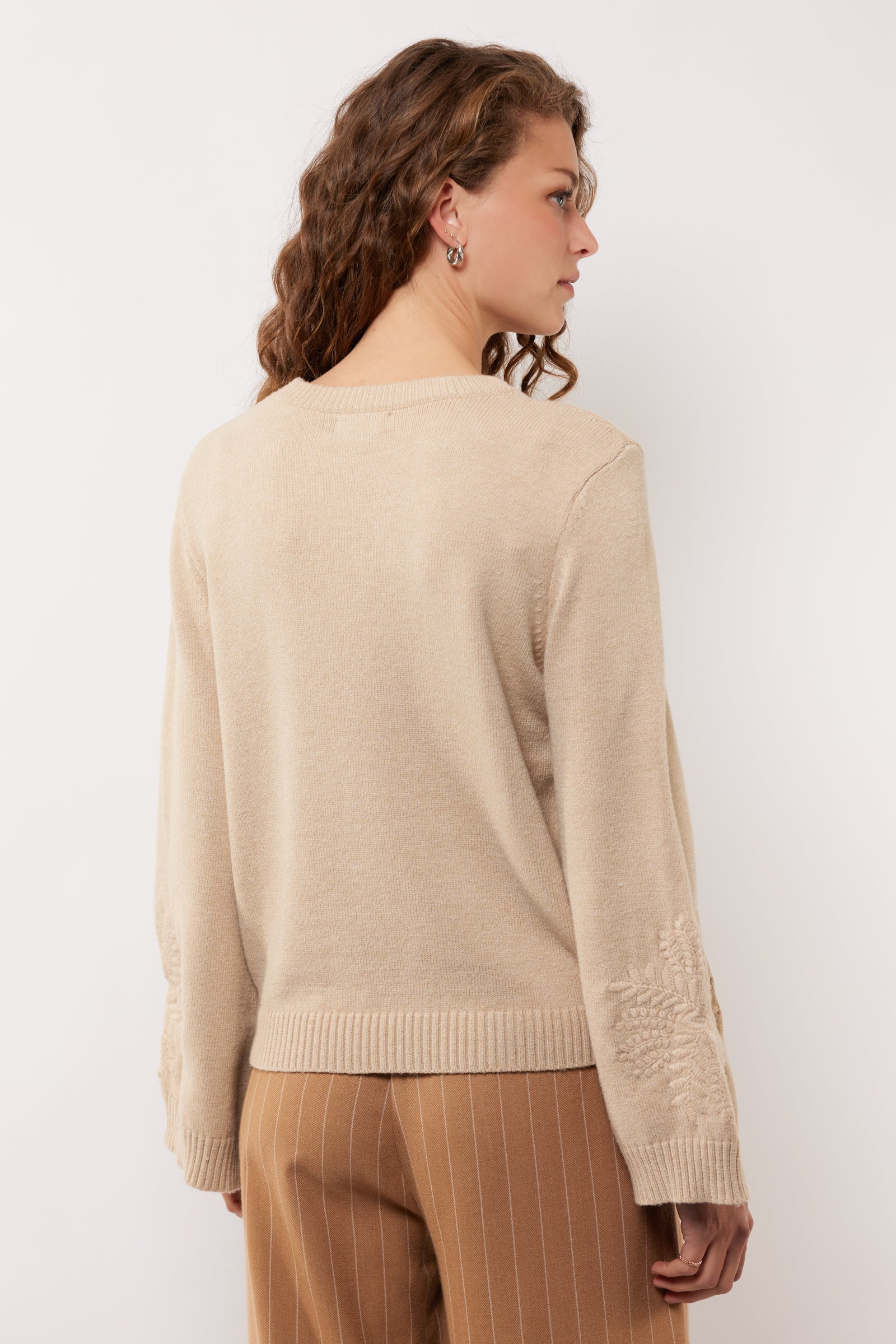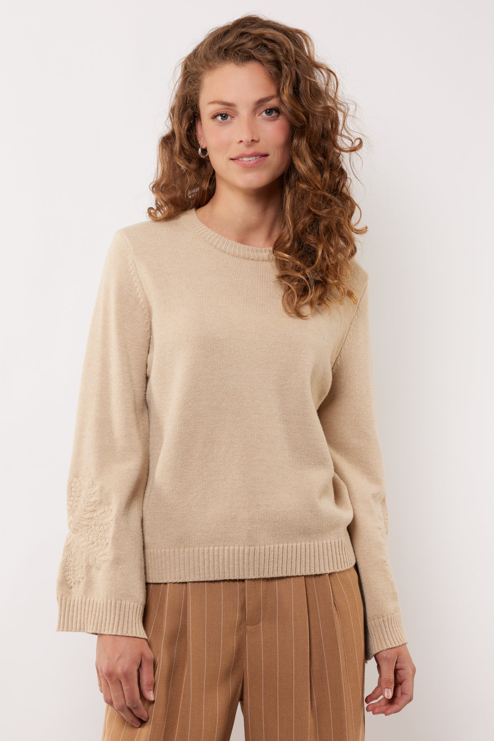 Trui Shonda Knit Wood Ash van G-maxx is een stijlvolle knit met wijde mouwen en ton-sur-ton geborduurde details. De rechte fit en ronde hals geven de trui een moderne touch. Perfect voor een cozy en classy najaars look!