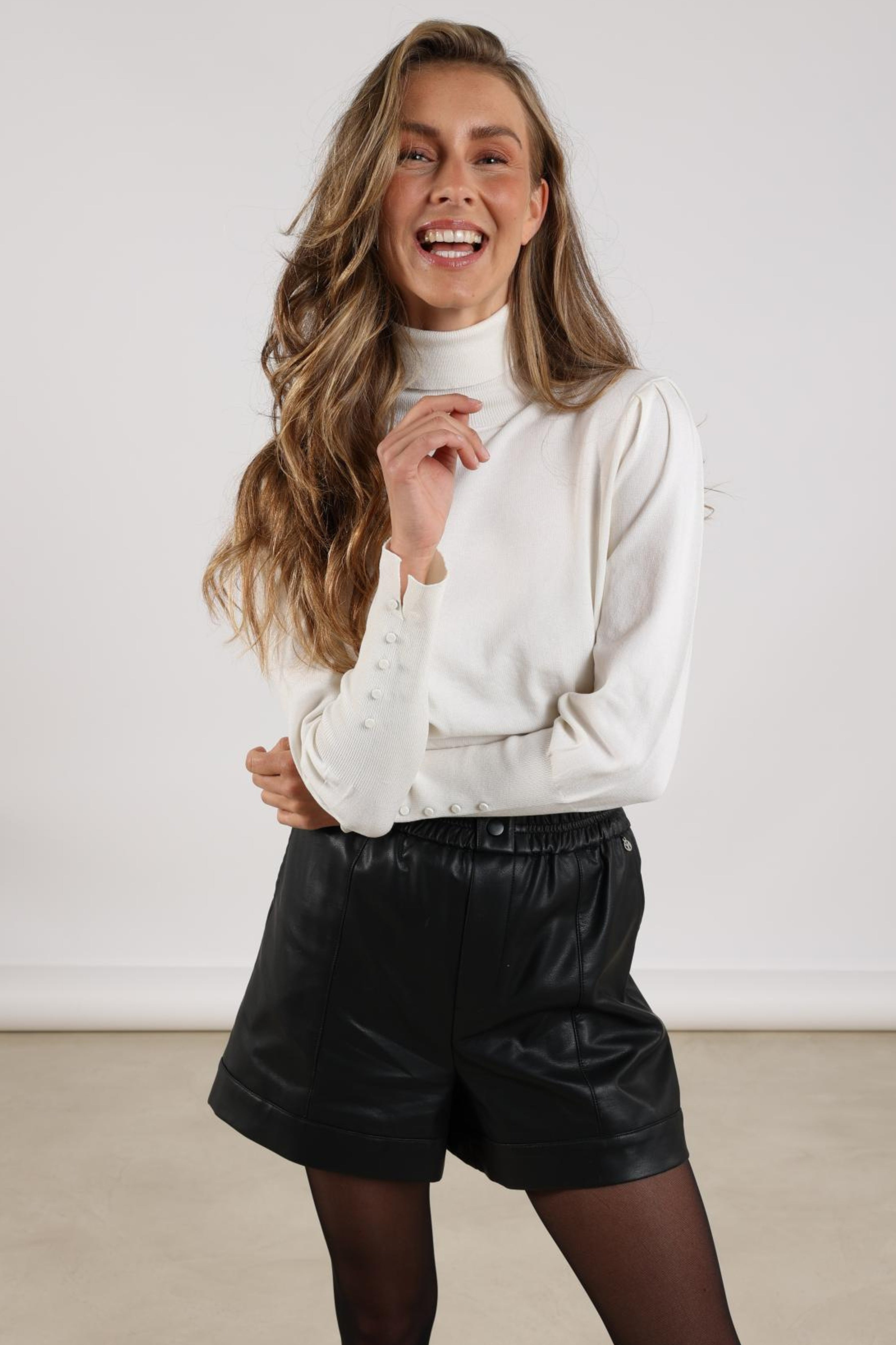 De Trui Silvi Offwhite van Nukus is een tijdloze knit met een moderne col en verfijnde knoopdetails op de mouwen. Het frisse offwhite maakt de trui stijlvol en gemakkelijk te combineren met elke outfit.