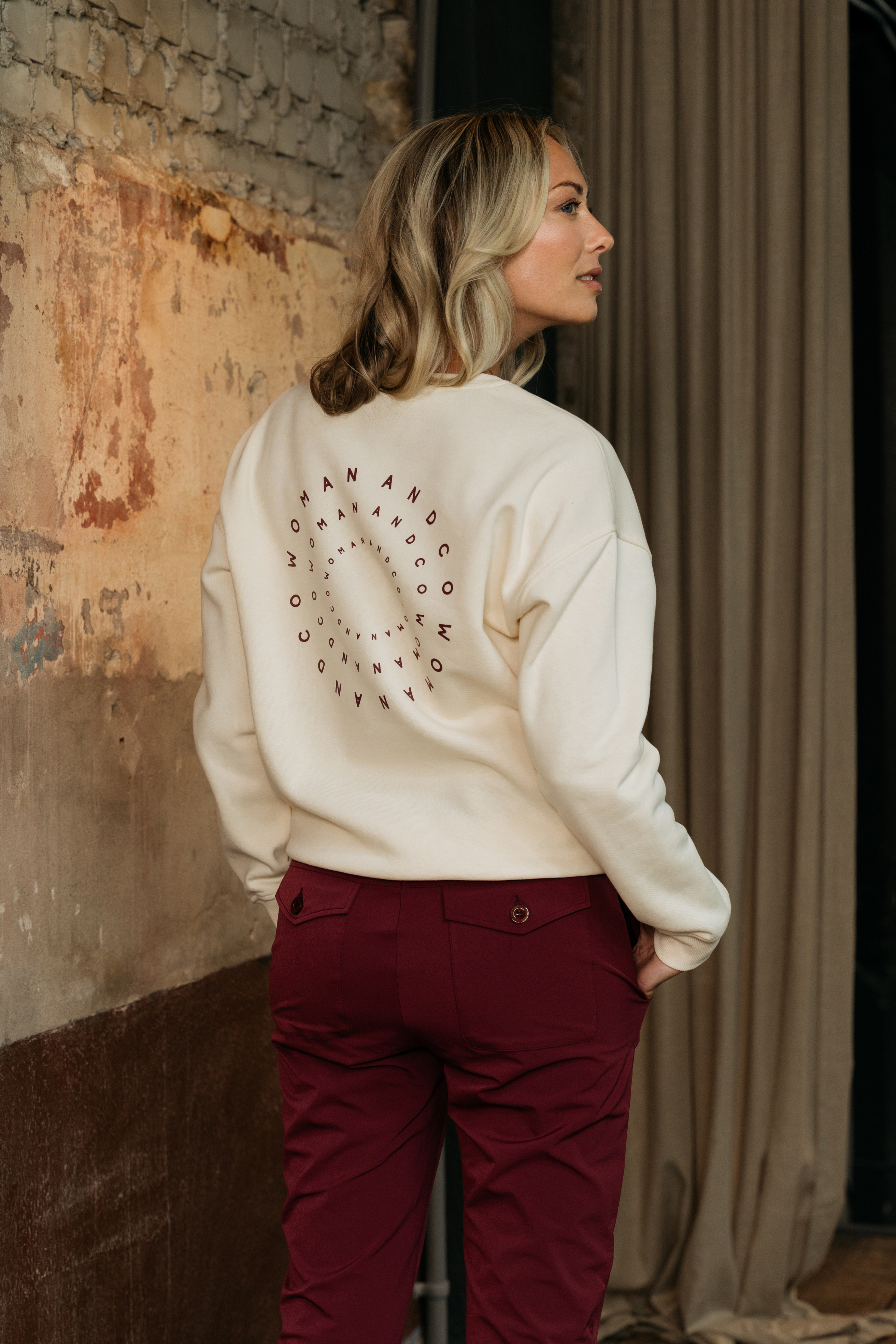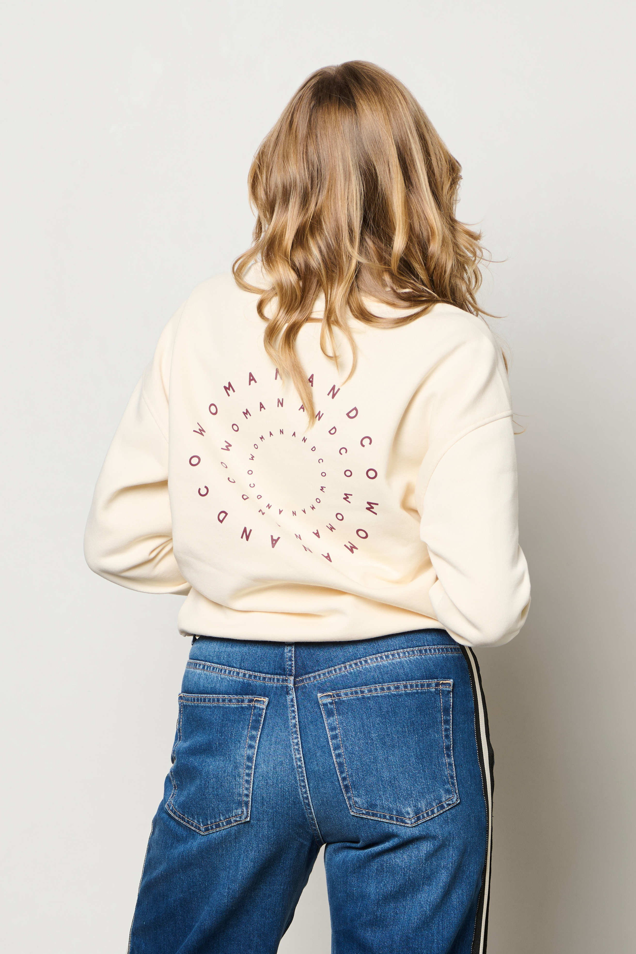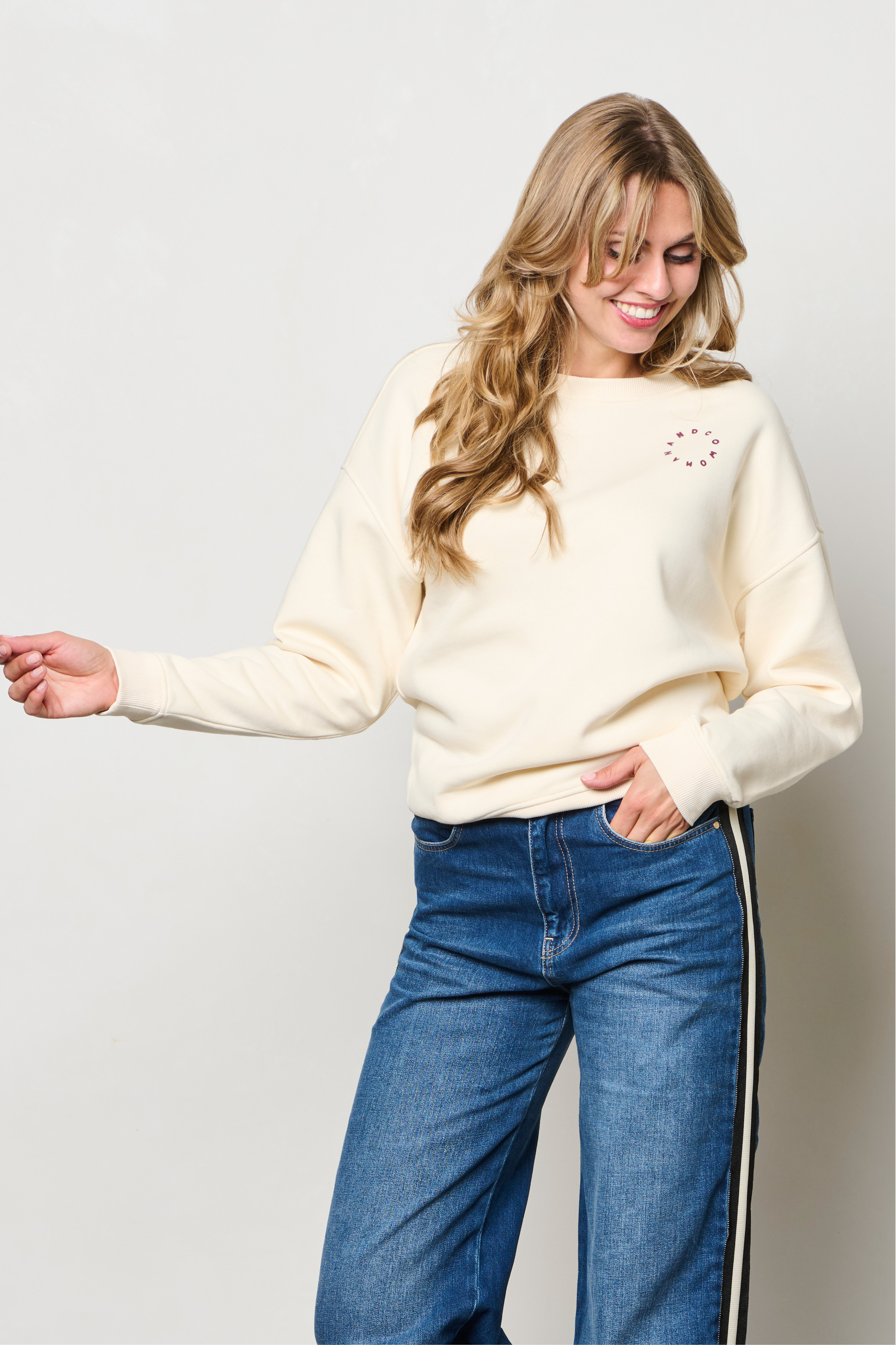 Trui Silya Beige van &Co Woman is een moderne sweater met een relaxte fit. Het minimalistische logo-artwork op de borst en de speelse cirkelprint op de rug geven dit item een sportieve en eigentijdse uitstraling.