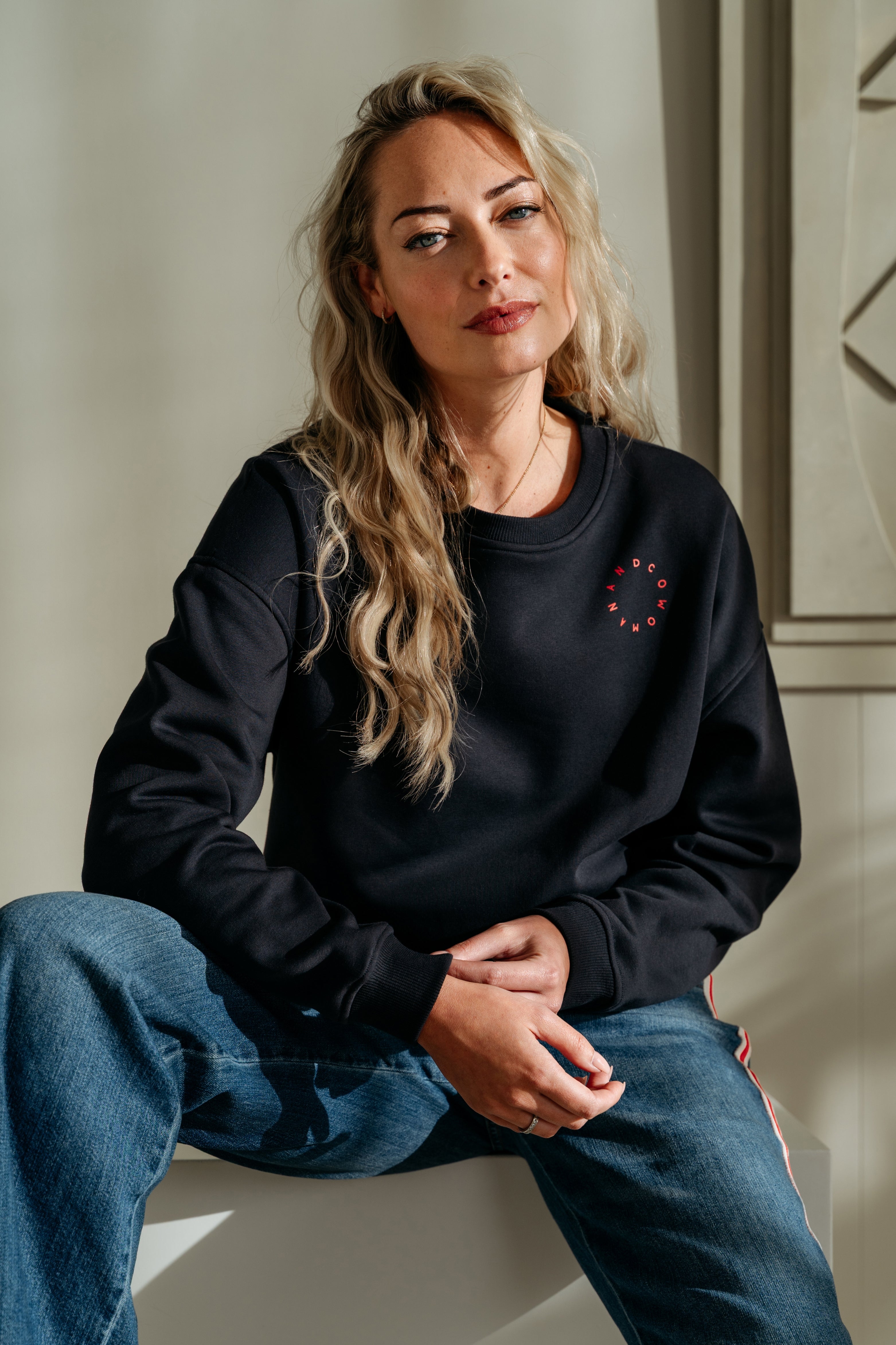 De Trui Silya Navy van &Co Woman is een comfortabele essential met een cleane uitstraling. De zachte stof, klassieke ronde hals en subtiel rood detail geven deze trui een moderne touch binnen een stijlvolle najaarslook.