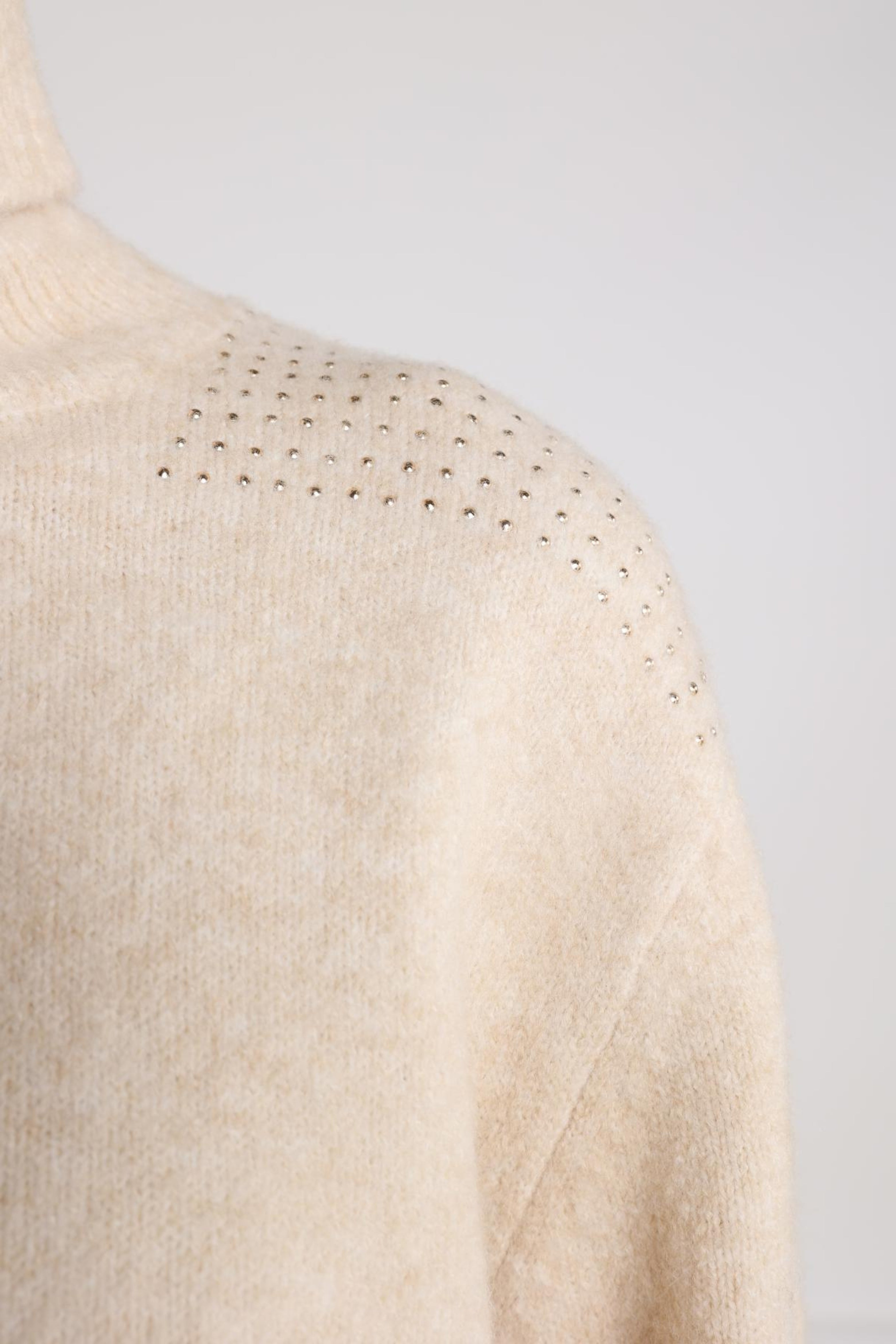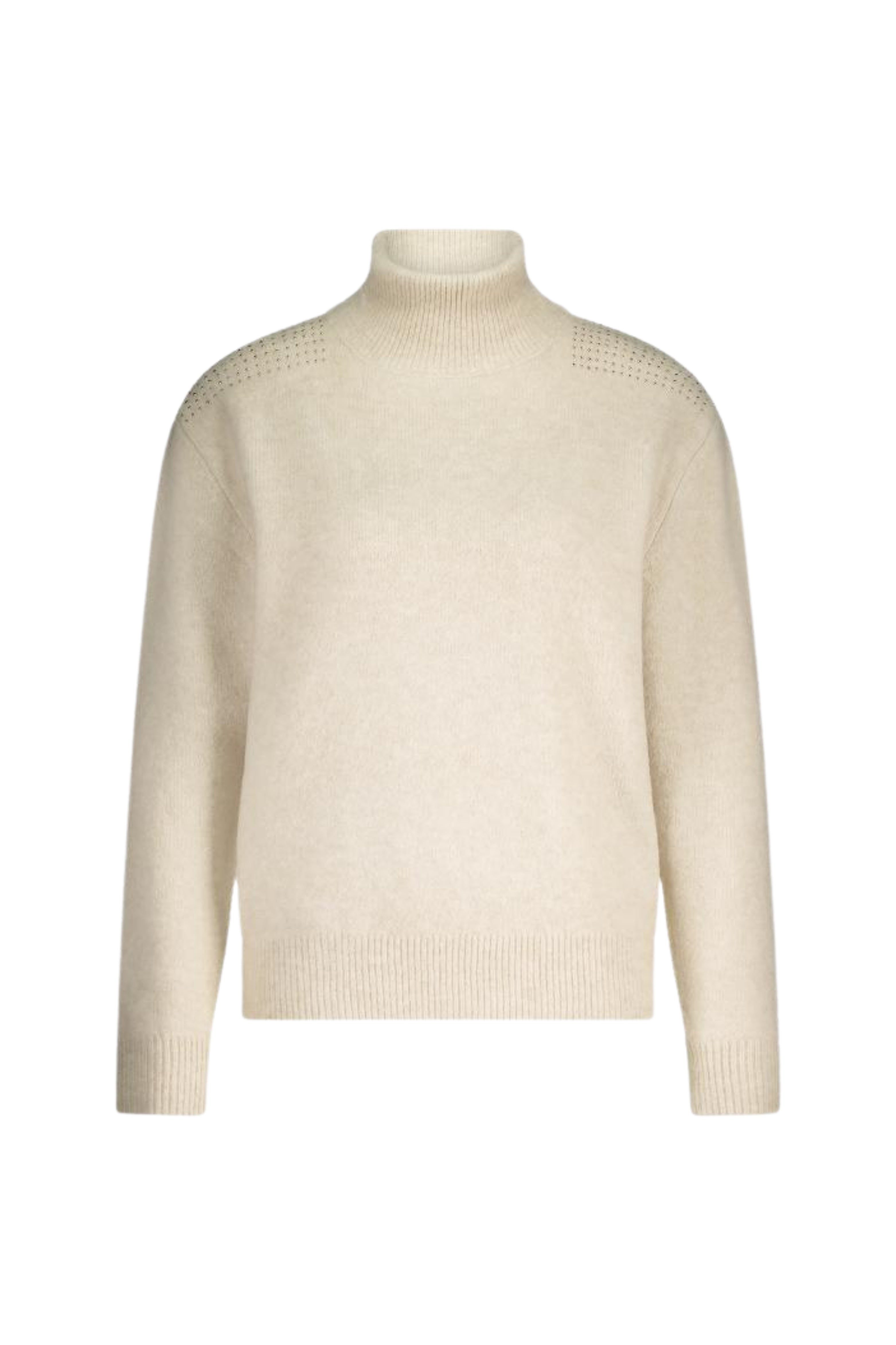 De Trui Steffie Sand van Nukus combineert comfort met een vleugje luxe. De coltrui is uitgevoerd in een zachte knit en voorzien van subtiele strass details op de schouders. Dankzij de regular fit en ribboorden straalt deze trui een tijdloze elegantie uit.