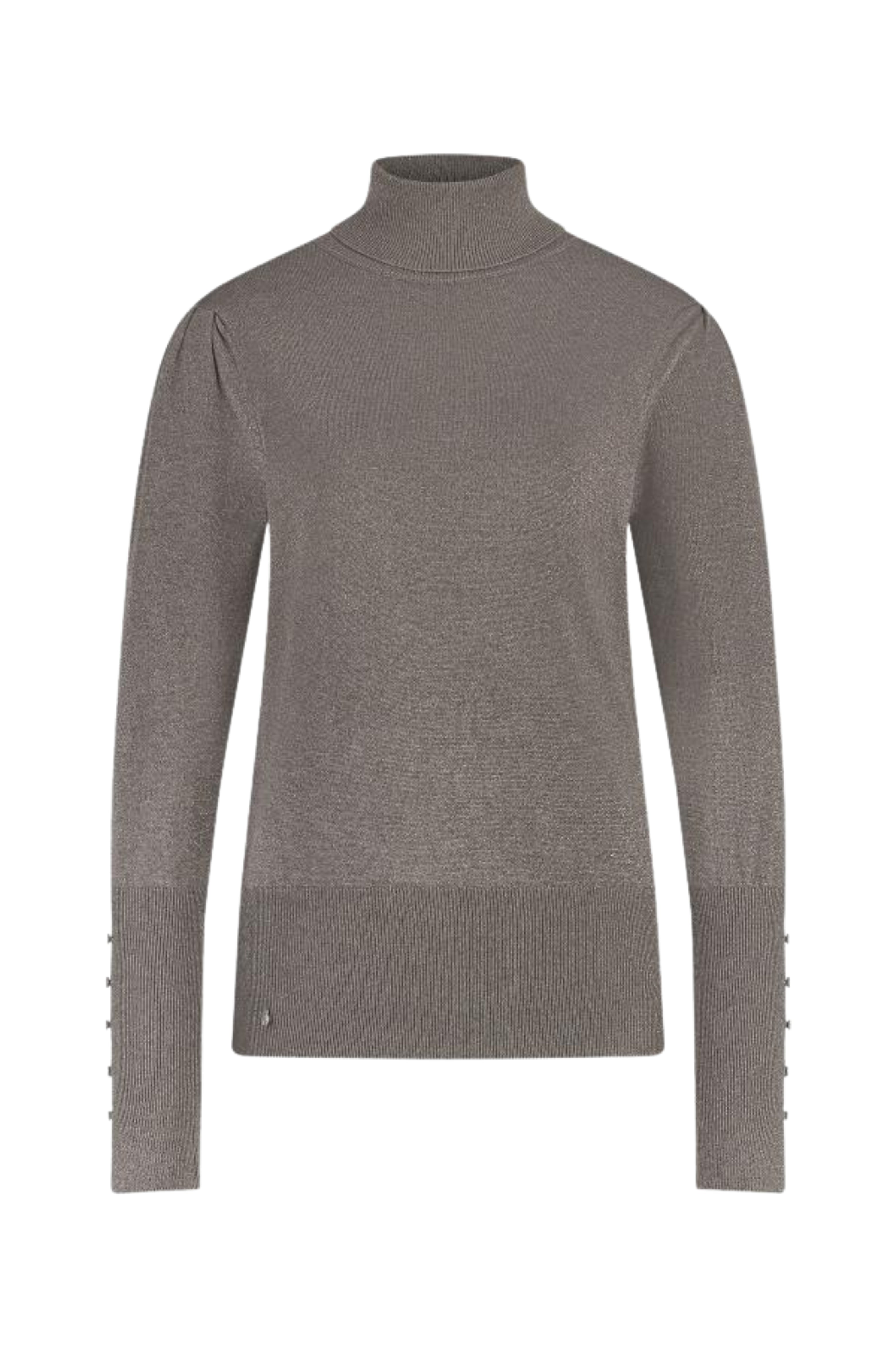 Trui Sylvia Lurex Fango van Nukus combineert comfort met een vleugje glamour. Dankzij de zachte lurex glans en de knoopdetails langs de mouw is deze coltrui een stijlvolle essential voor het najaar. Ideaal om zowel casual chic met een jeans als elegant met een rok te dragen.