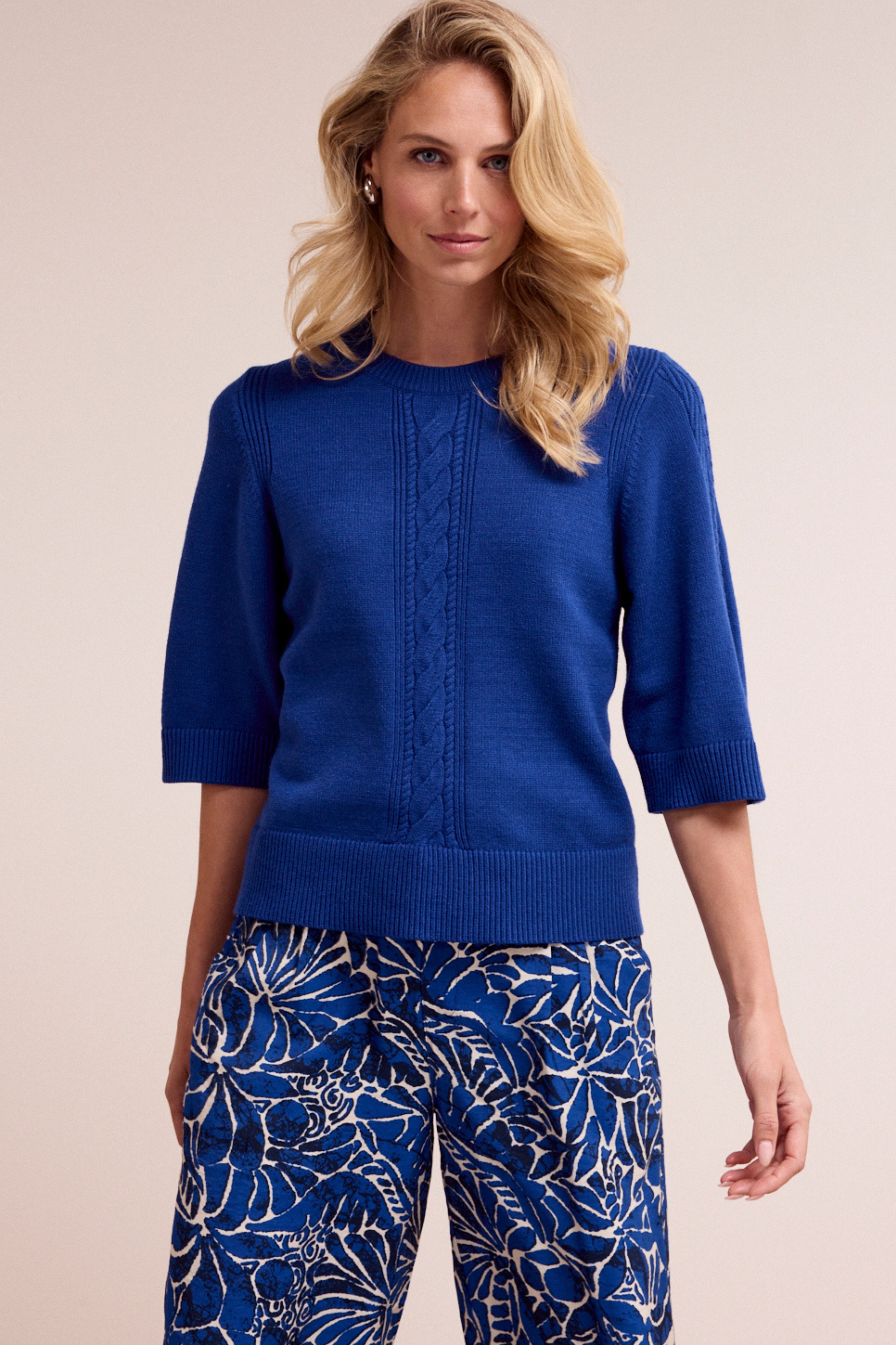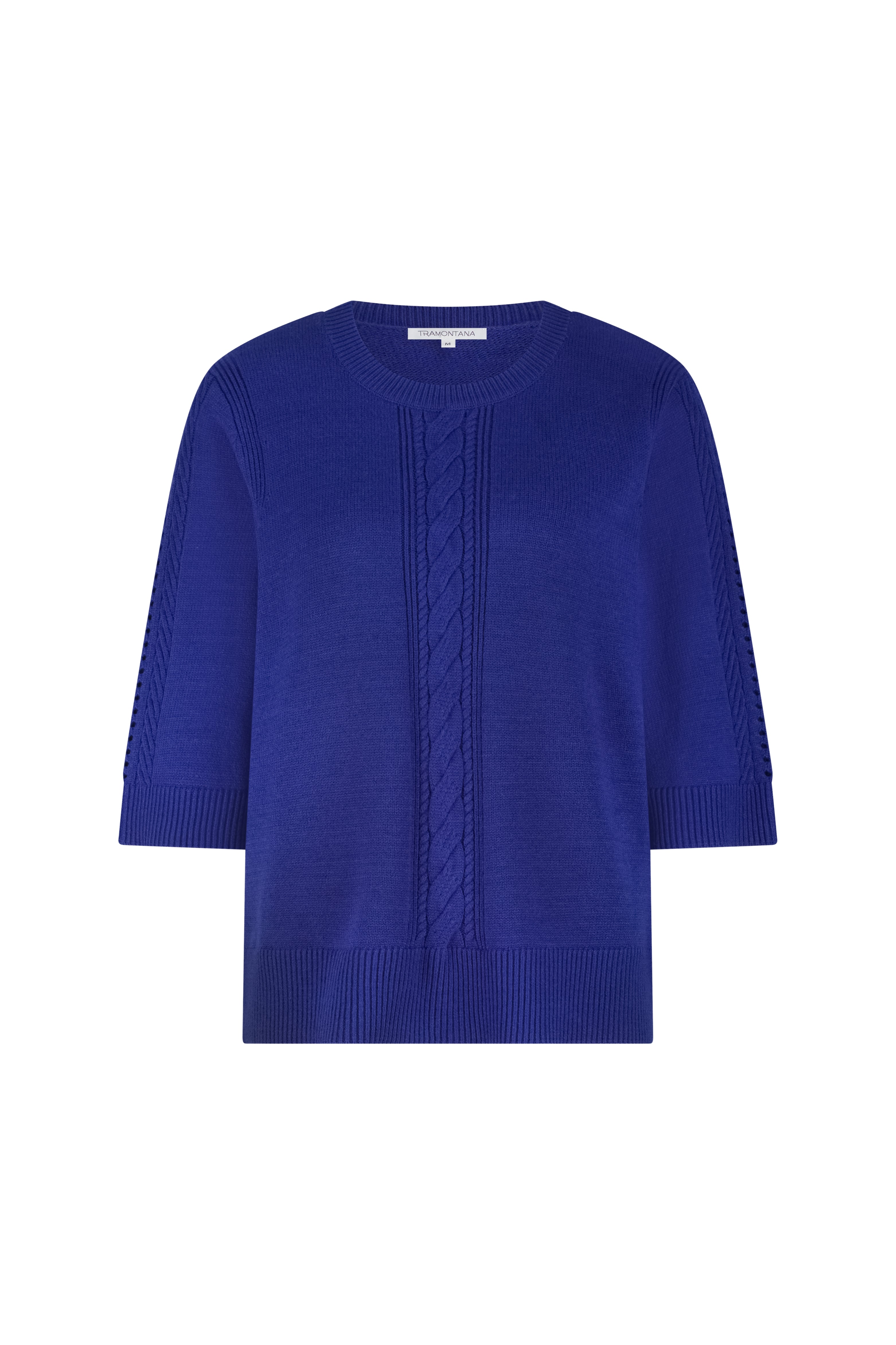 De Trui Wide-Sleeve Ink van Tramontana is een comfortabele knit met een moderne uitstraling. Het kabeldetail op de voorzijde en de wijde mouwen geven deze trui een stijlvolle twist, perfect voor gelaagde najaarslooks.