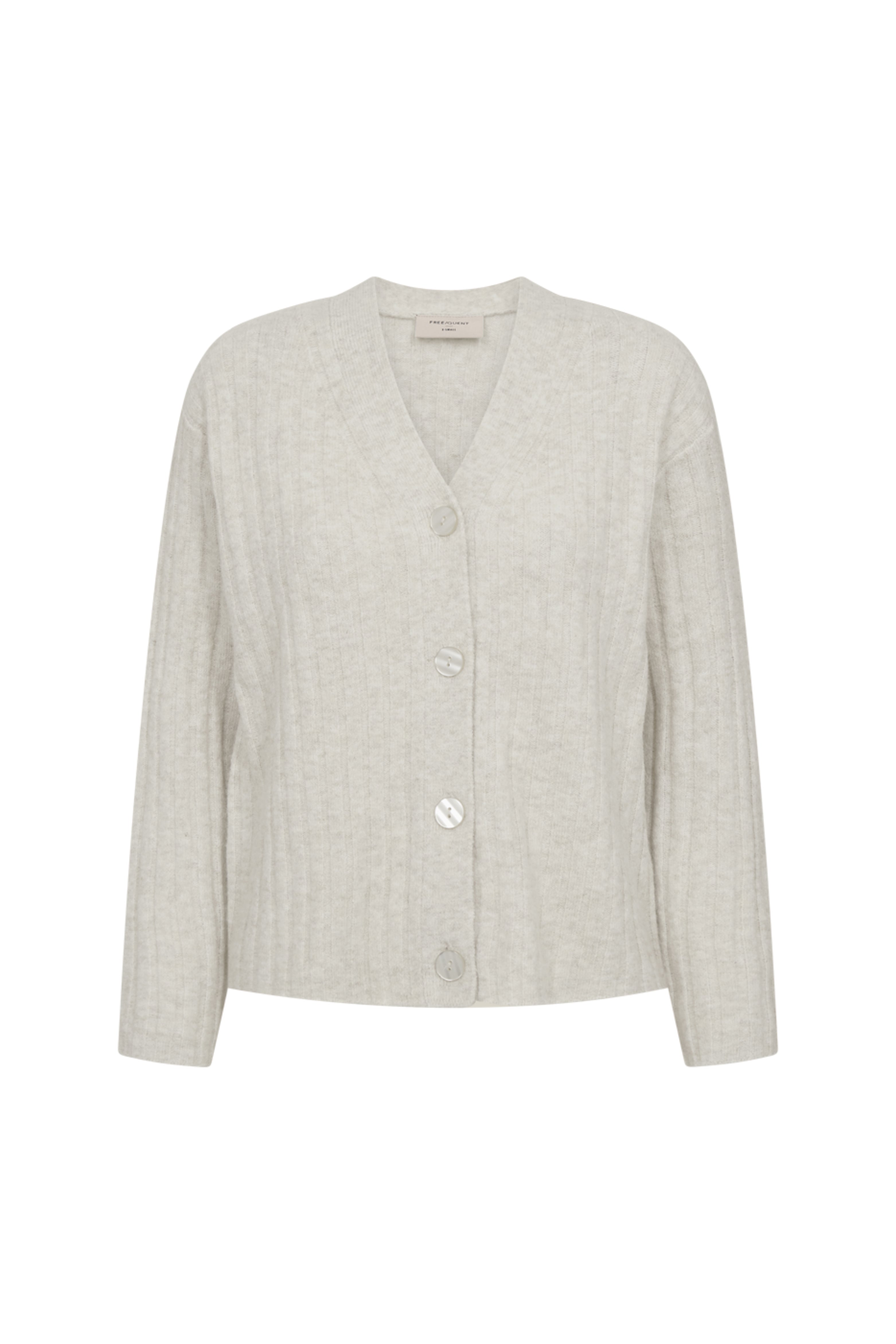 Het Vest Fqhara Moonbeam Melange van Freequent is een tijdloos vest met een zachte, lichte melangekleur. De ribgebreide structuur, rechte pasvorm en glanzende knopen geven dit item een elegante en comfortabele uitstraling.
