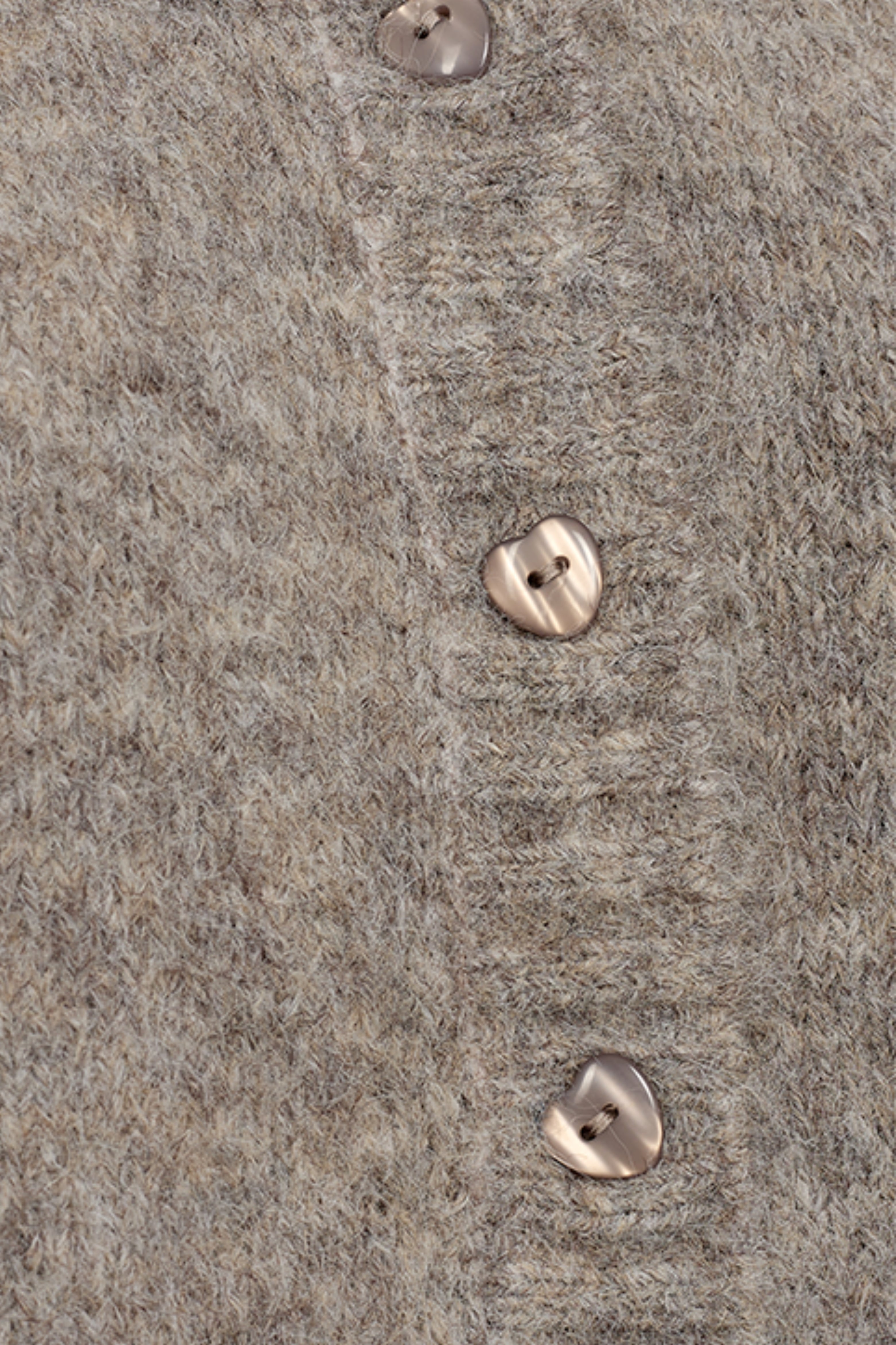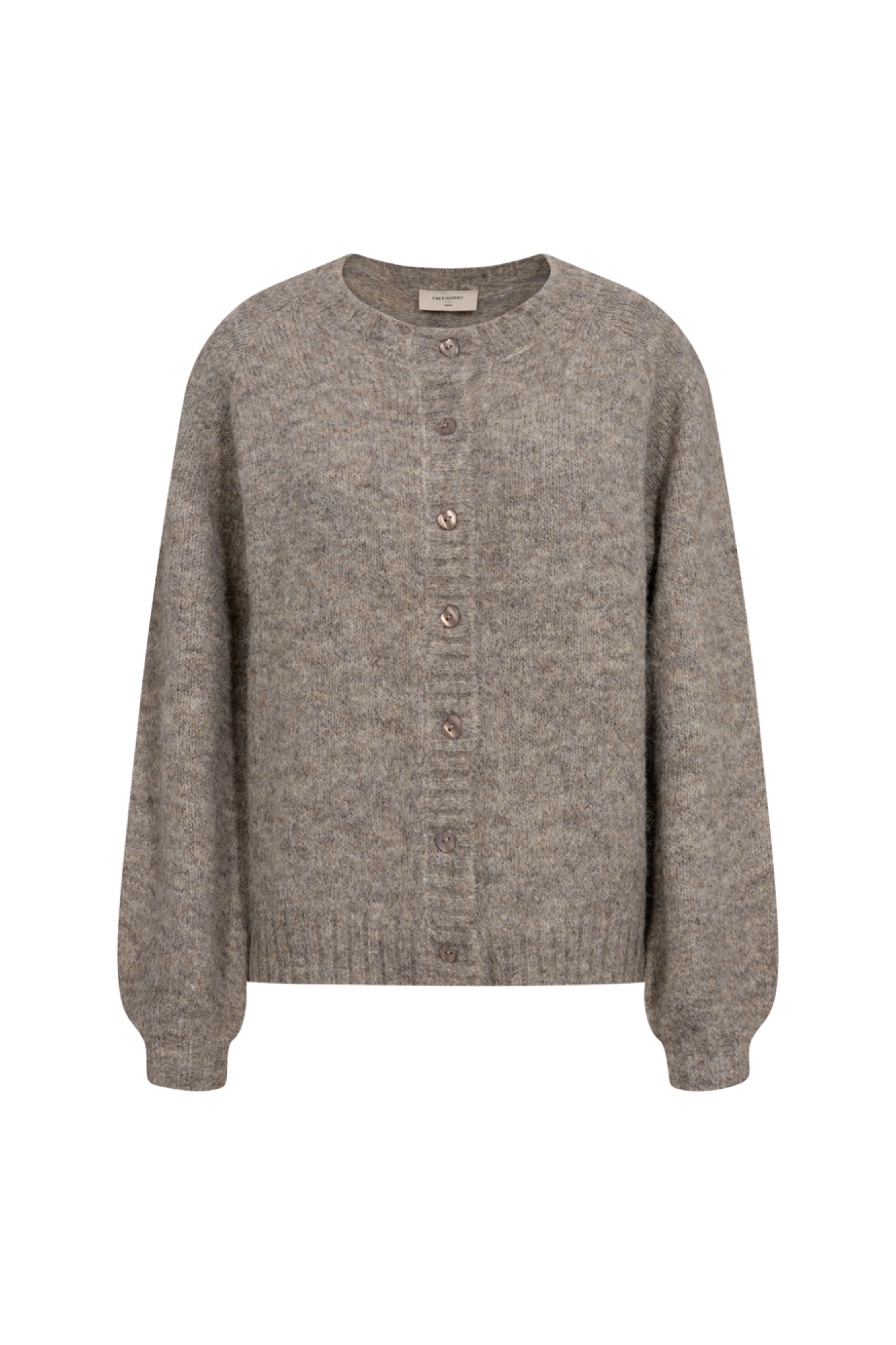 Vest Fqlouisa Desert Taupe Melange van Freequent is een zacht gebreid vest in een gemêleerde taupe tint met een comfortabele regular fit. De subtiele hartjesknopen voegen een speels en vrouwelijk detail toe.