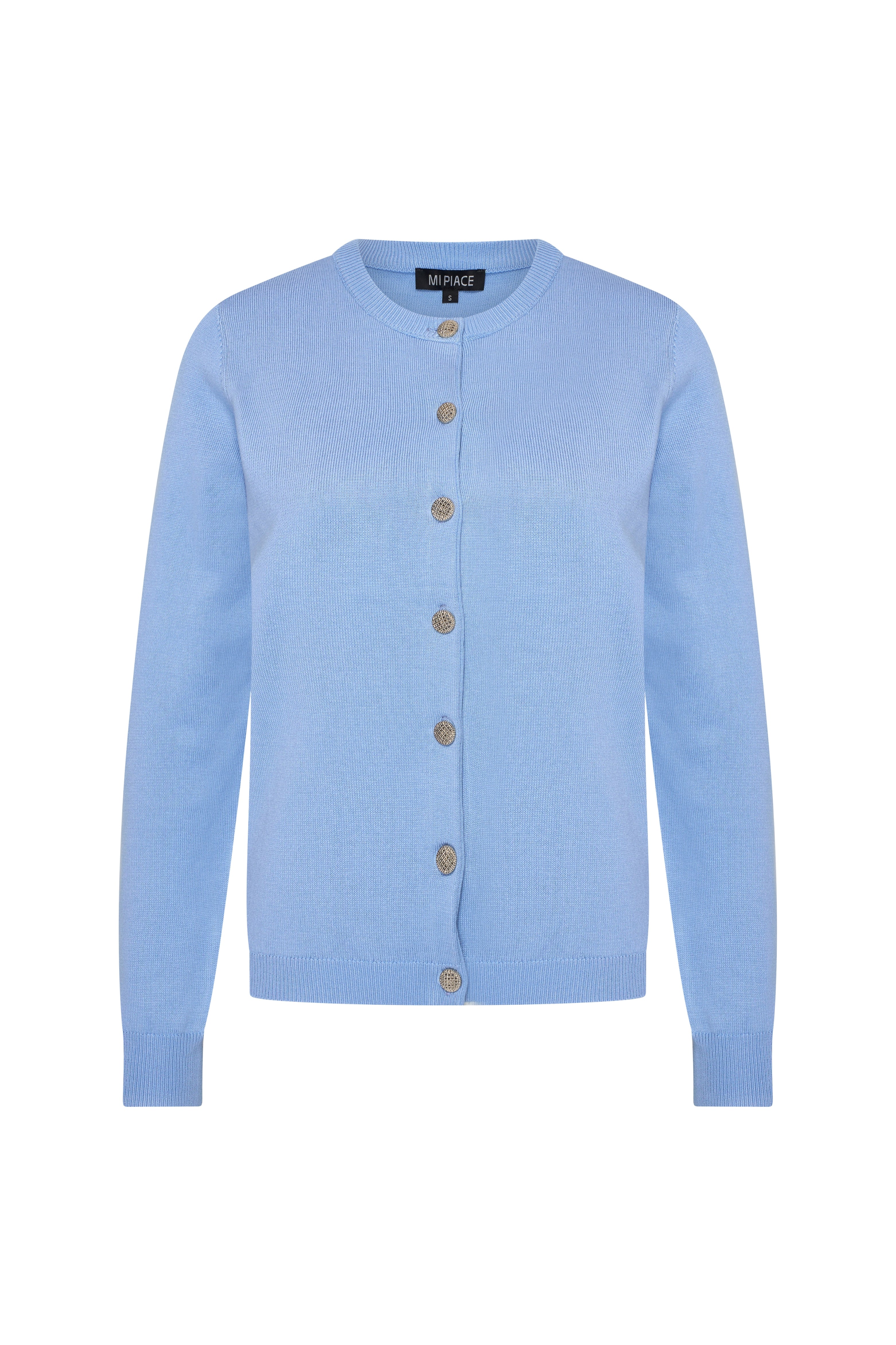 Het Vest Lavender Blue van Mi Piace is een elegant, fijngebreid vest met ronde hals en sierlijke knoopsluiting. De zachte lavender blue tint en comfortabele stof maken dit vest ideaal voor zowel casual als geklede looks.