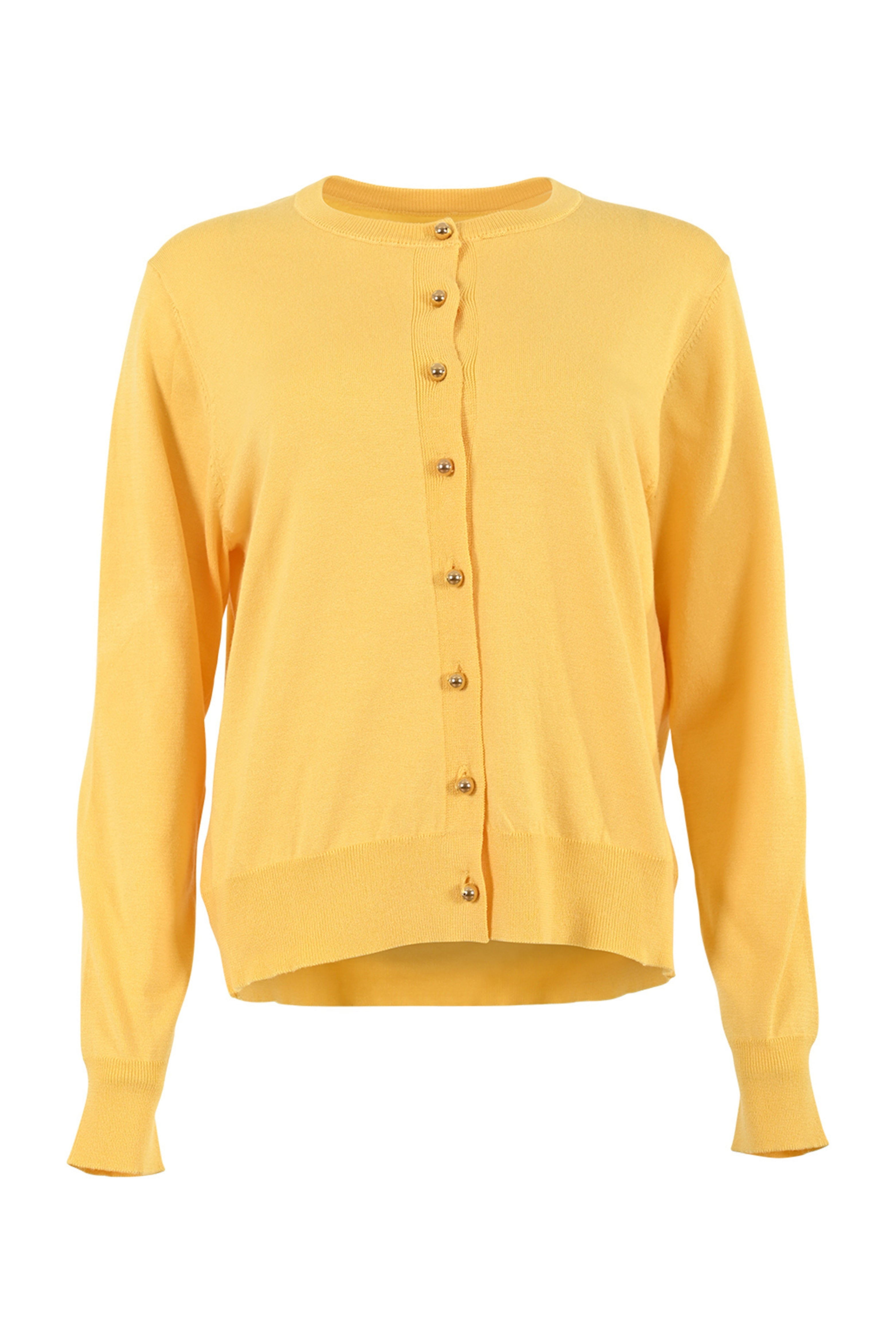 Het Vest Midou Solar Yellow van Maicazz straalt warmte en stijl uit. Dit zachte, gebreide vest heeft een ronde hals, een knoopsluiting met goudkleurige knopen en een licht getailleerde pasvorm. De zonnige gele kleur maakt het perfect voor een frisse, modieuze look!