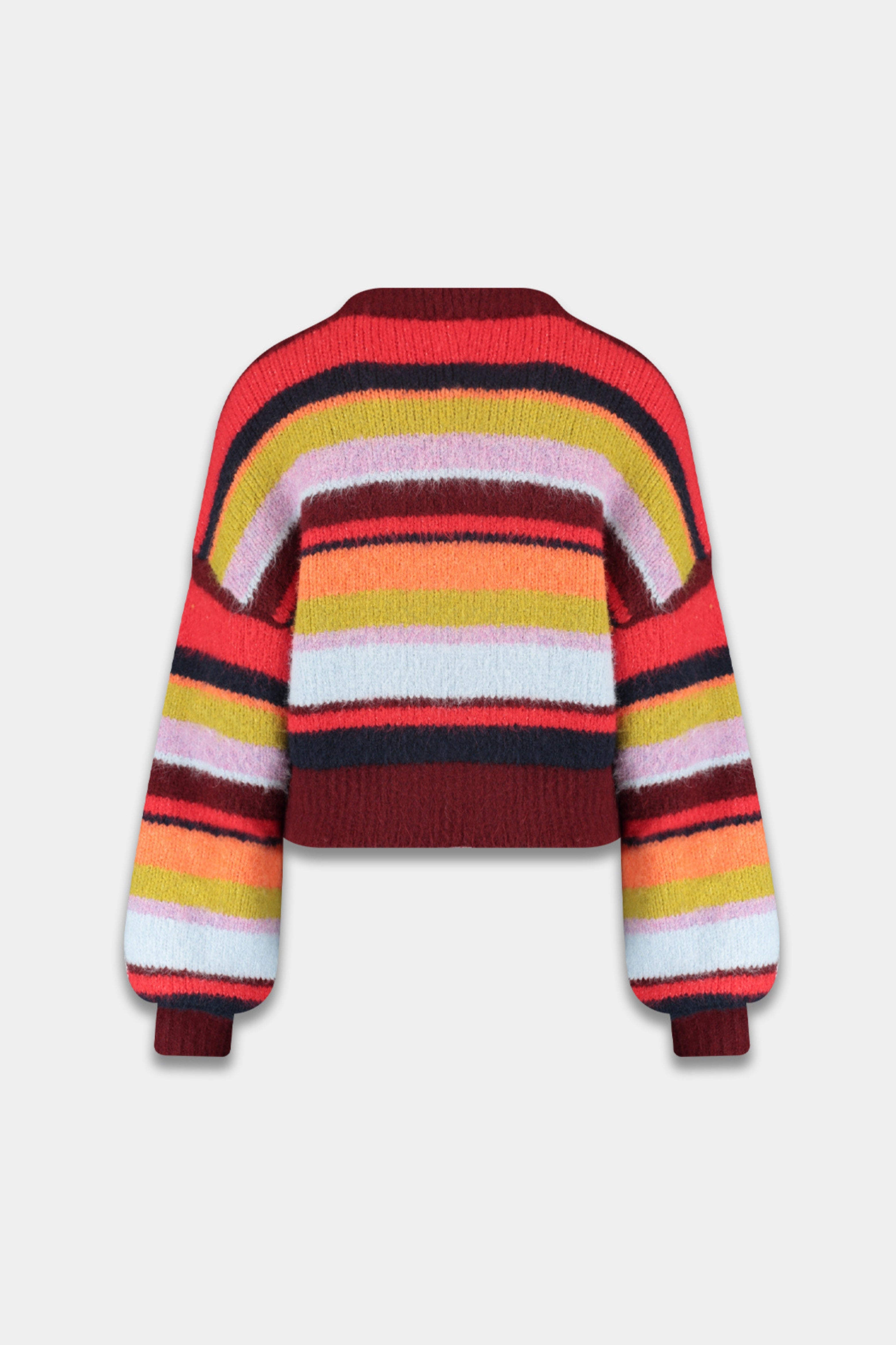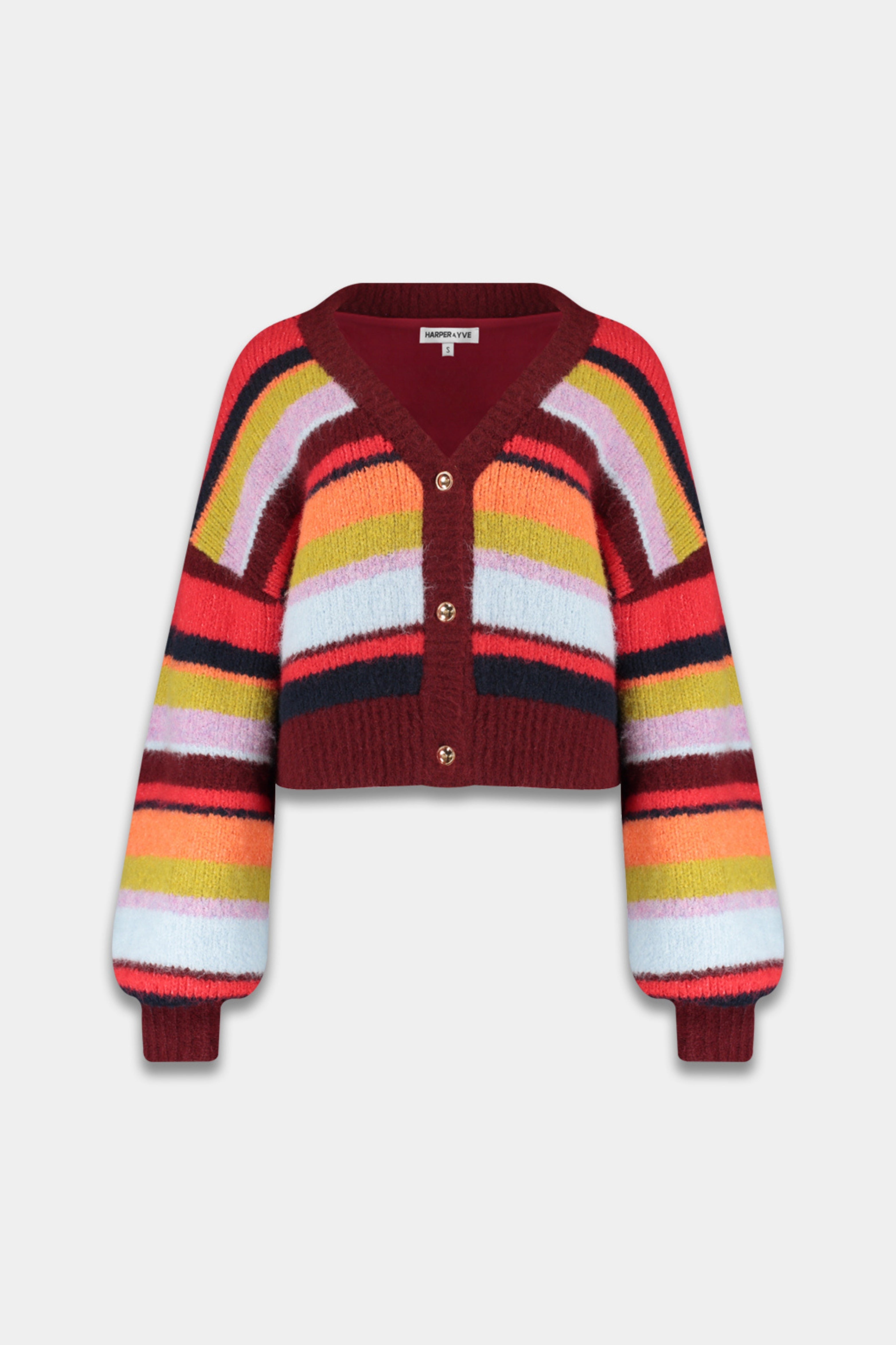 Vest Noor Stripe Multi Racing Red van Harper & Yve is een kleurrijke knit met speels streeppatroon. De V-hals en relaxed fit zorgen voor een moderne, comfortabele pasvorm. Perfect te combineren met jeans of pantalon voor een casual look.